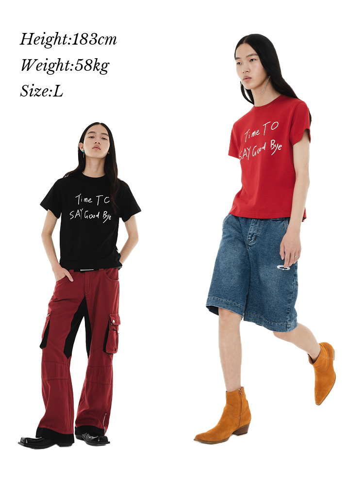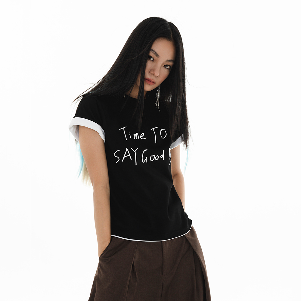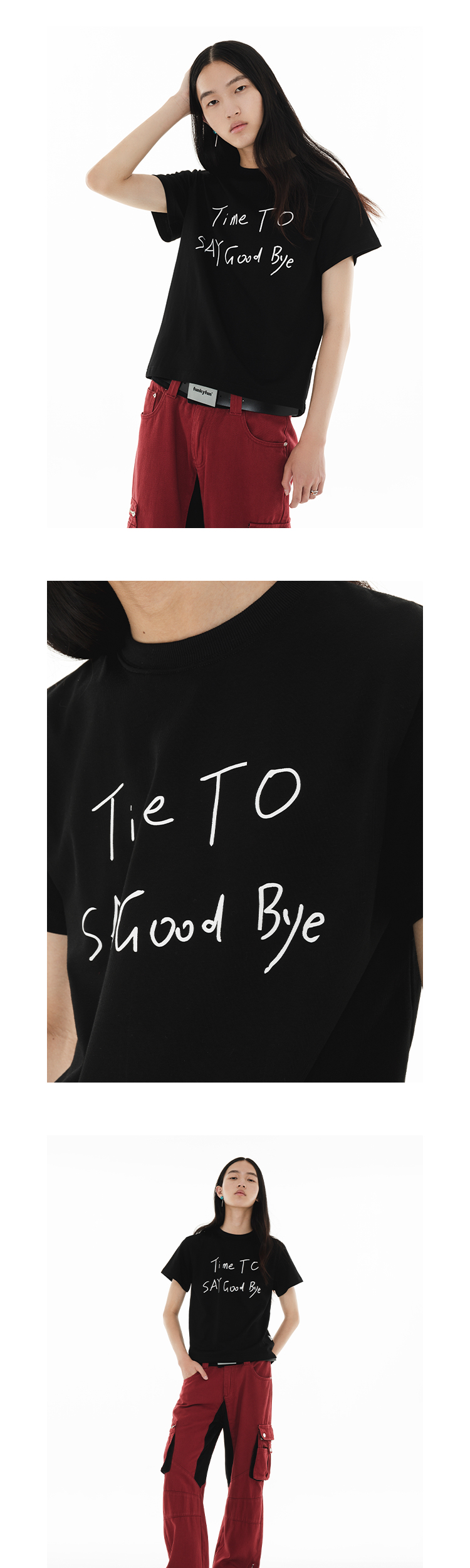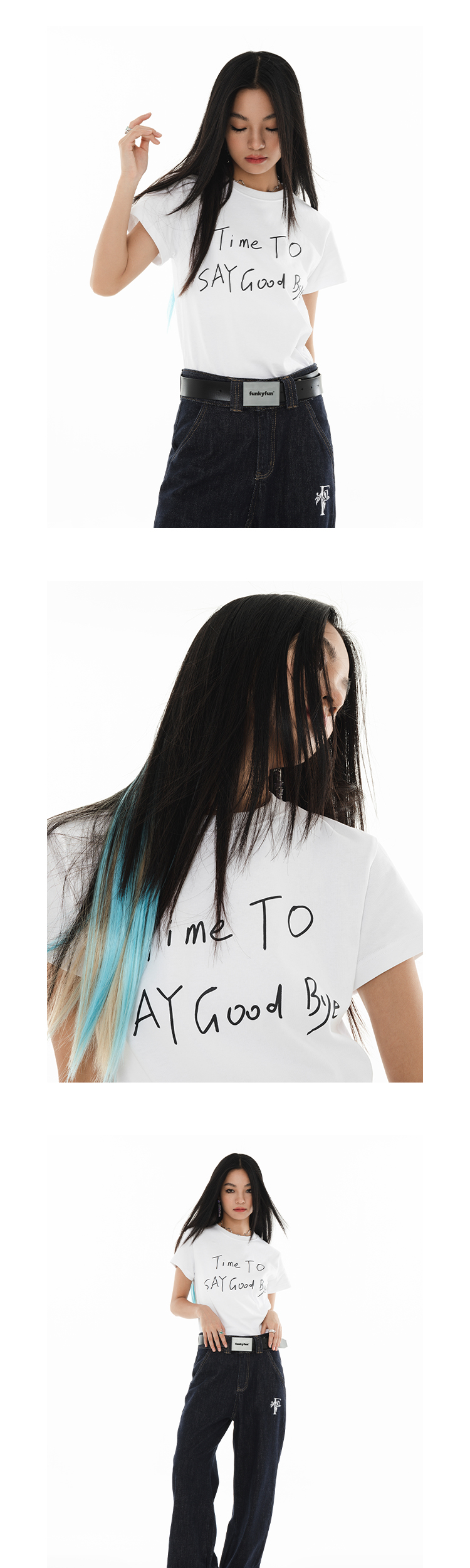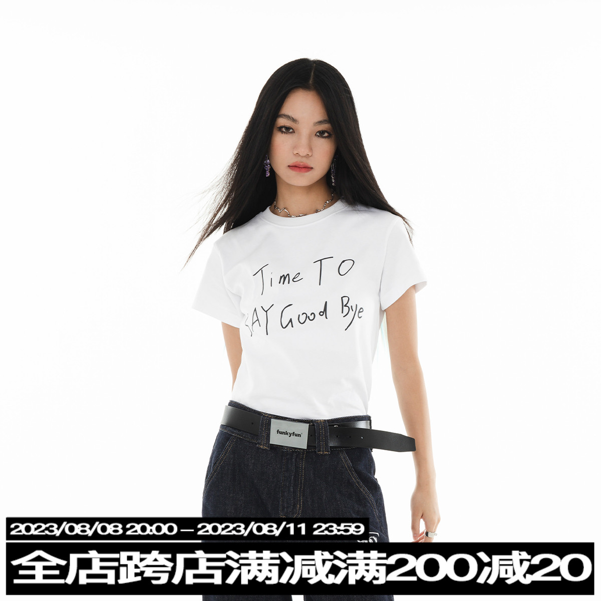 FUNKYFUN原創設計time to say goodbye簡筆畫印花正肩短袖T恤男女