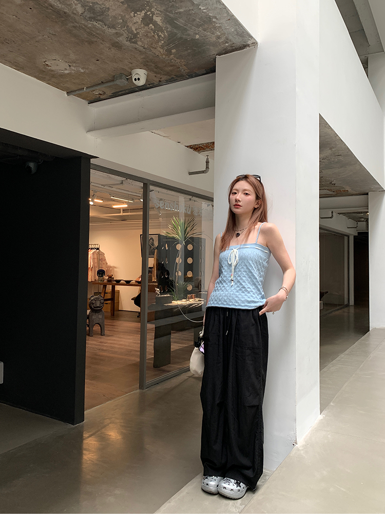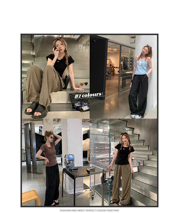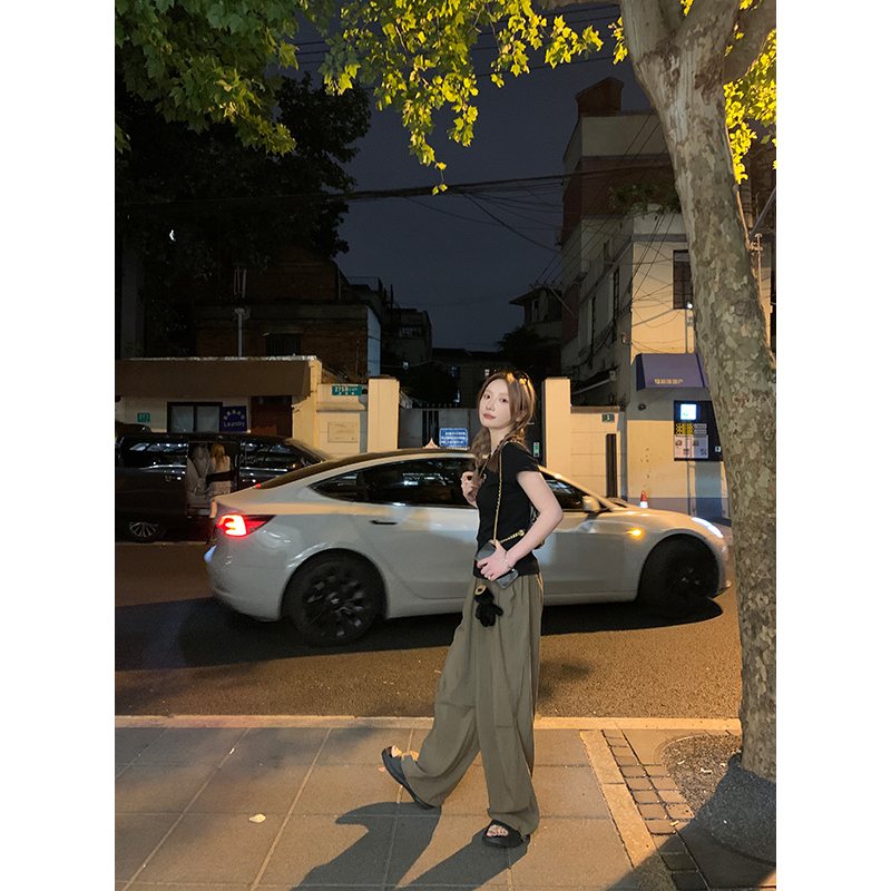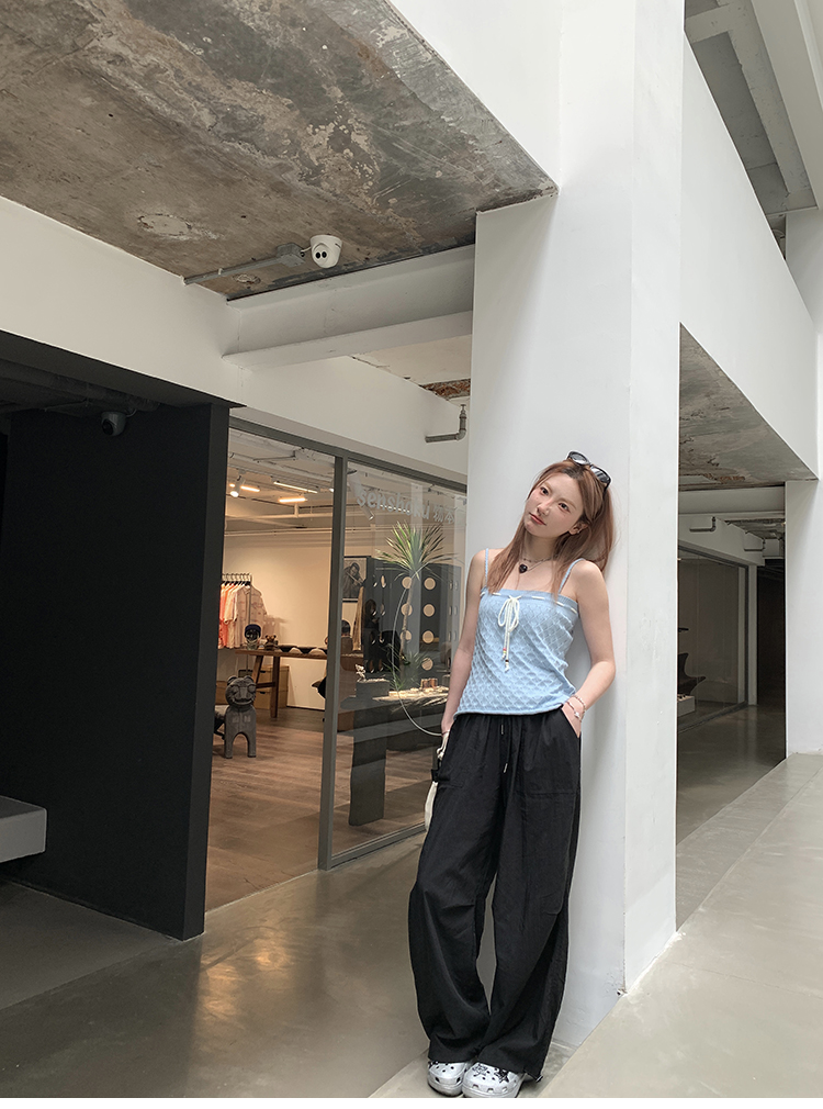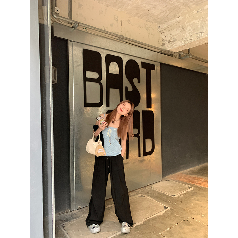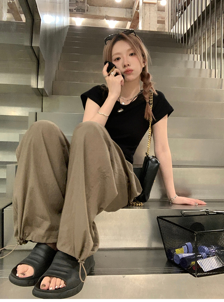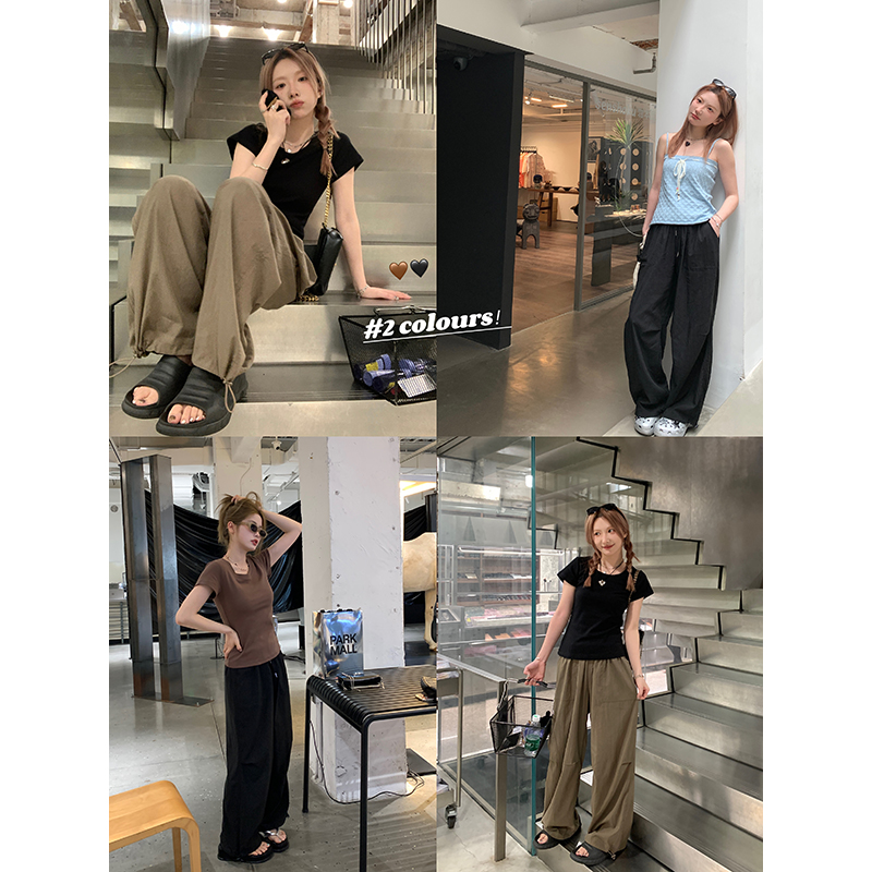 GooGooEyes 夏日防曬神器 超薄褶皺抽繩褲女夏季天絲降落傘工裝褲