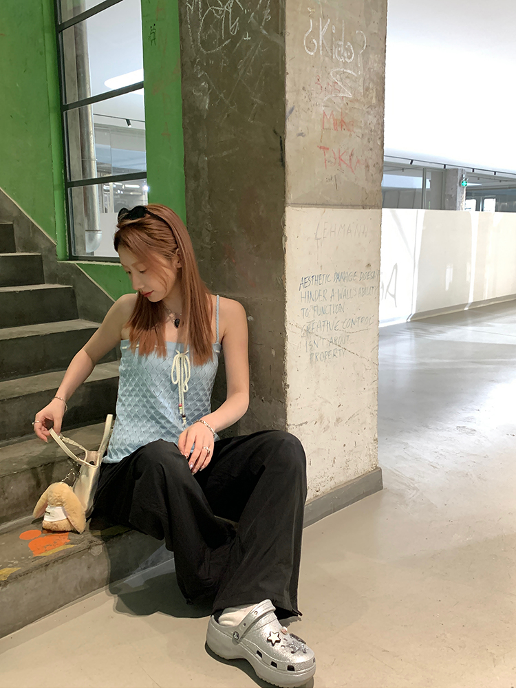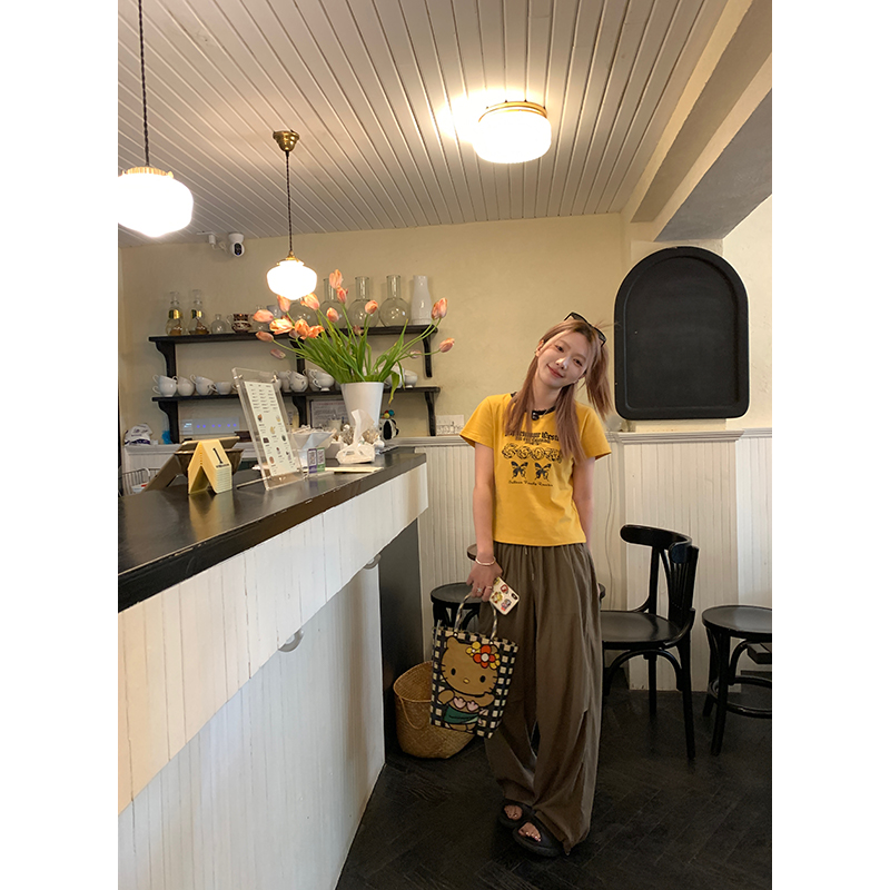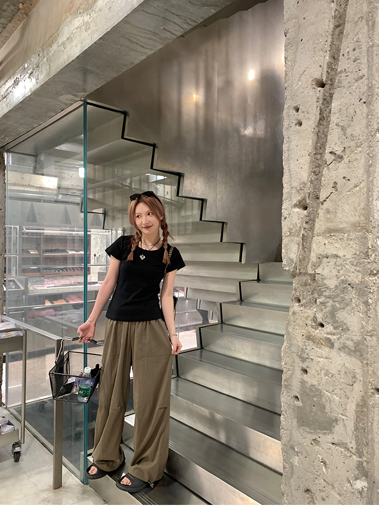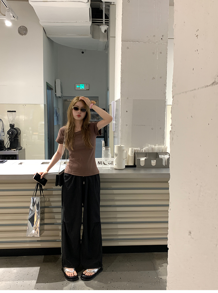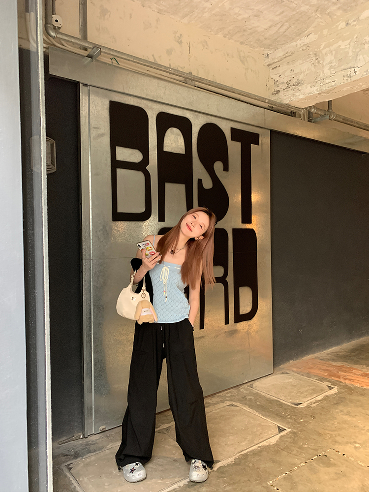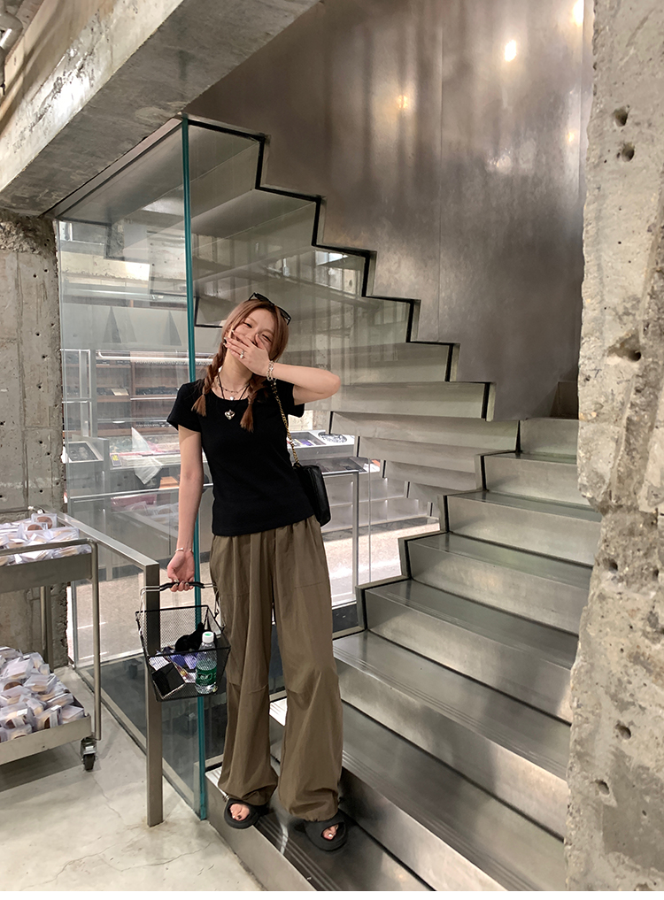 GooGooEyes 夏日防曬神器 超薄褶皺抽繩褲女夏季天絲降落傘工裝褲