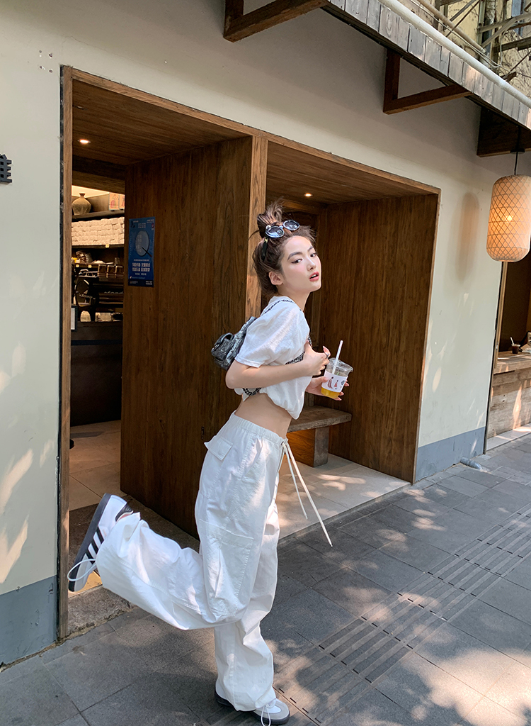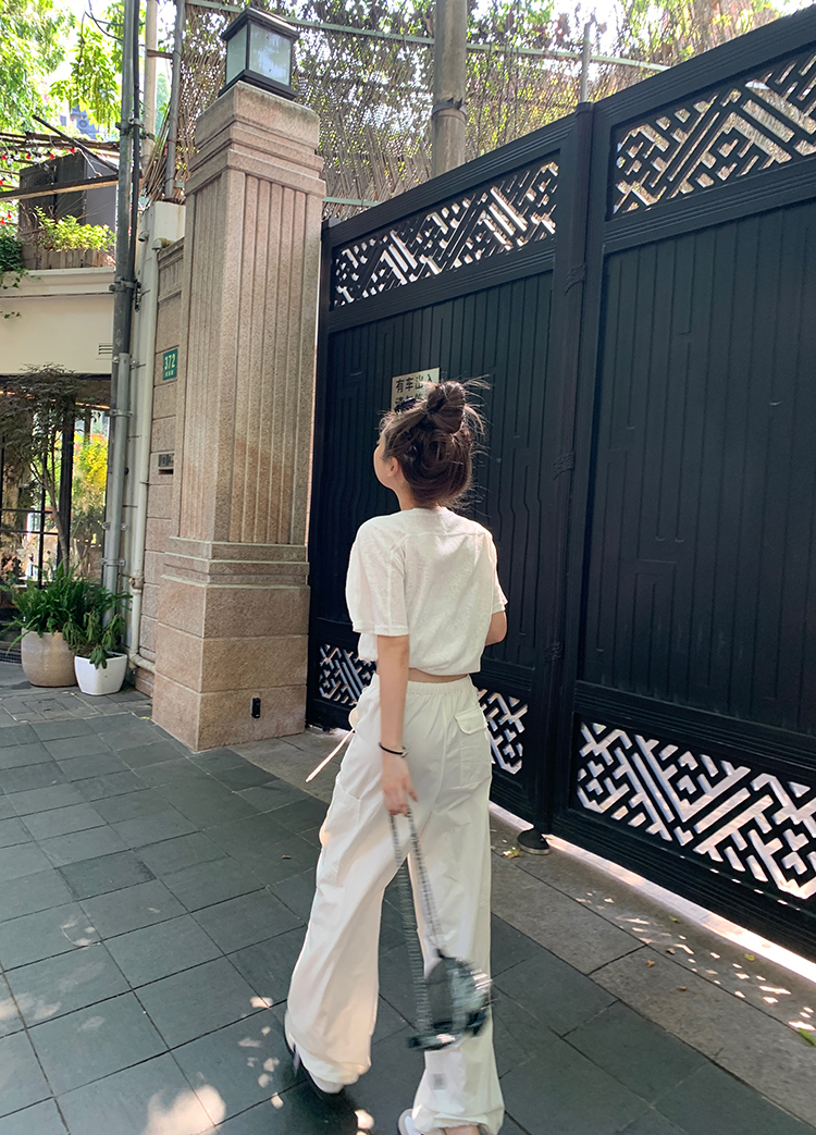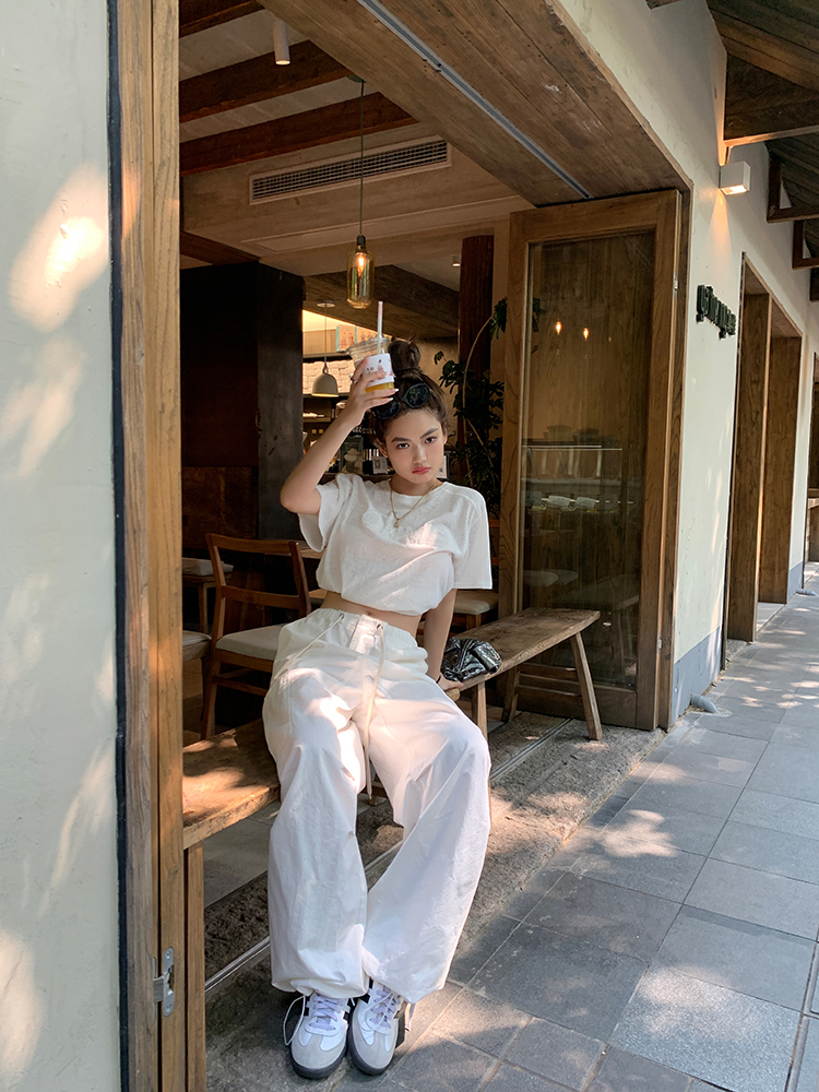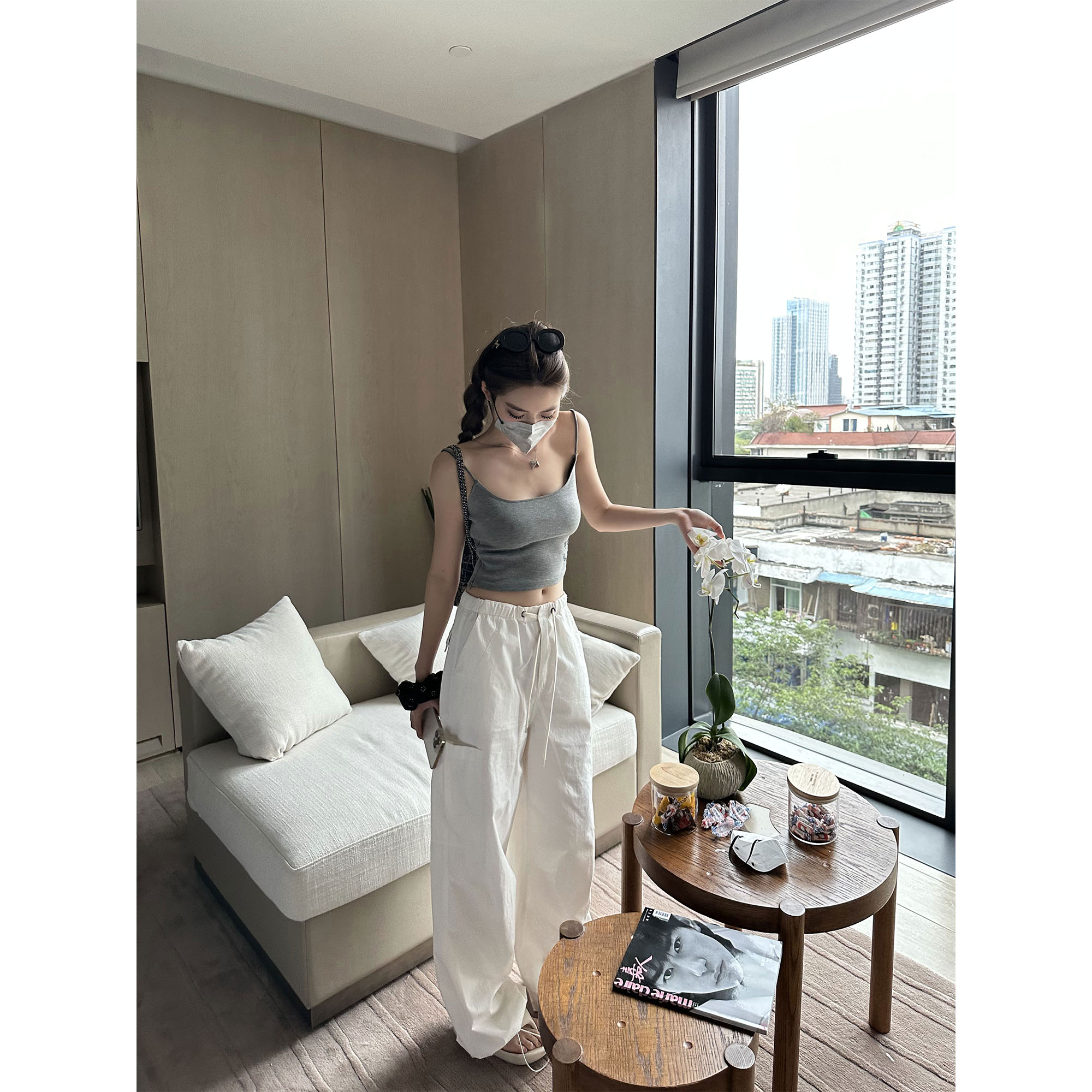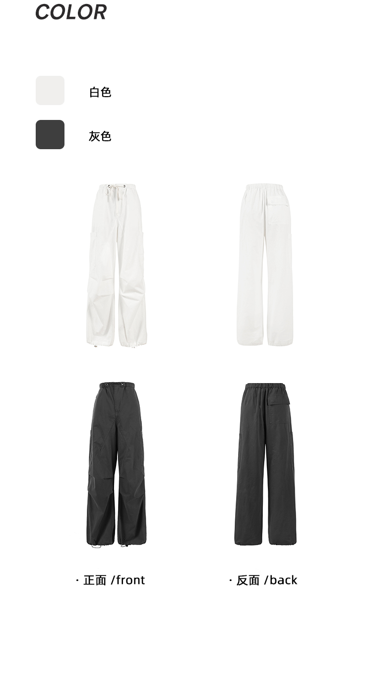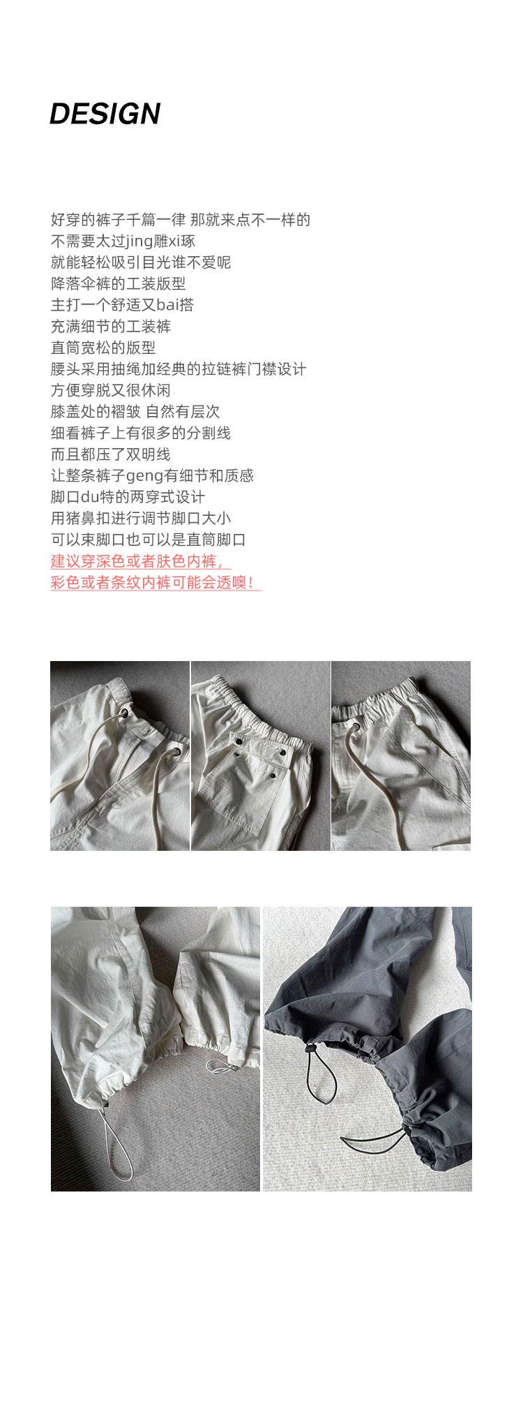 Xinlei Lin 新款夏季清爽水洗全棉透氣白色休閒工作服褲降落傘褲子