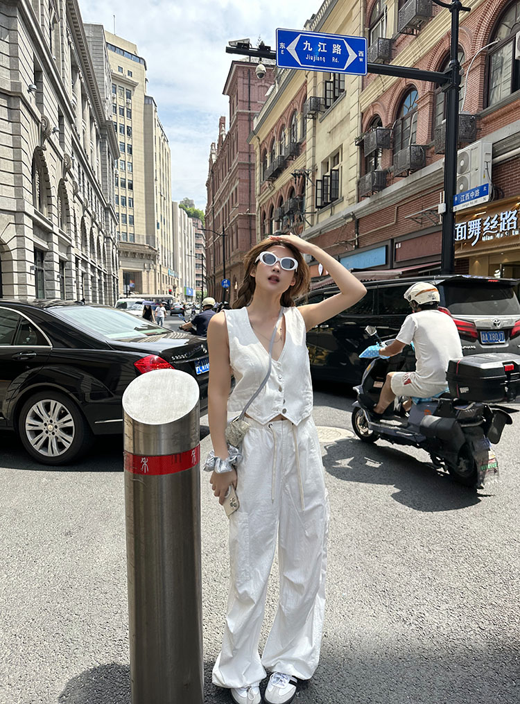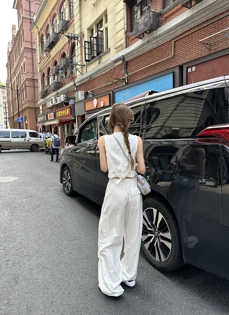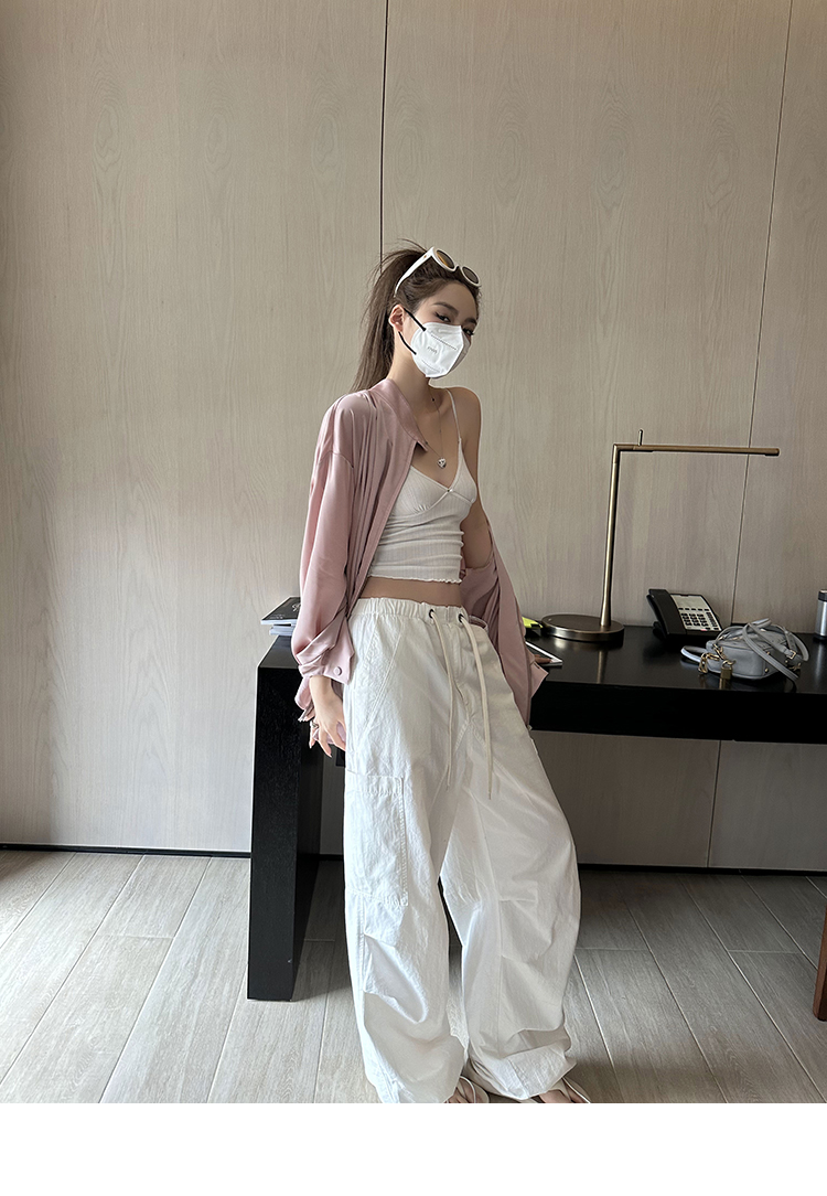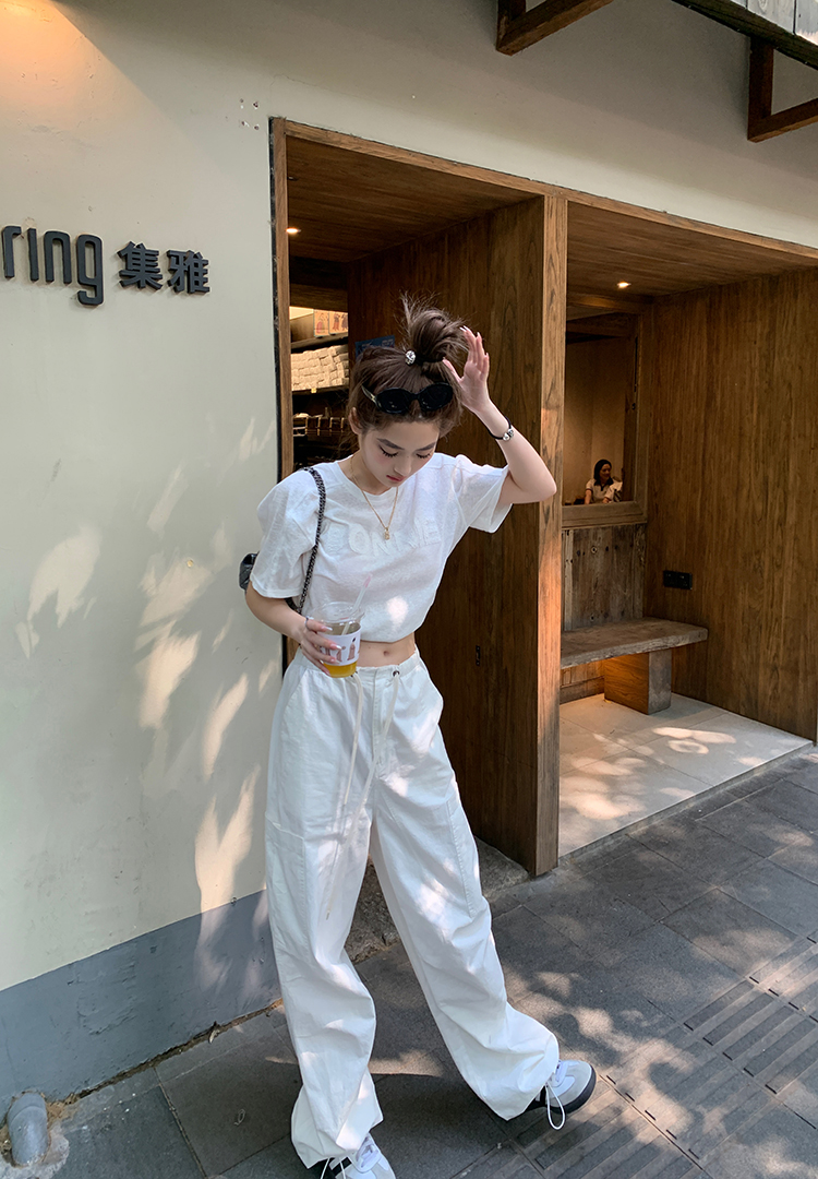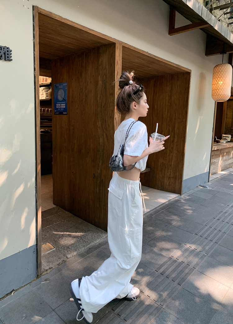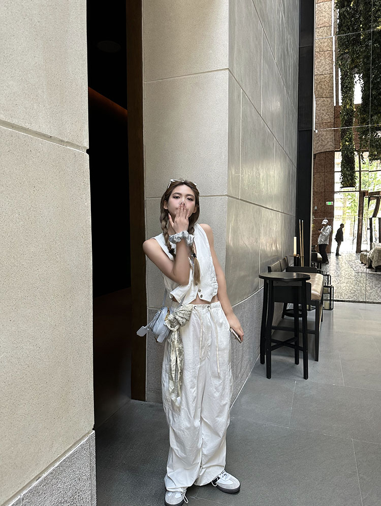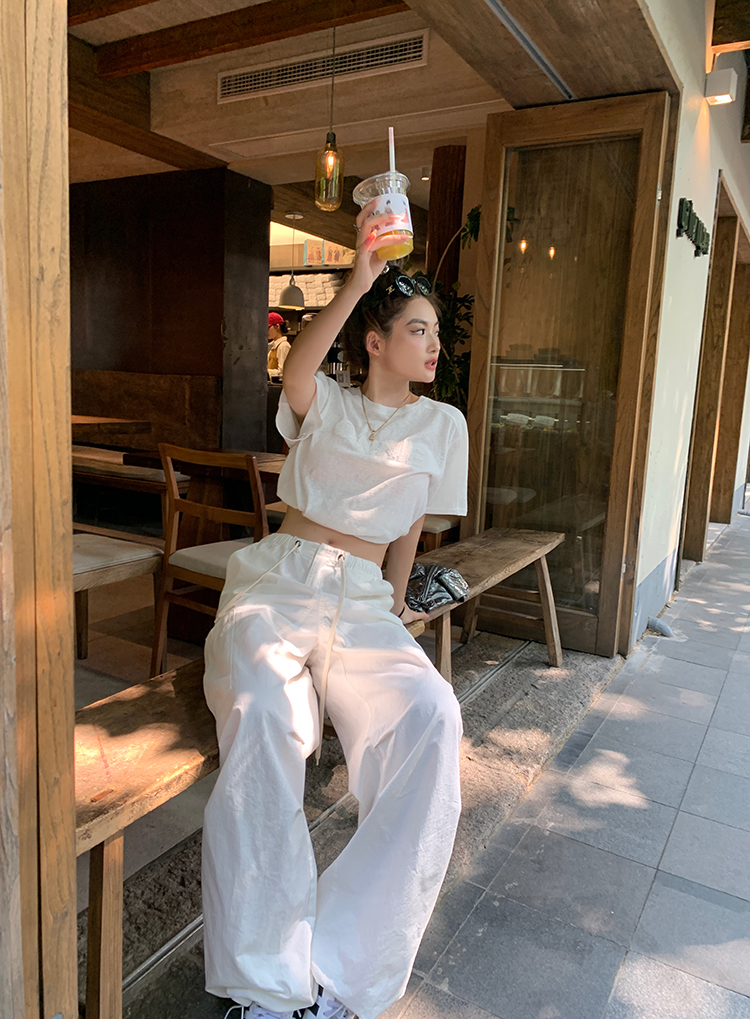 Xinlei Lin 新款夏季清爽水洗全棉透氣白色休閒工作服褲降落傘褲子