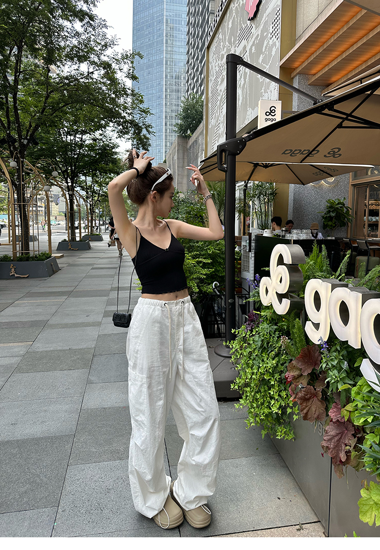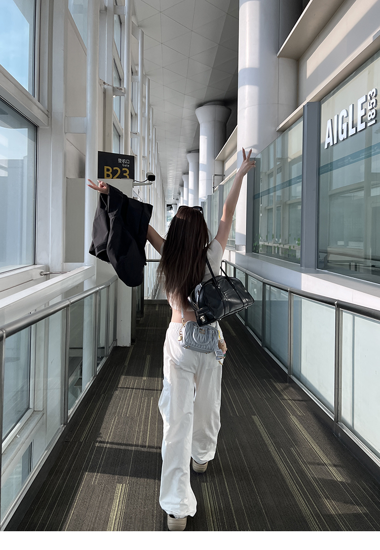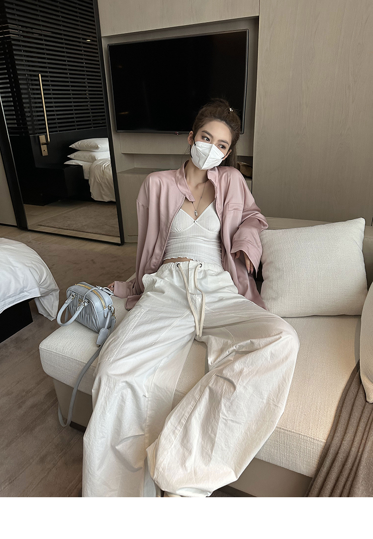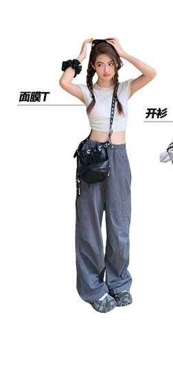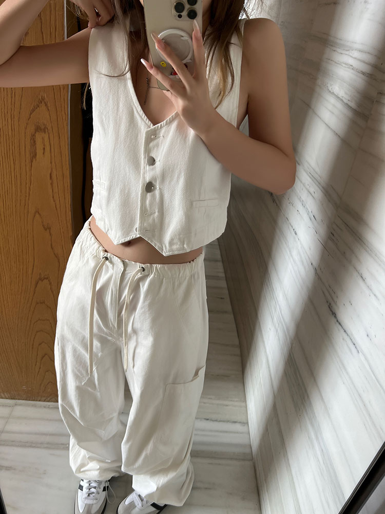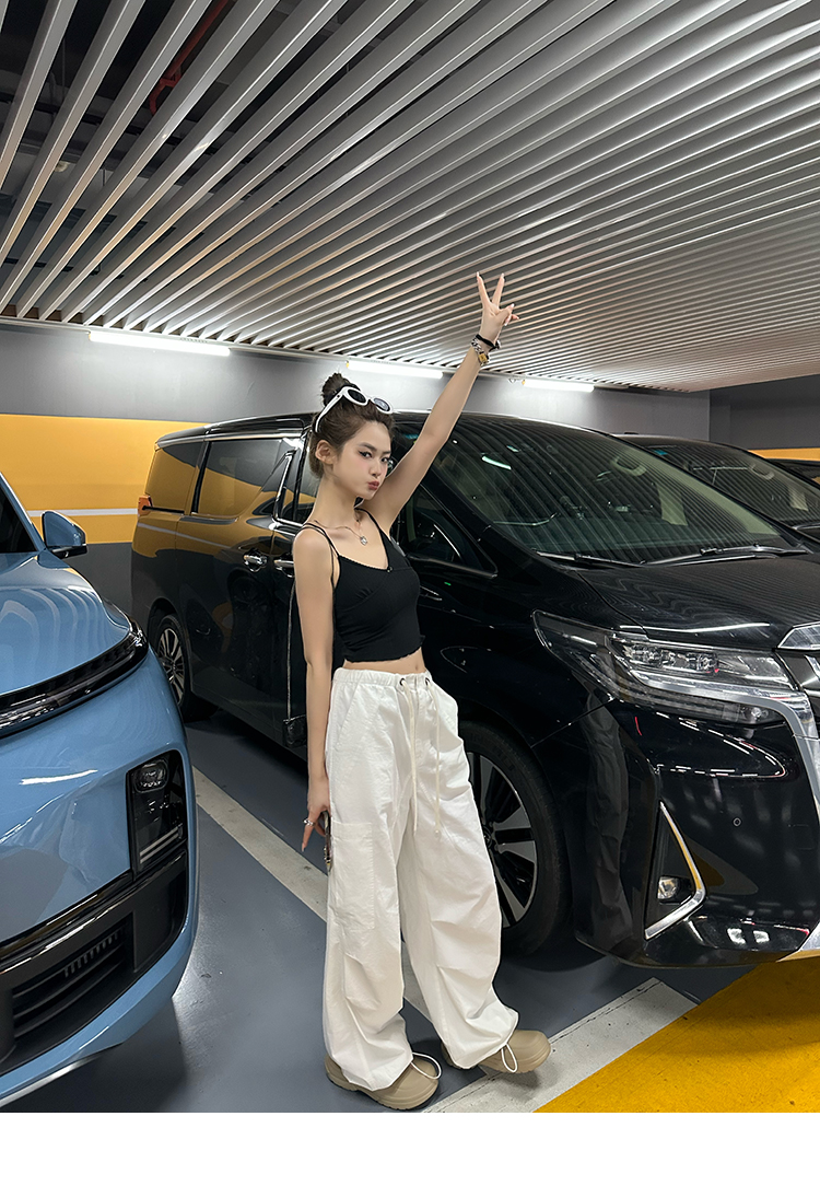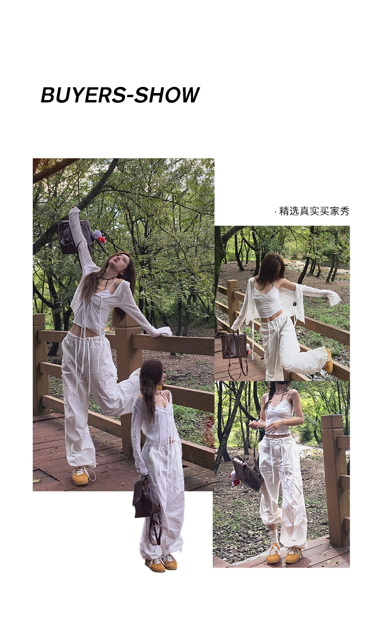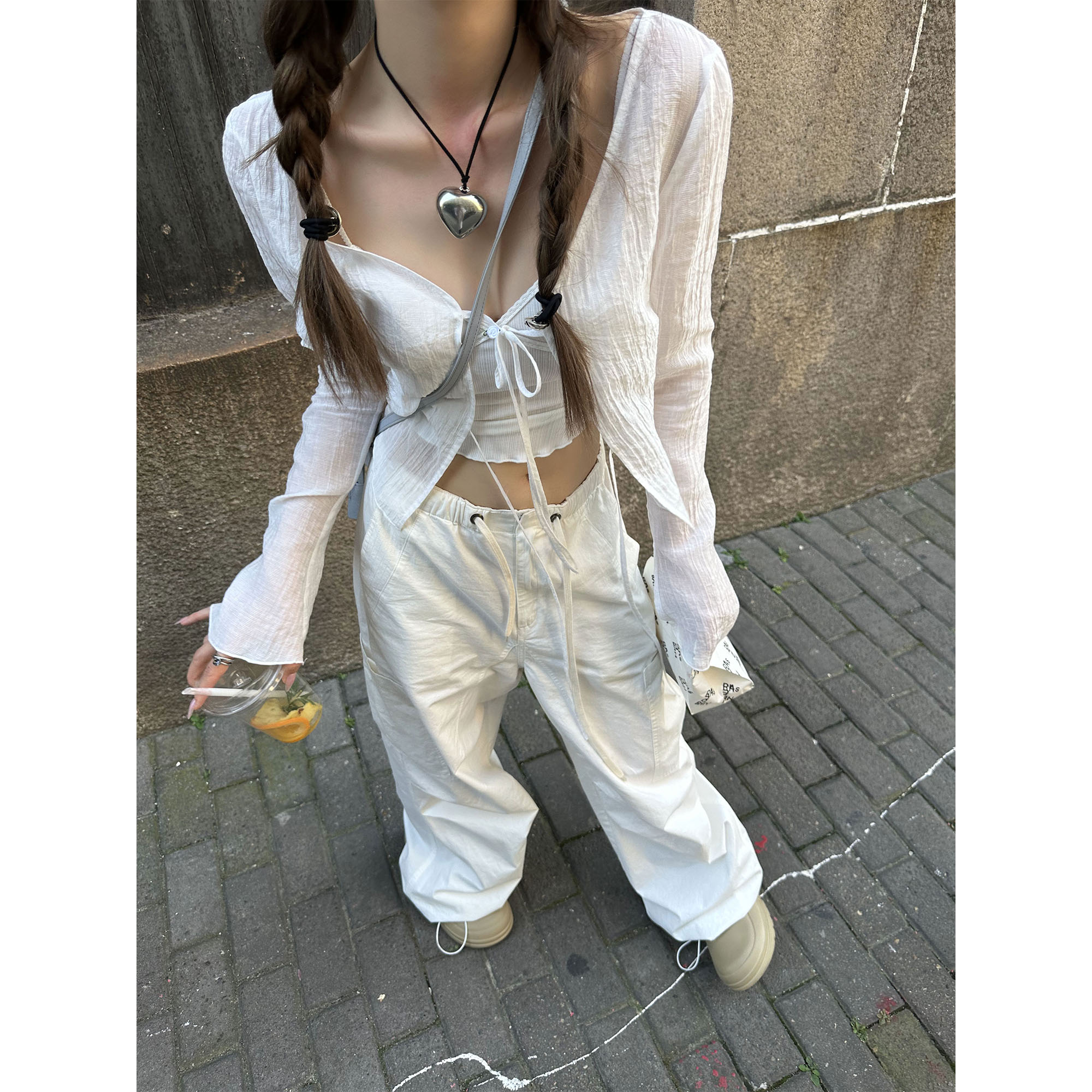 Xinlei Lin 新款夏季清爽水洗全棉透氣白色休閒工作服褲降落傘褲子
