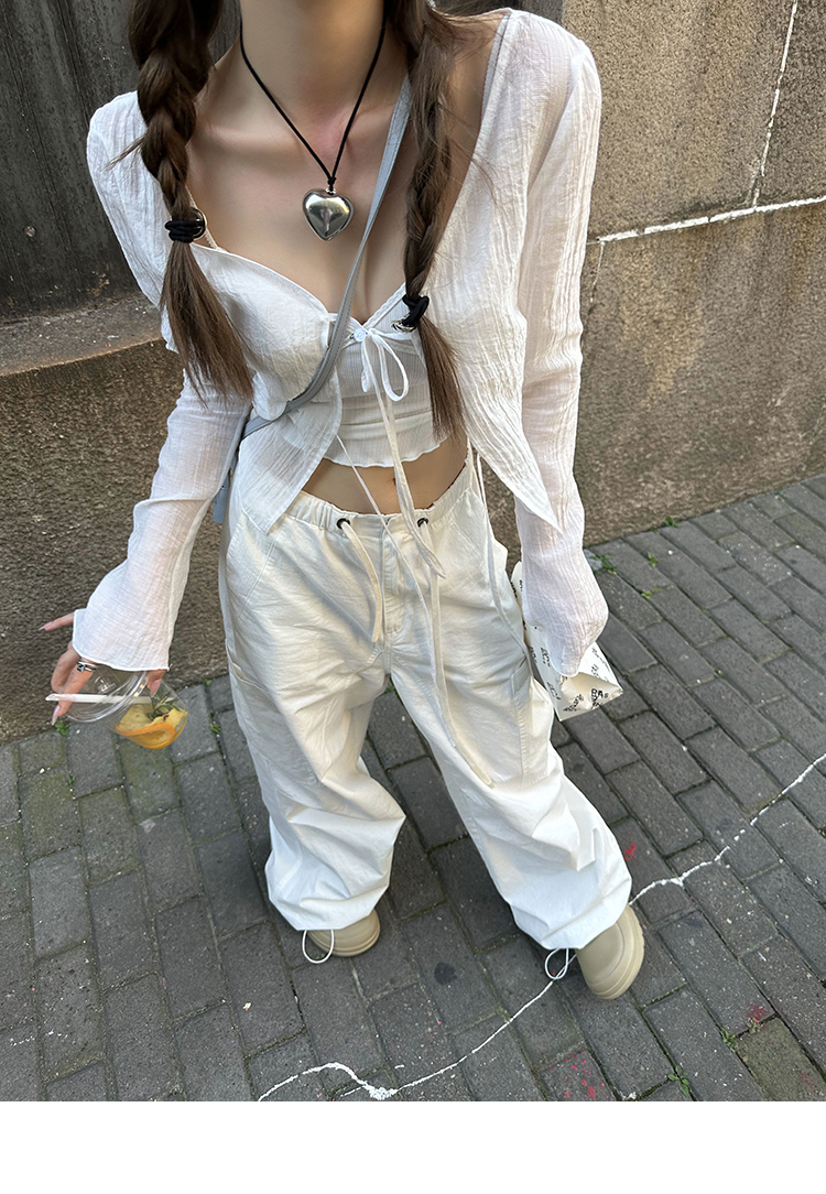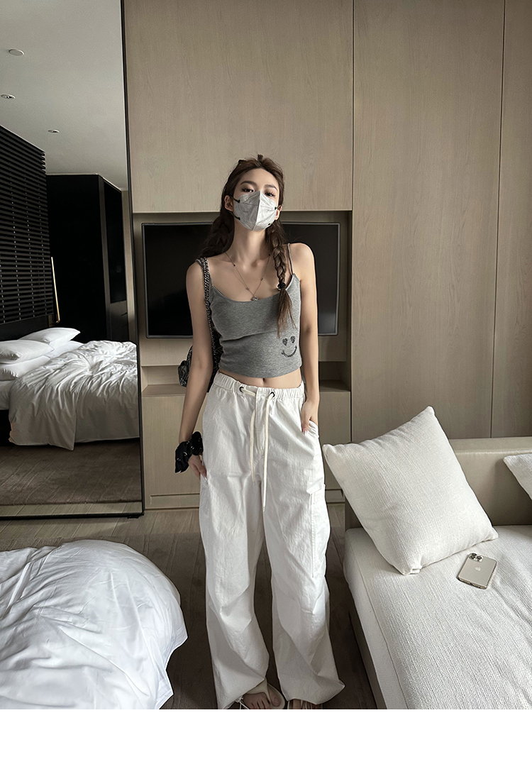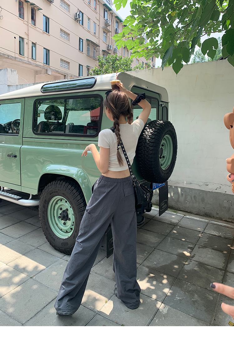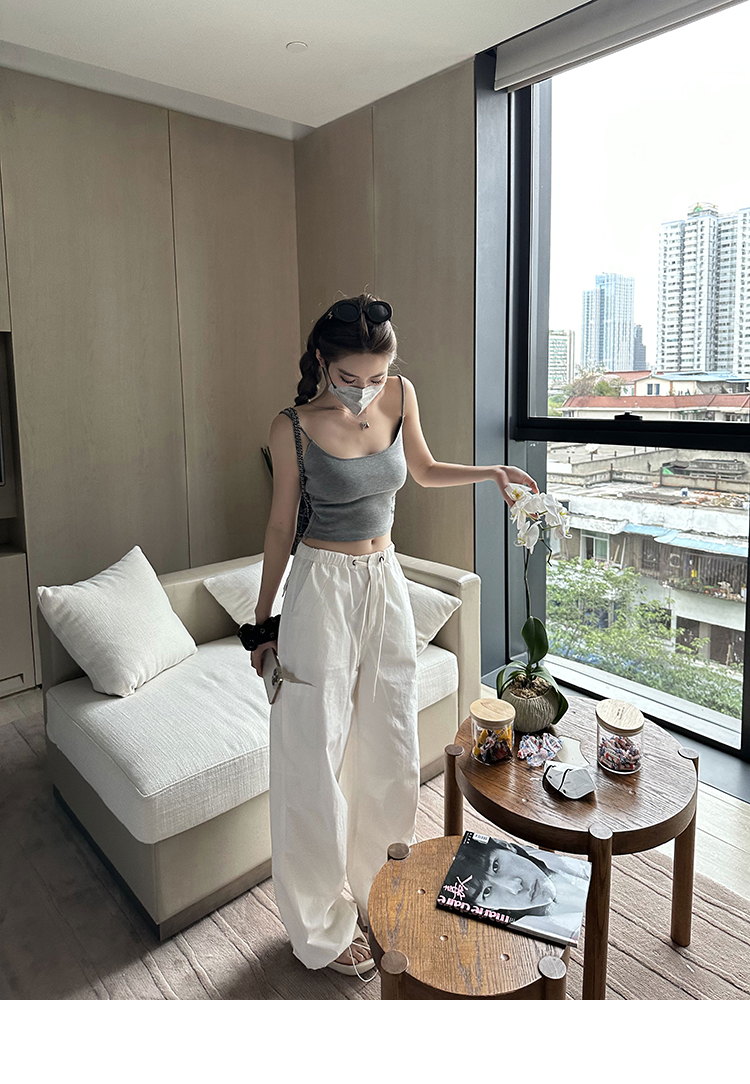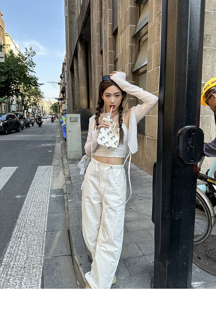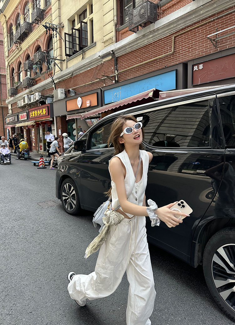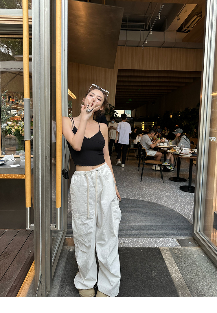 Xinlei Lin 新款夏季清爽水洗全棉透氣白色休閒工作服褲降落傘褲子