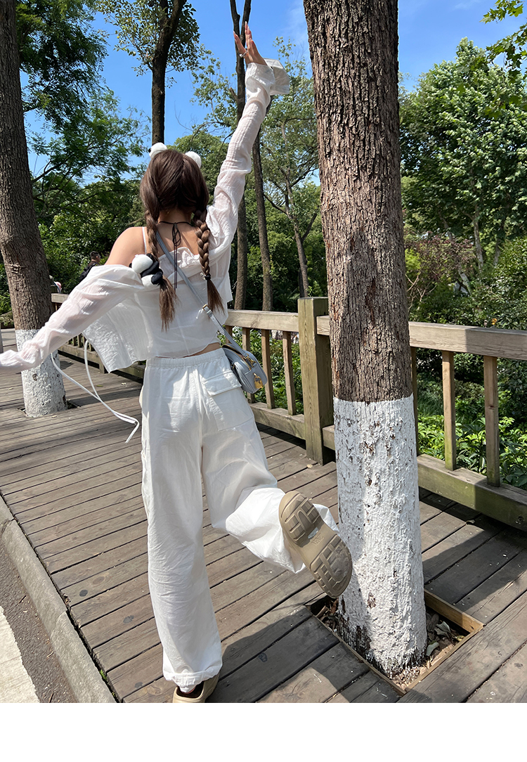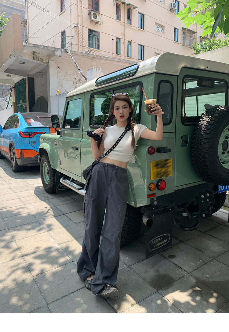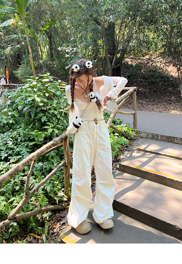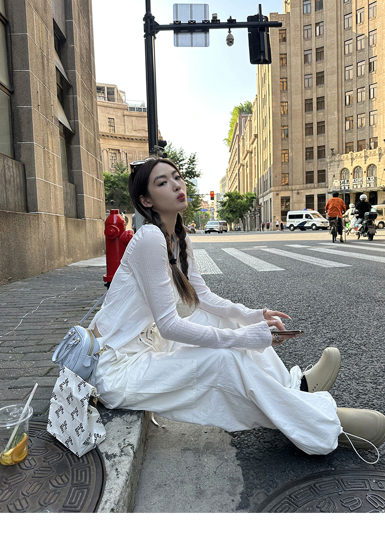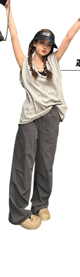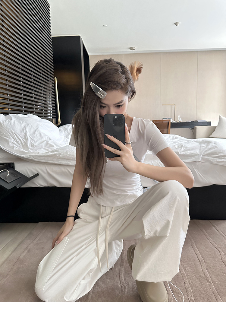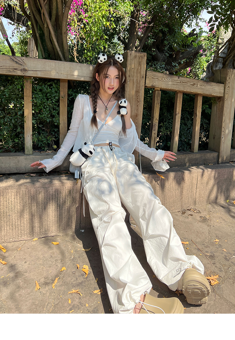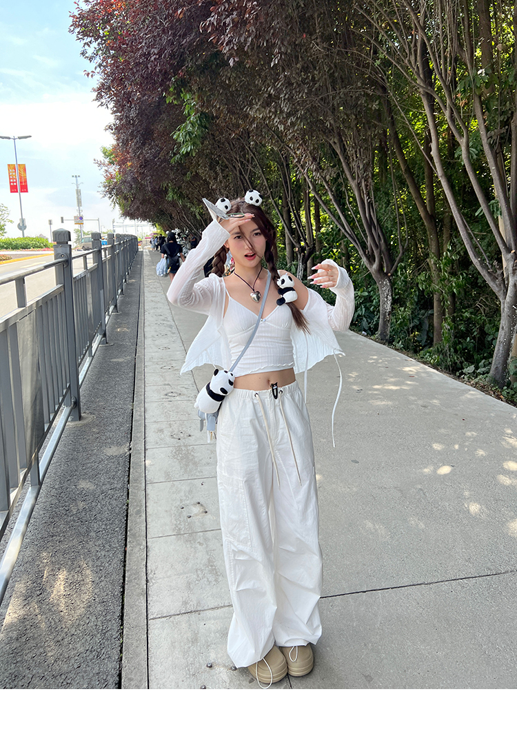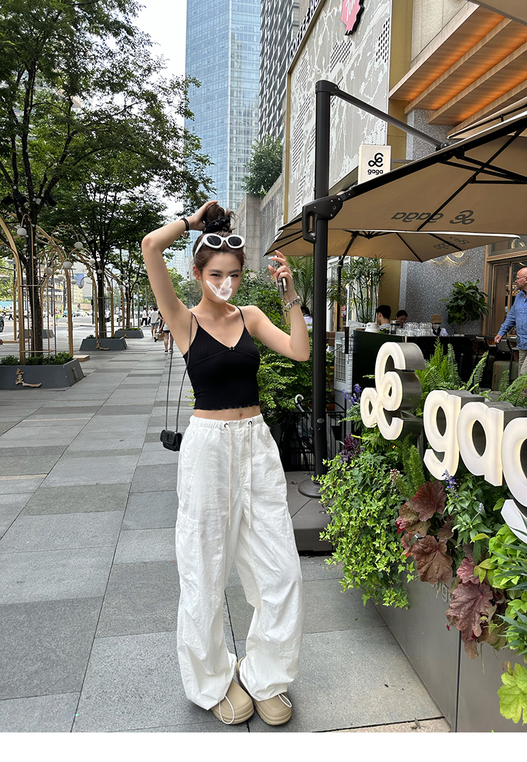 Xinlei Lin 新款夏季清爽水洗全棉透氣白色休閒工作服褲降落傘褲子