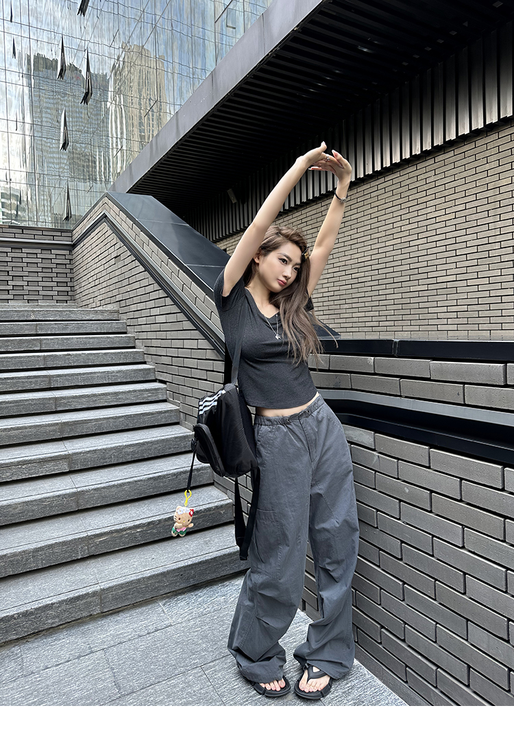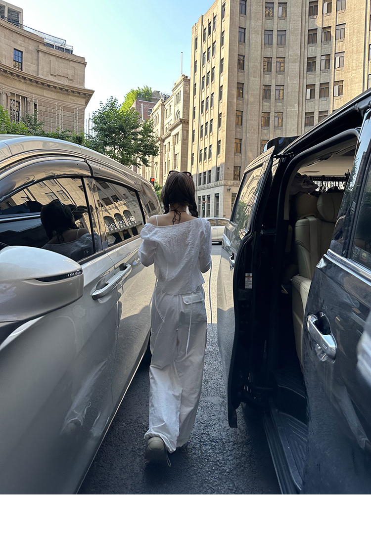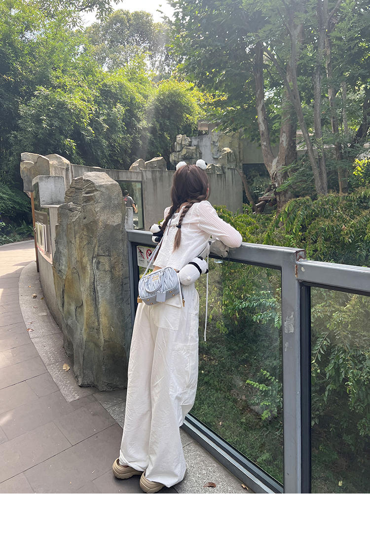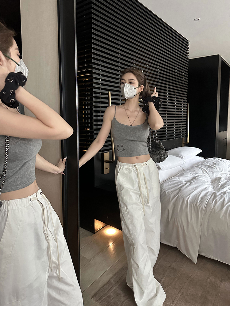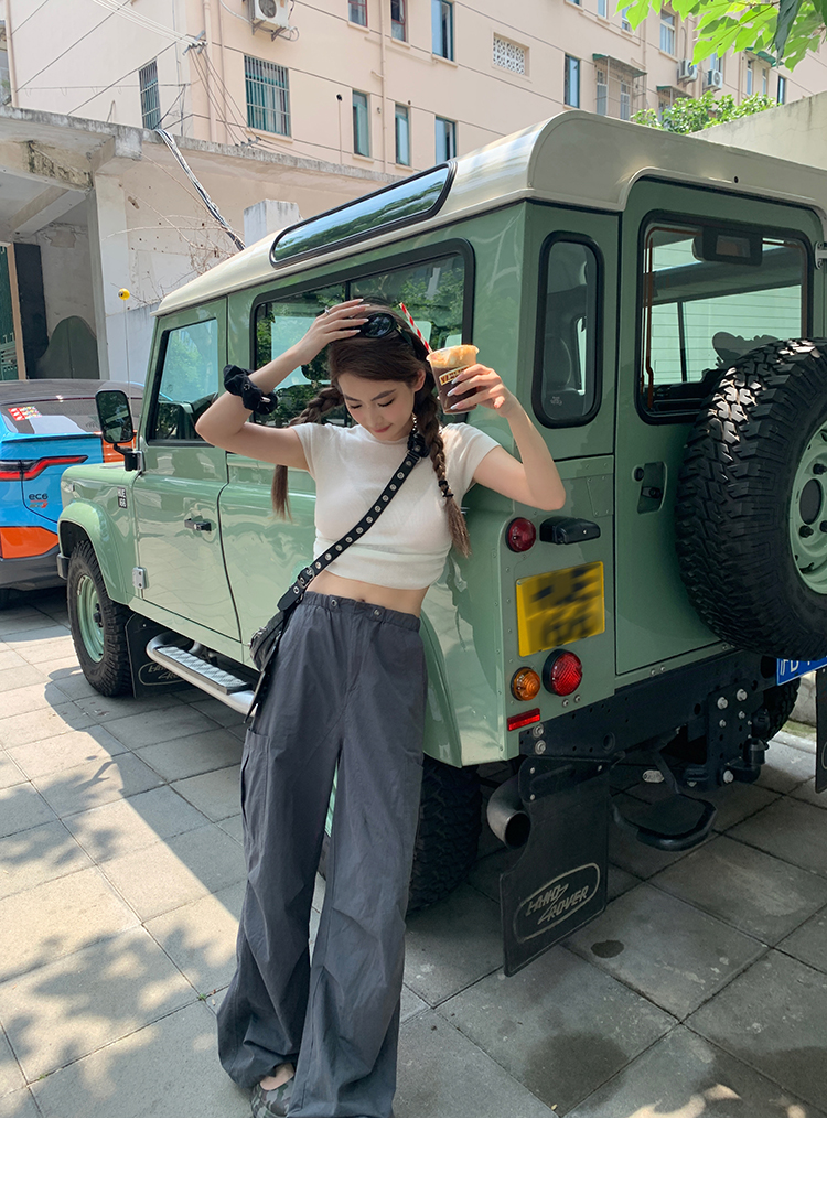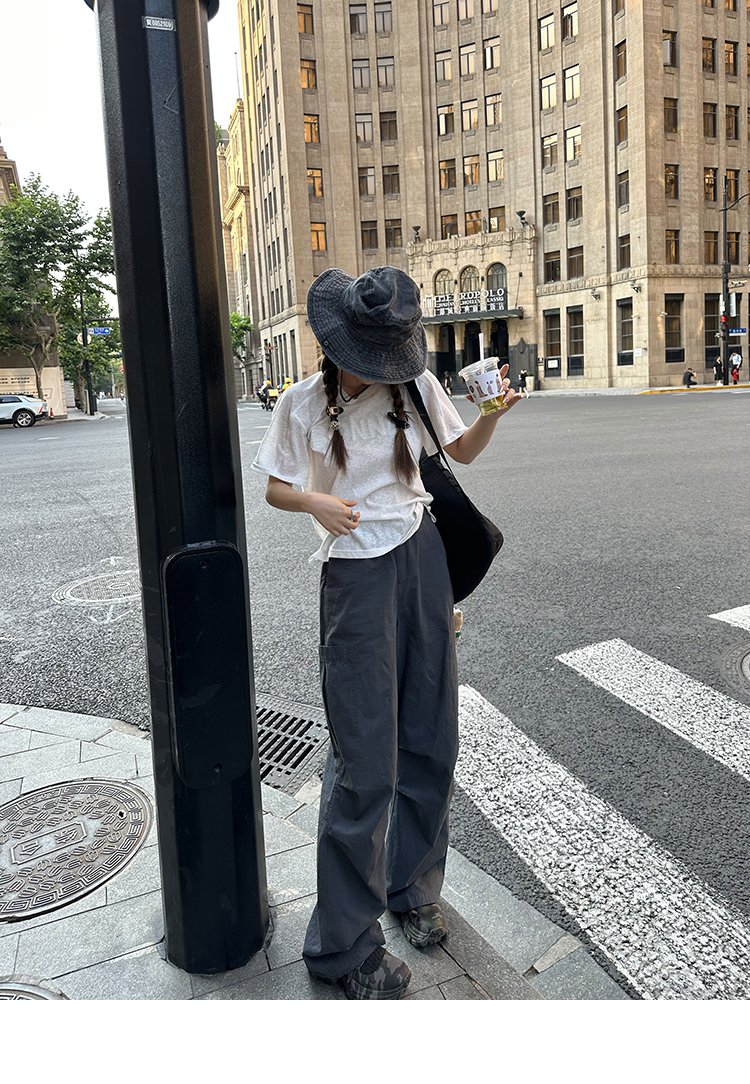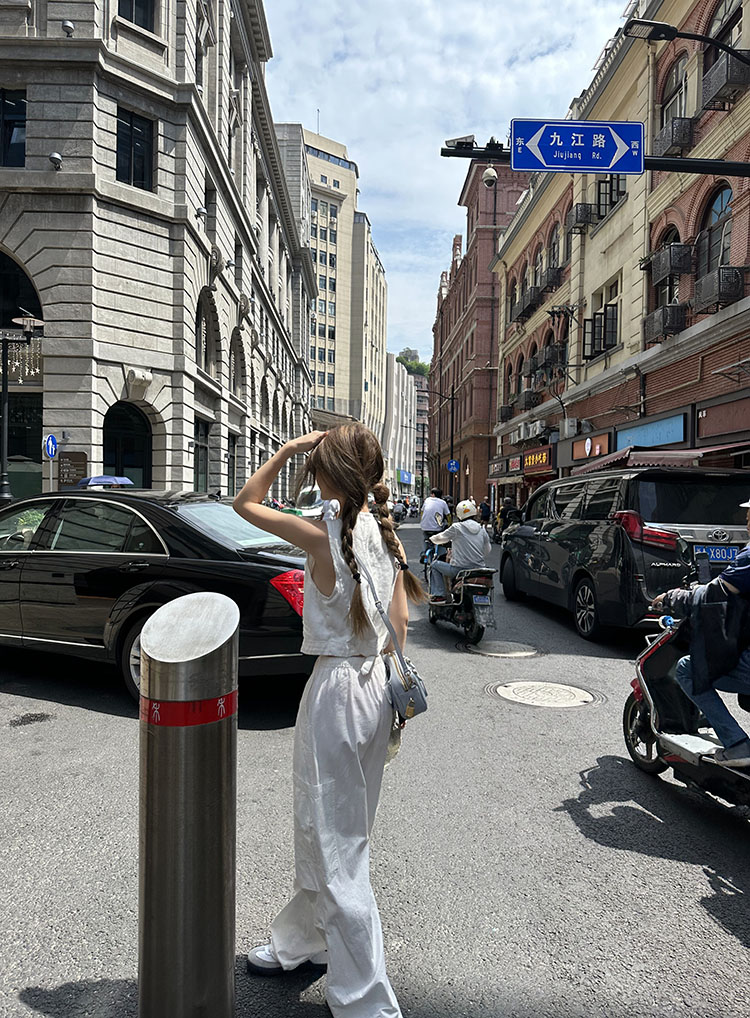 Xinlei Lin 新款夏季清爽水洗全棉透氣白色休閒工作服褲降落傘褲子