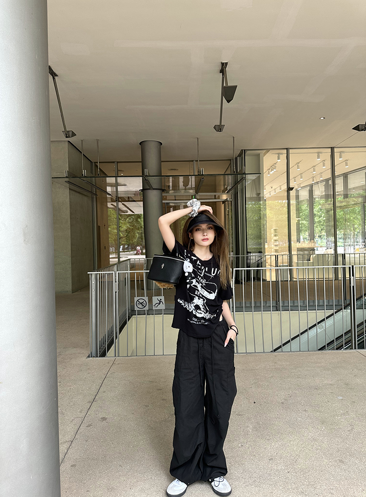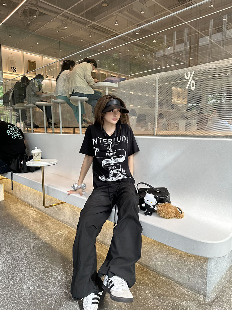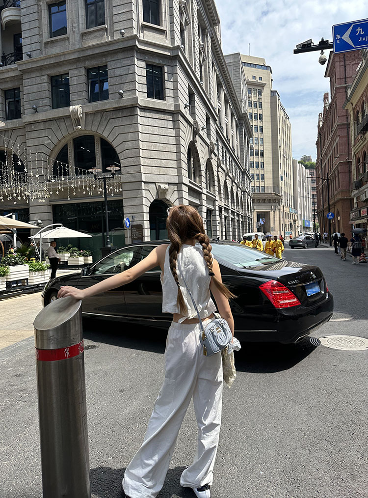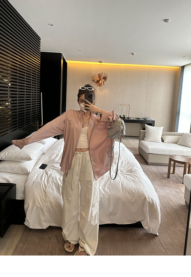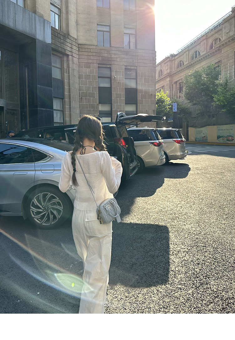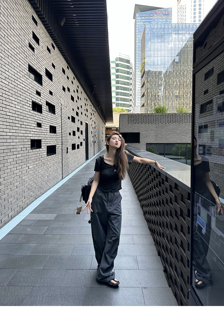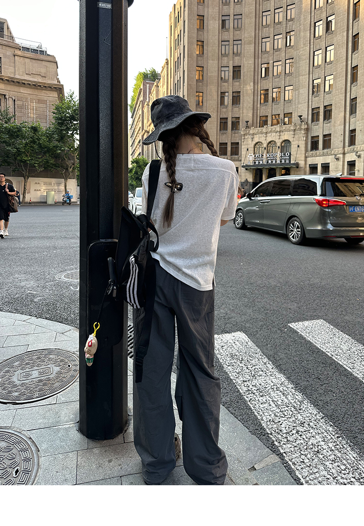 Xinlei Lin 新款夏季清爽水洗全棉透氣白色休閒工作服褲降落傘褲子
