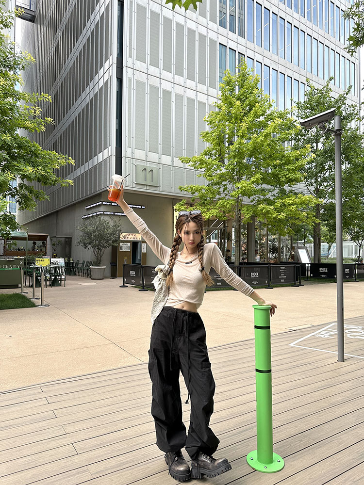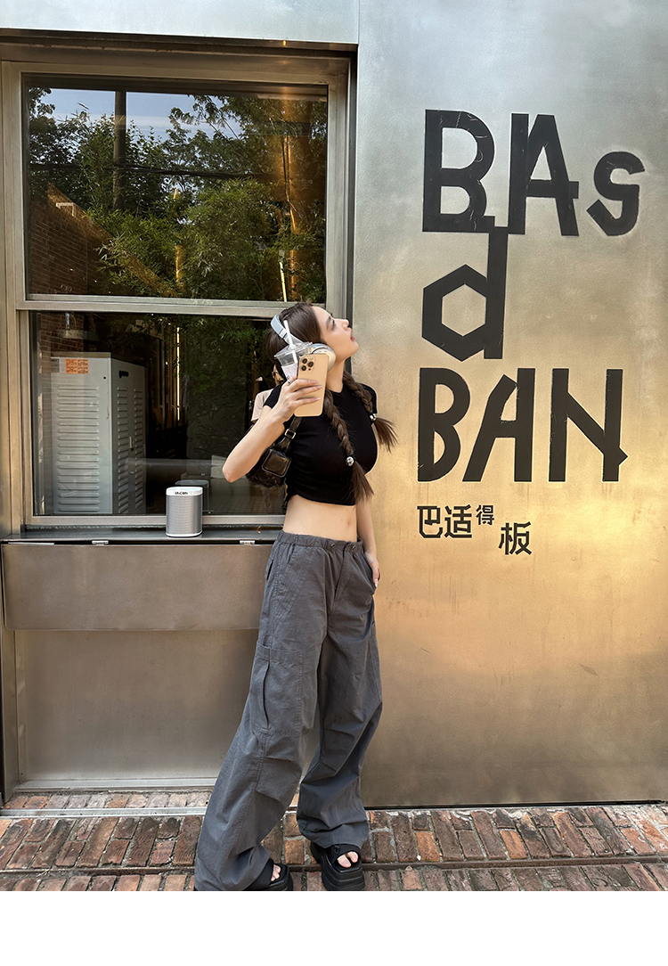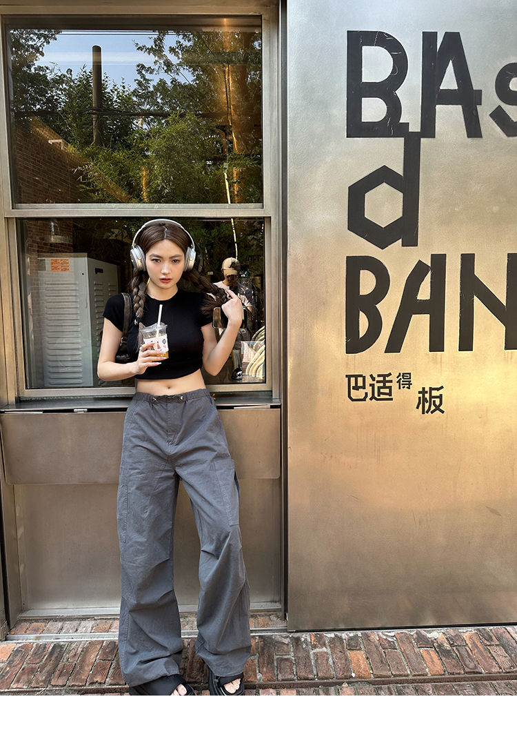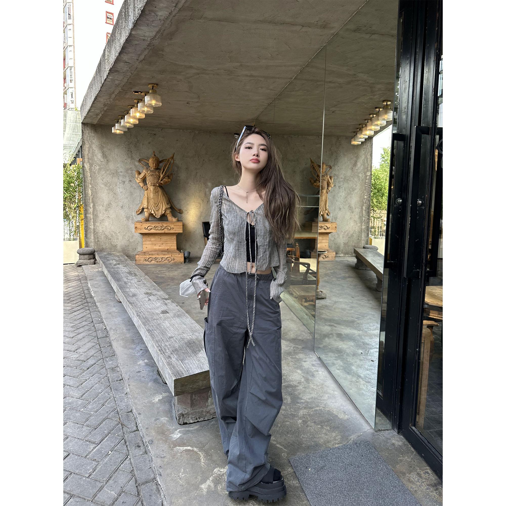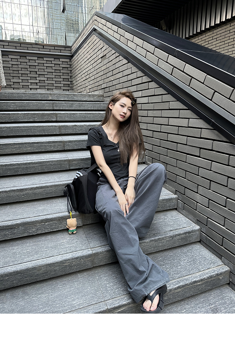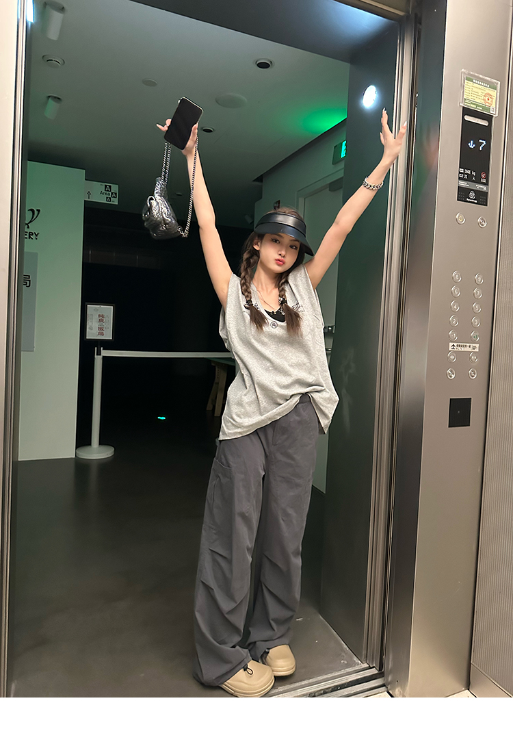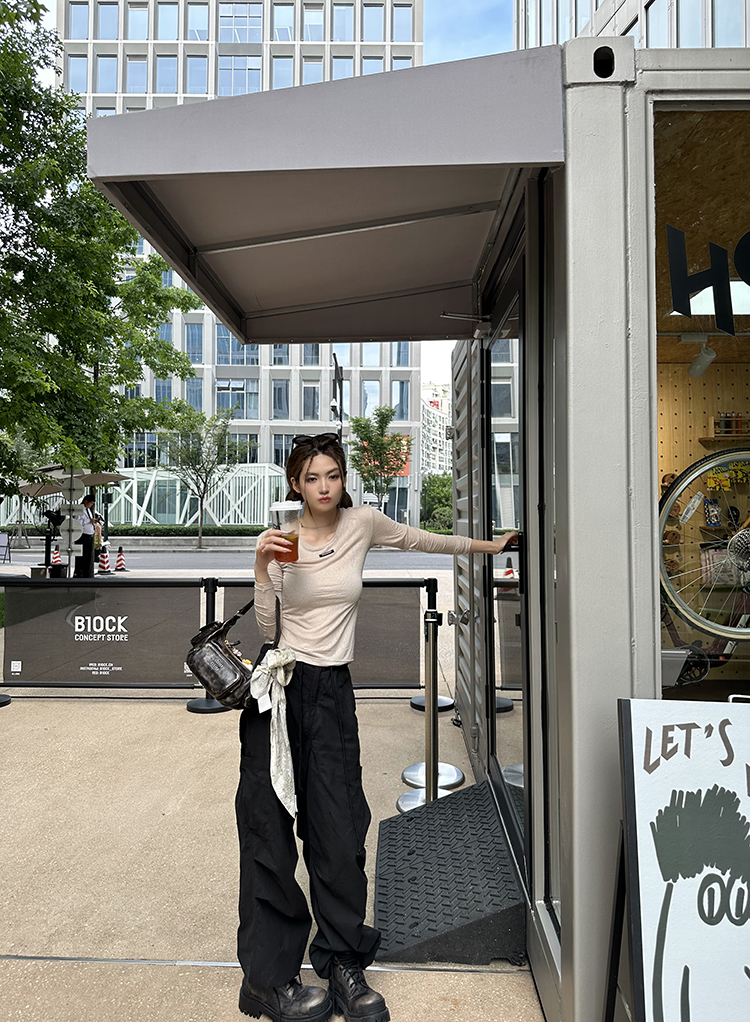 Xinlei Lin 新款夏季清爽水洗全棉透氣白色休閒工作服褲降落傘褲子