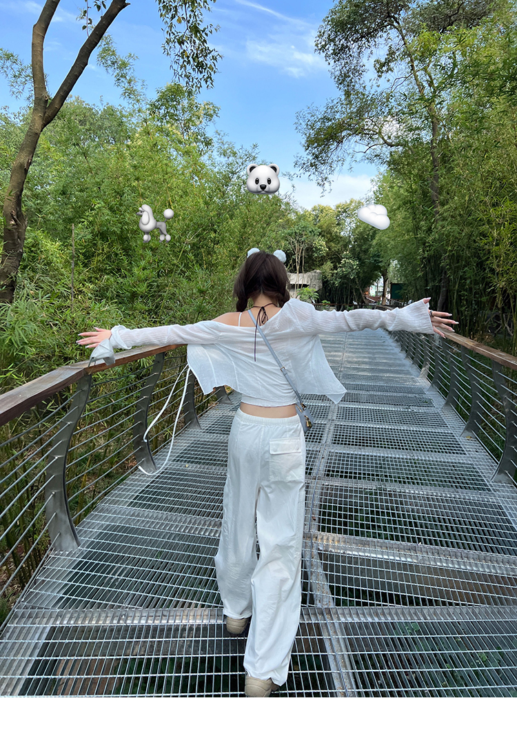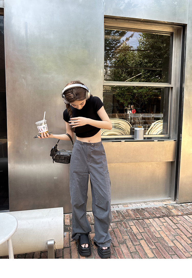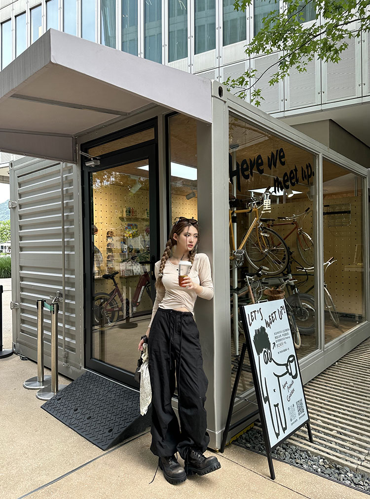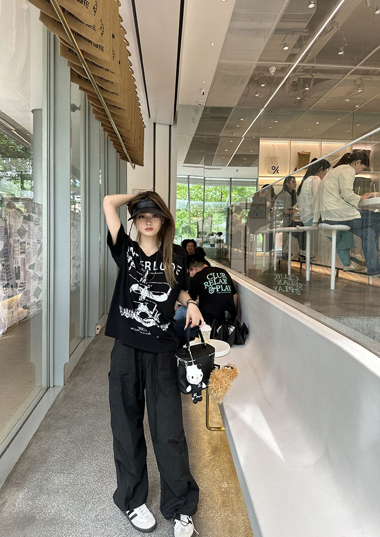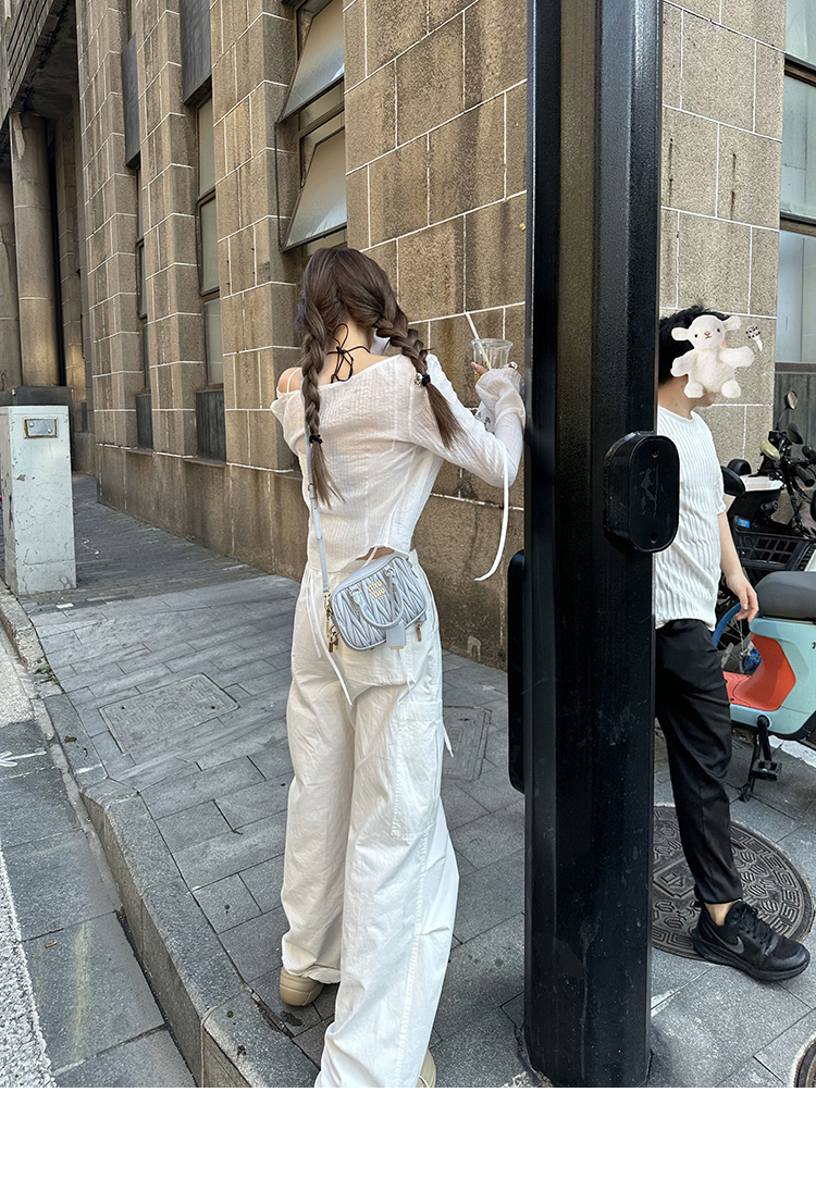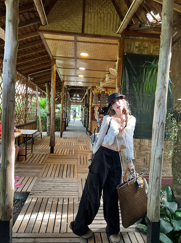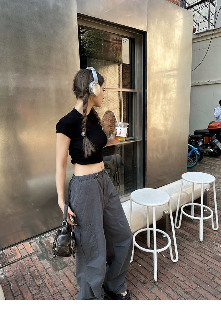 Xinlei Lin 新款夏季清爽水洗全棉透氣白色休閒工作服褲降落傘褲子