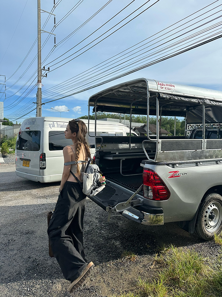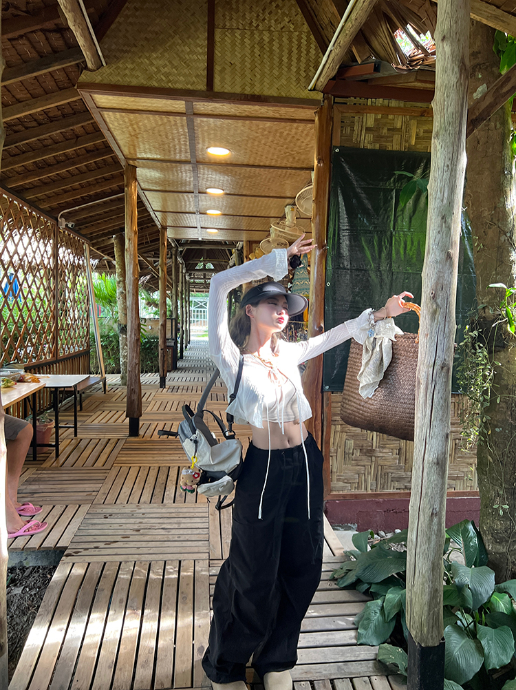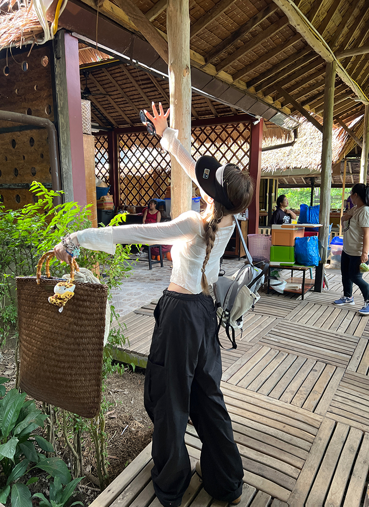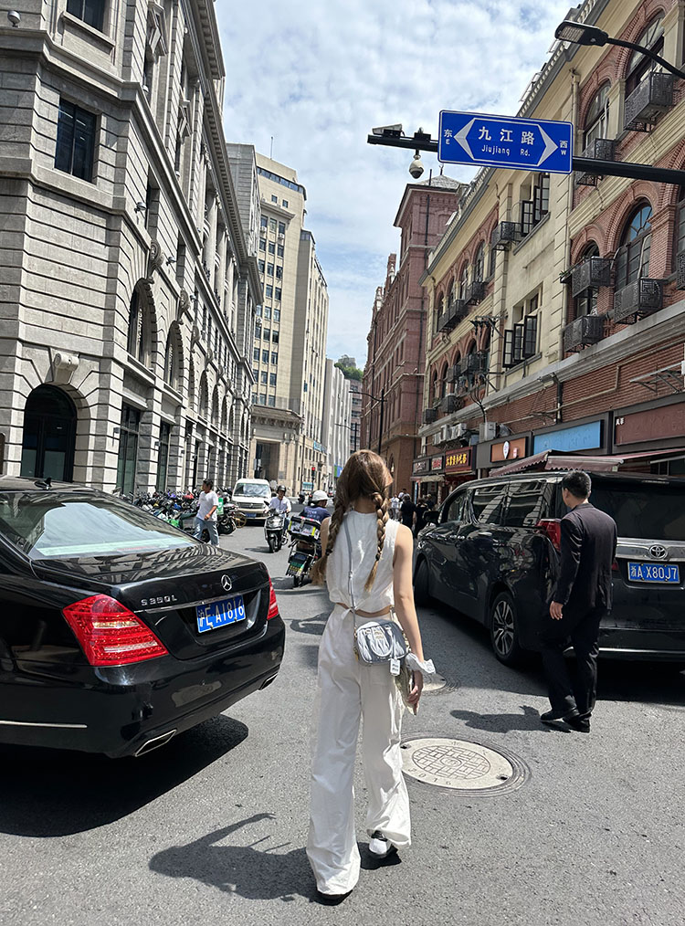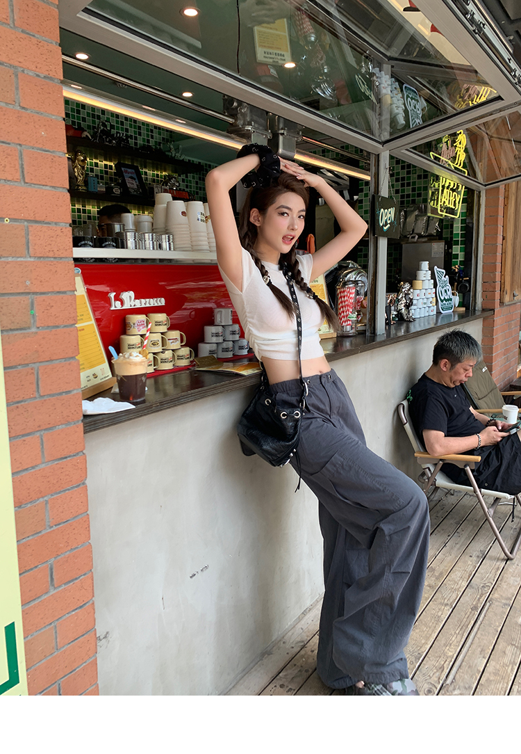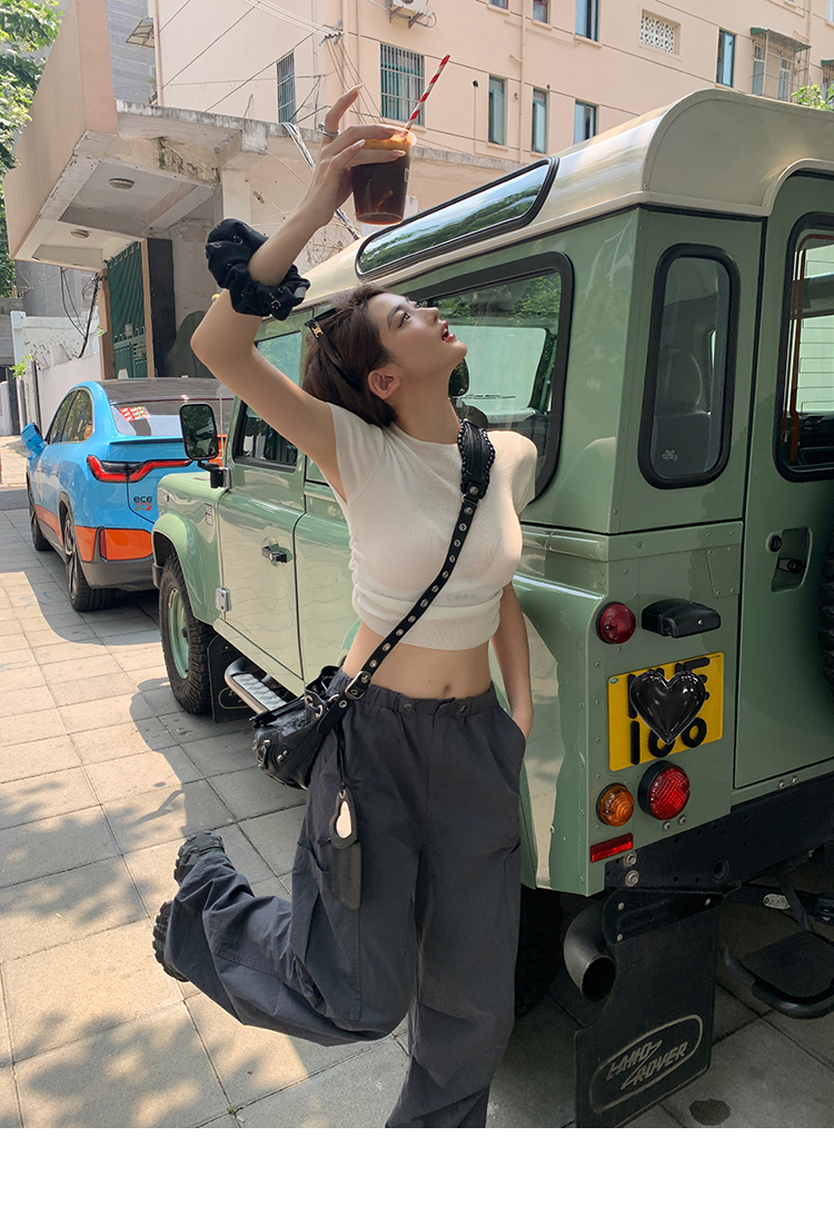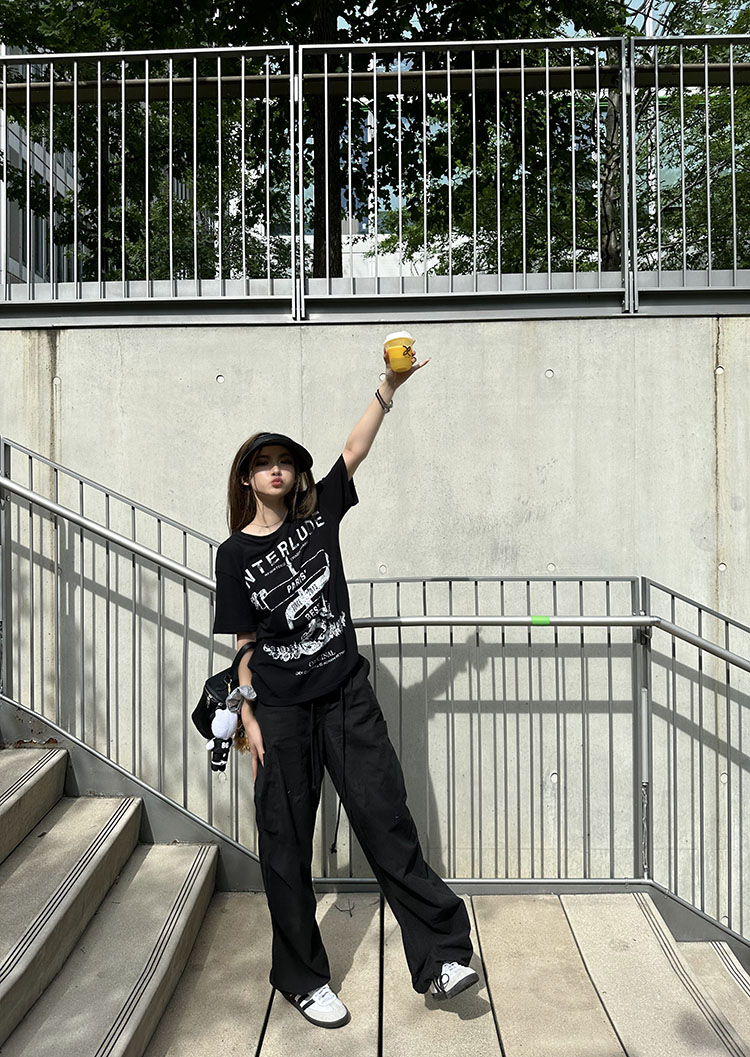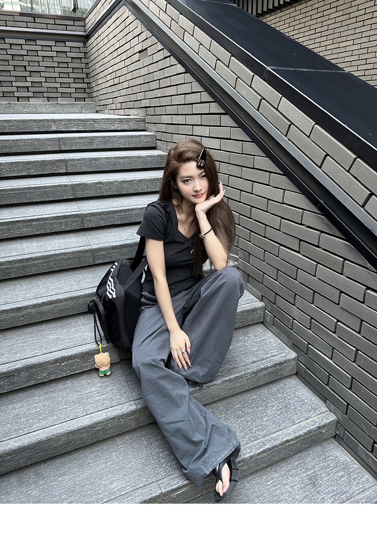Xinlei Lin 新款夏季清爽水洗全棉透氣白色休閒工作服褲降落傘褲子