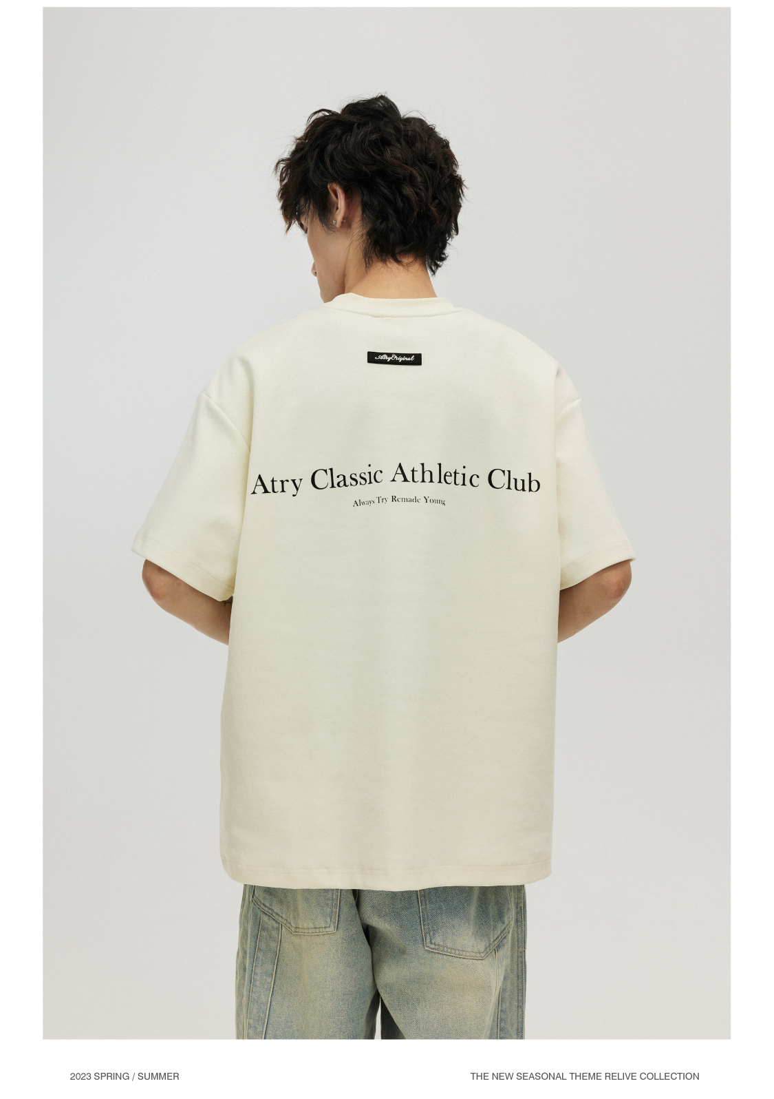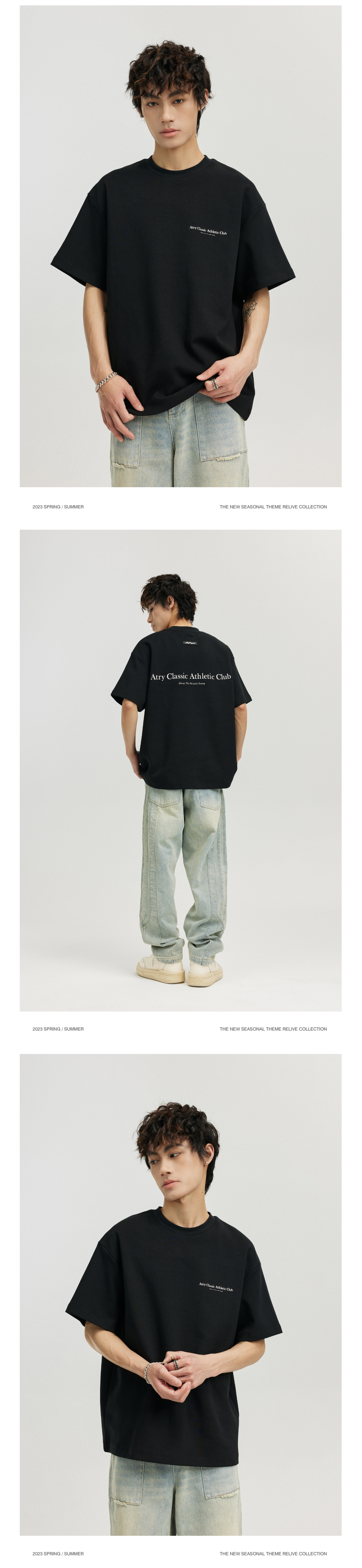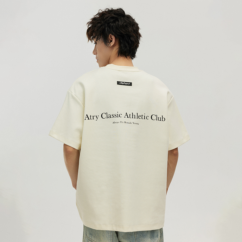 ATRY字母標語短袖 國潮牌寬鬆復古情侶半袖美式高街圓領上衣T恤男