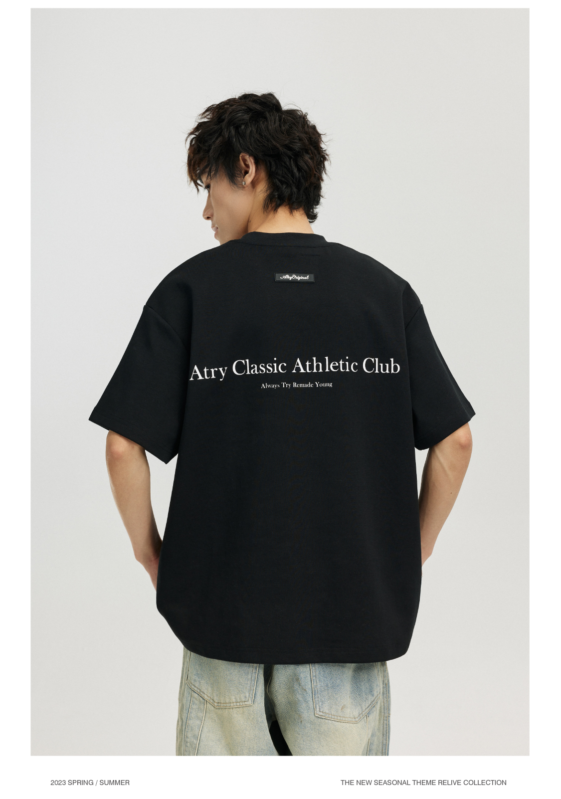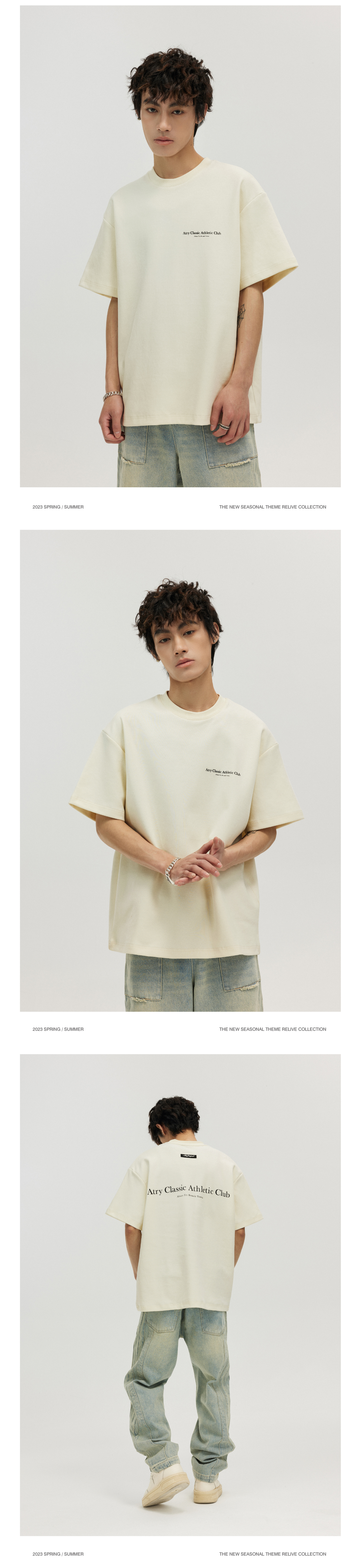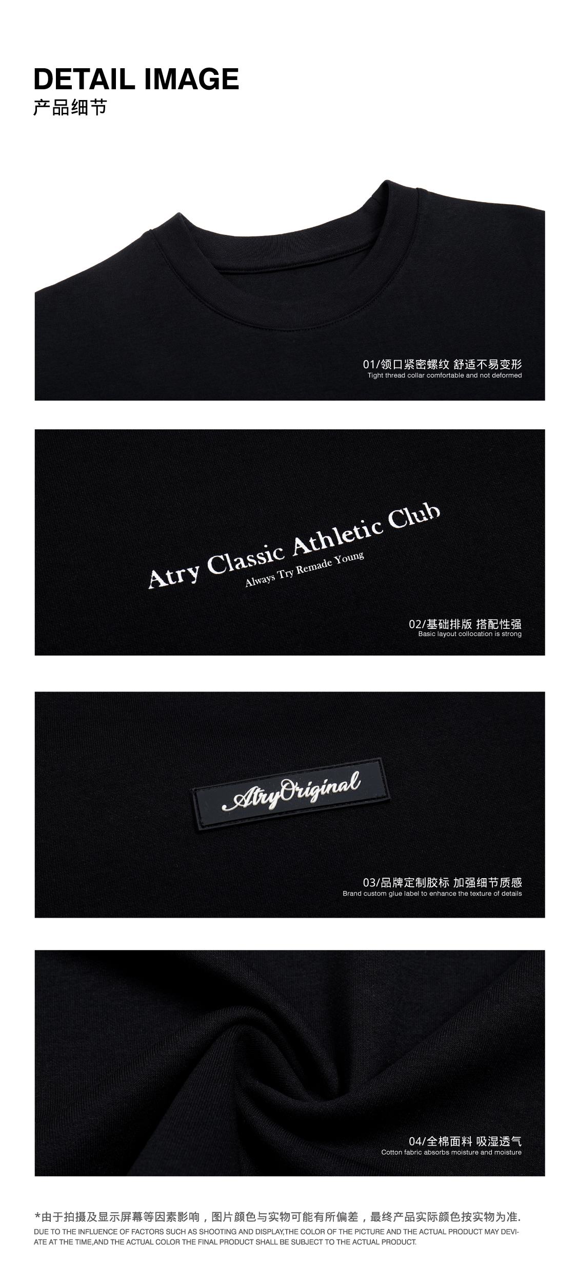 ATRY字母標語短袖 國潮牌寬鬆復古情侶半袖美式高街圓領上衣T恤男