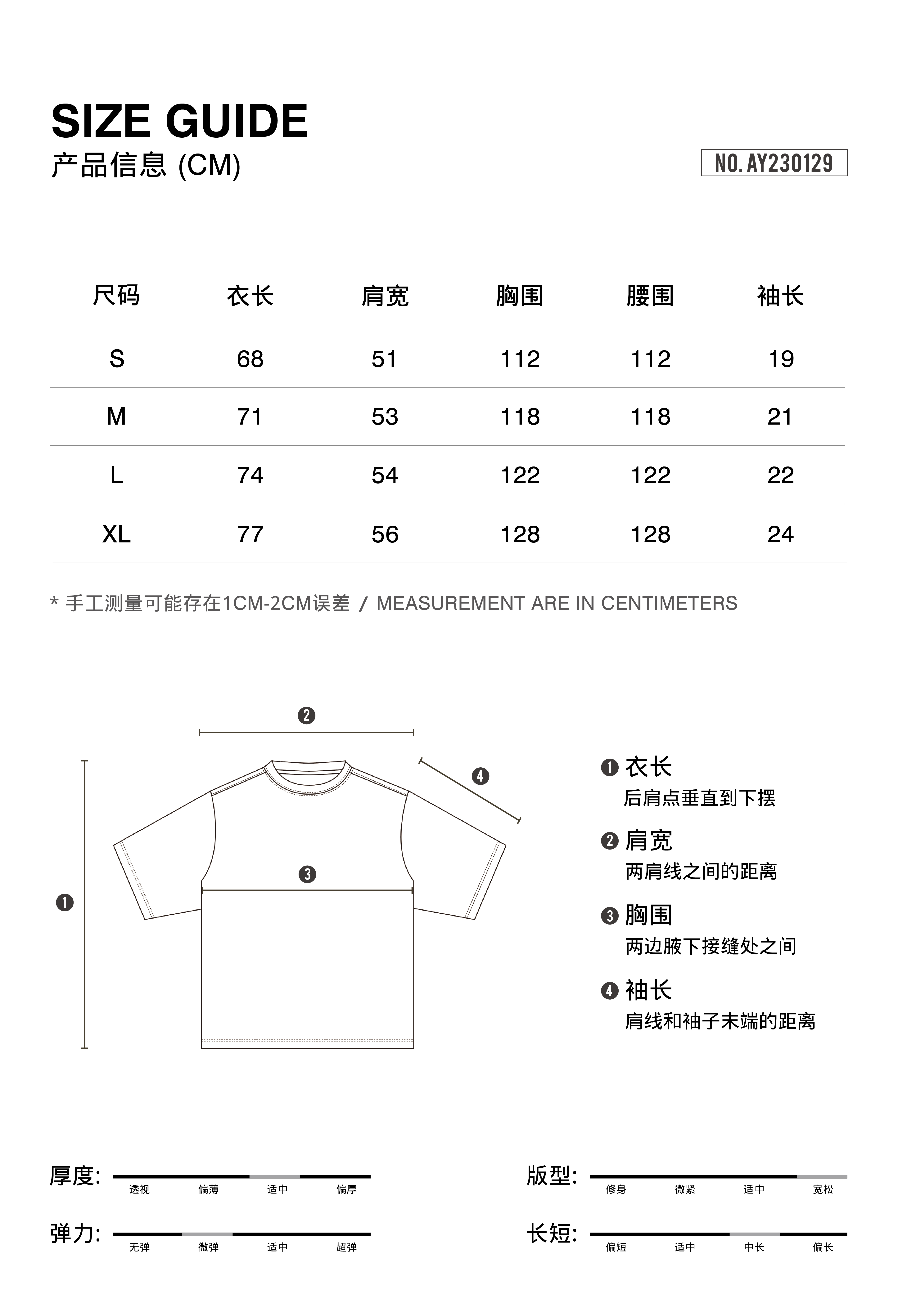 尺碼 S M L XL