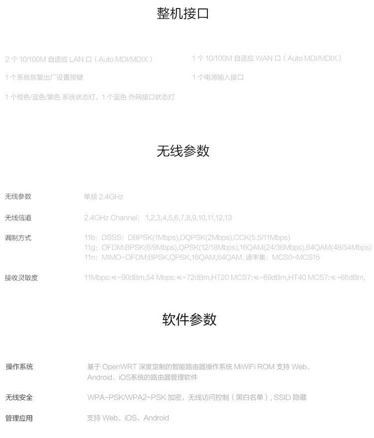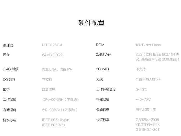 支持协议 802.11b 802.11g 802.11n 802.3u 802.3