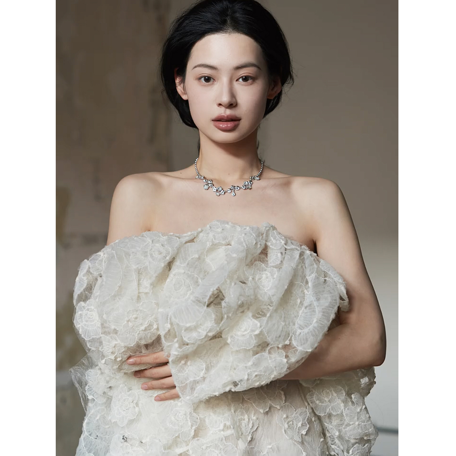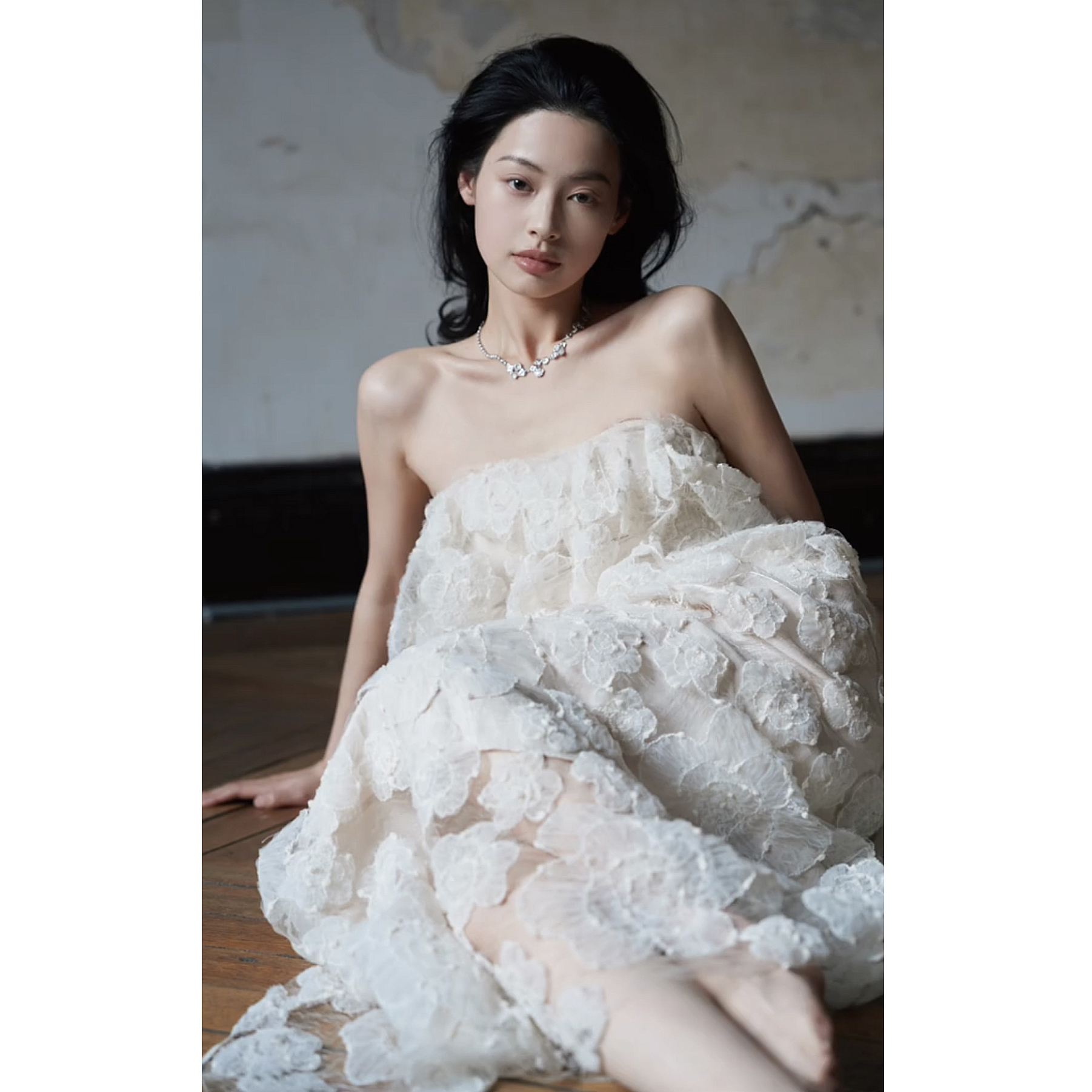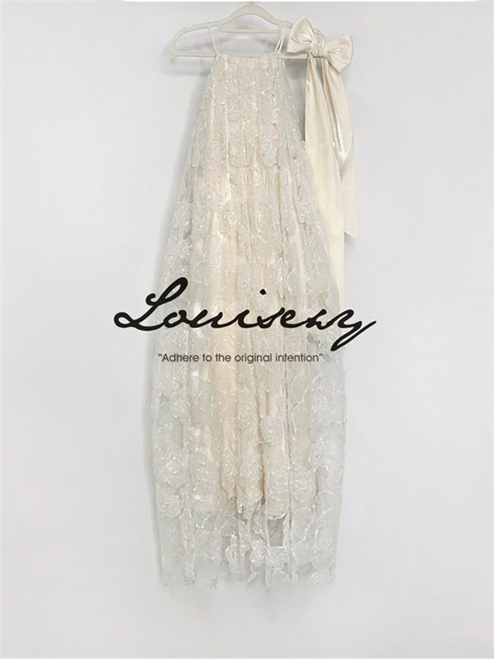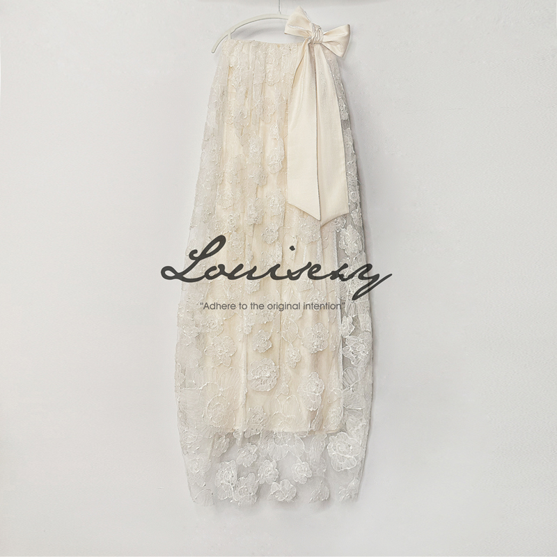 这条裙子我们做的比较长,蕾丝底摆是毛边设计的