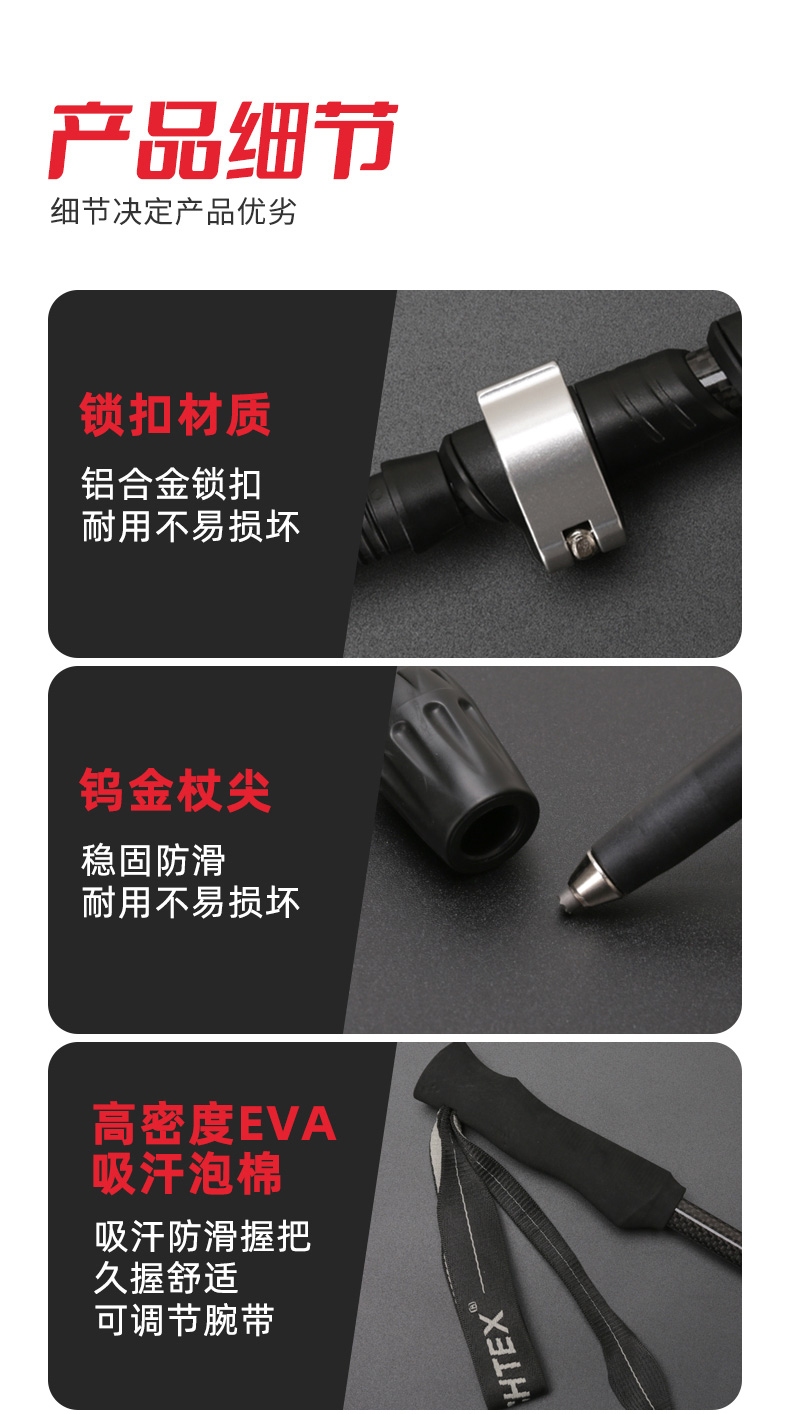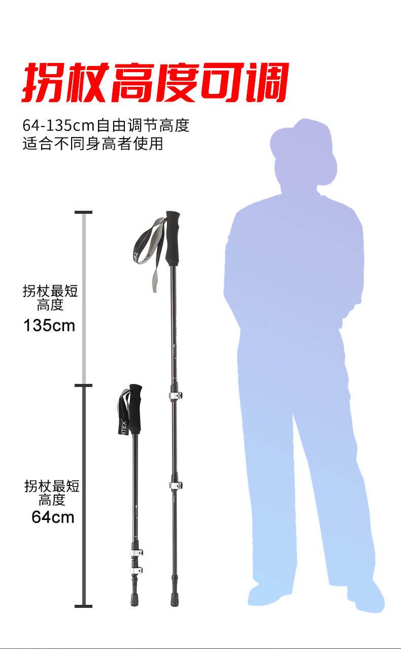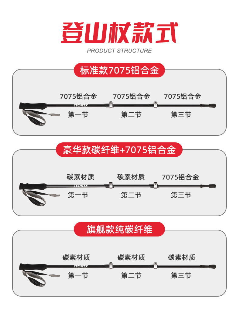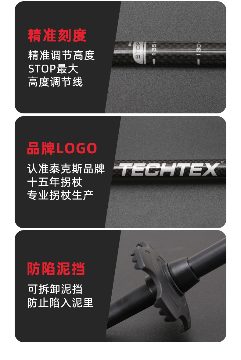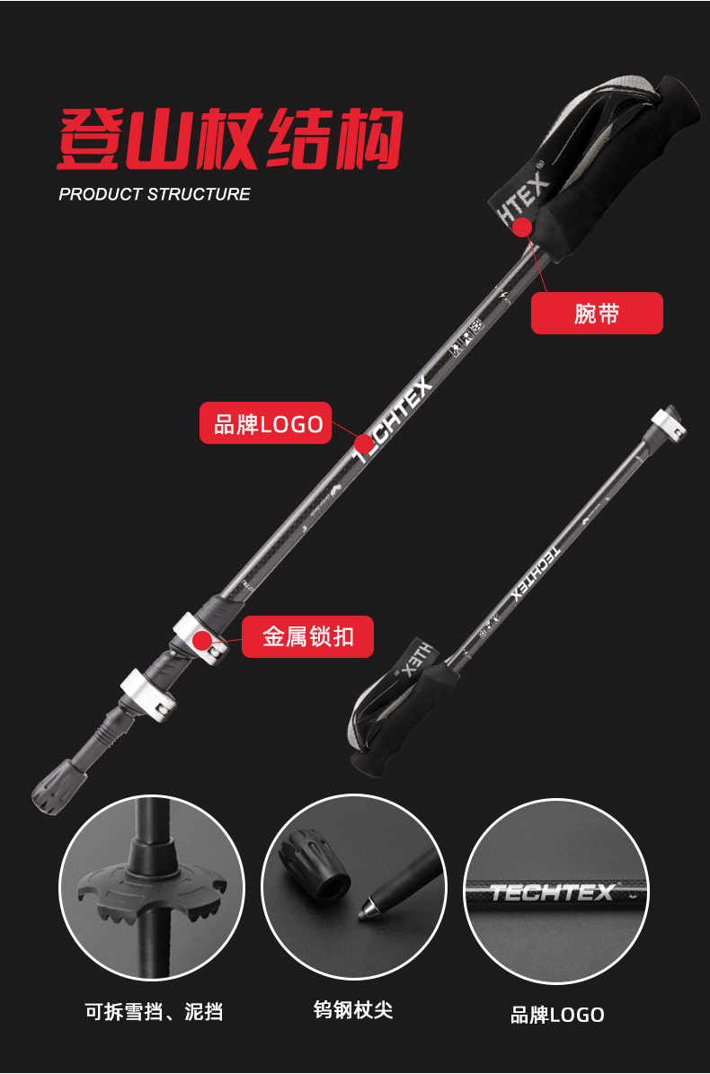 TECHTEX碳纖維登山杖超輕伸縮防滑手杖摺疊戶外徒步爬山裝備柺杖