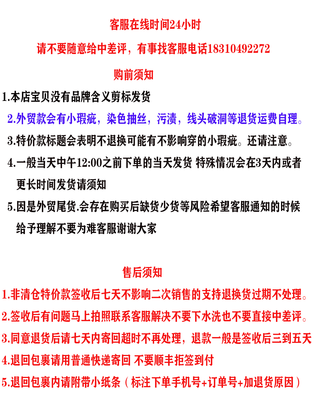 关于尺寸说明:店铺所售衣服多为出口多余成衣,因为出口国家不一所以尺码不统一