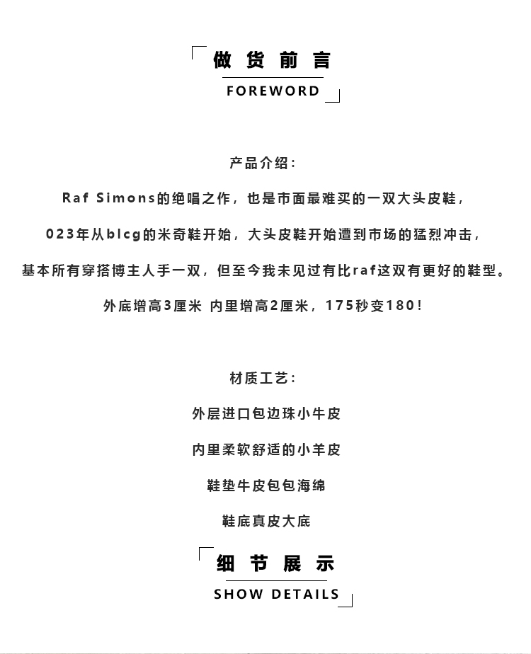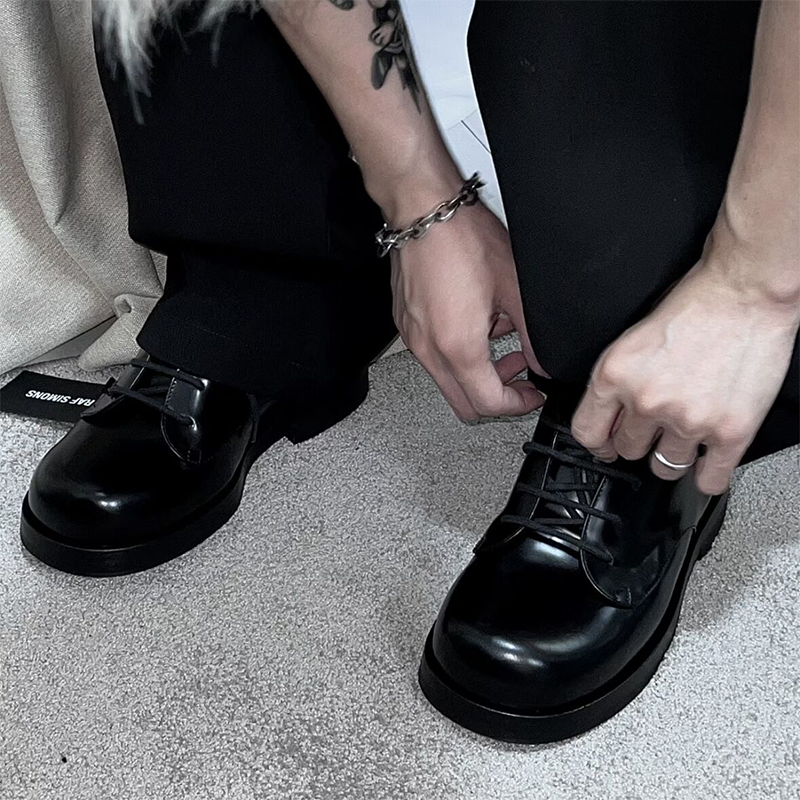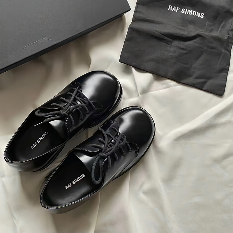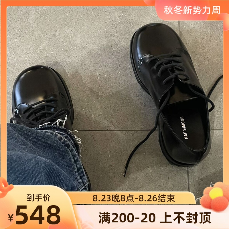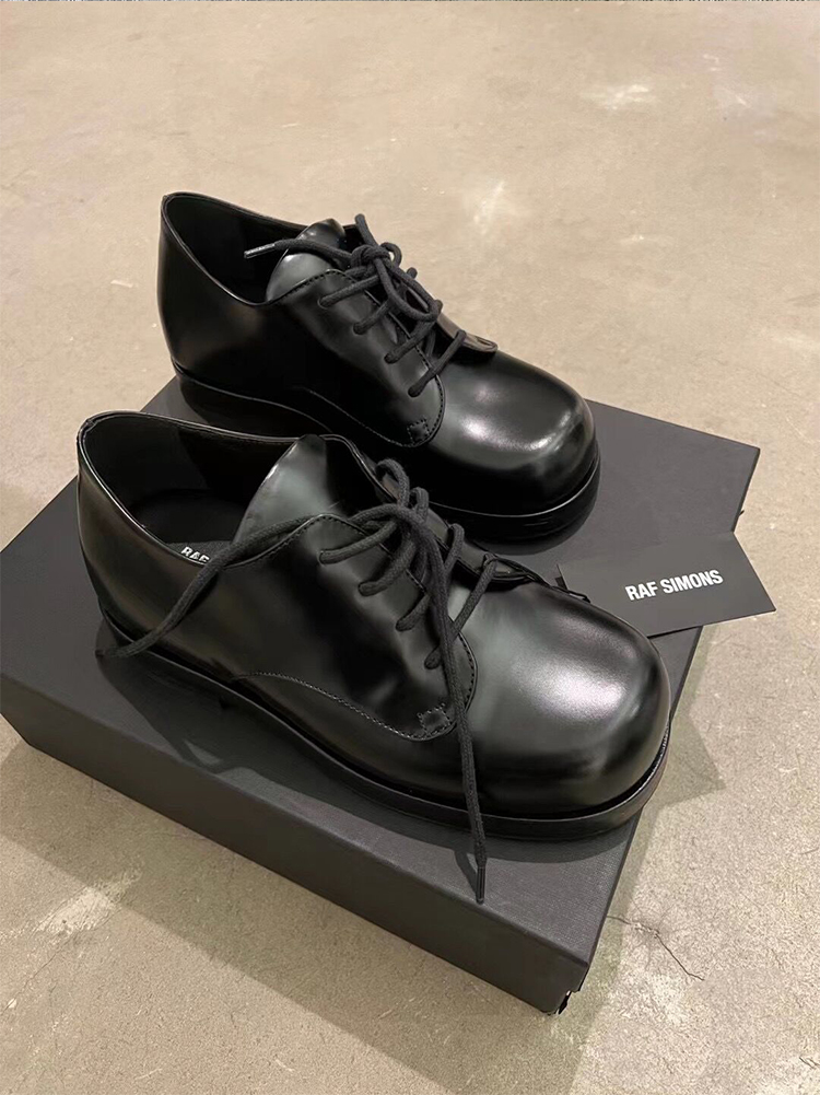 Raf Simons絕唱德比鞋 小牛皮圓頭增高大頭厚底皮鞋休閒百搭通勤