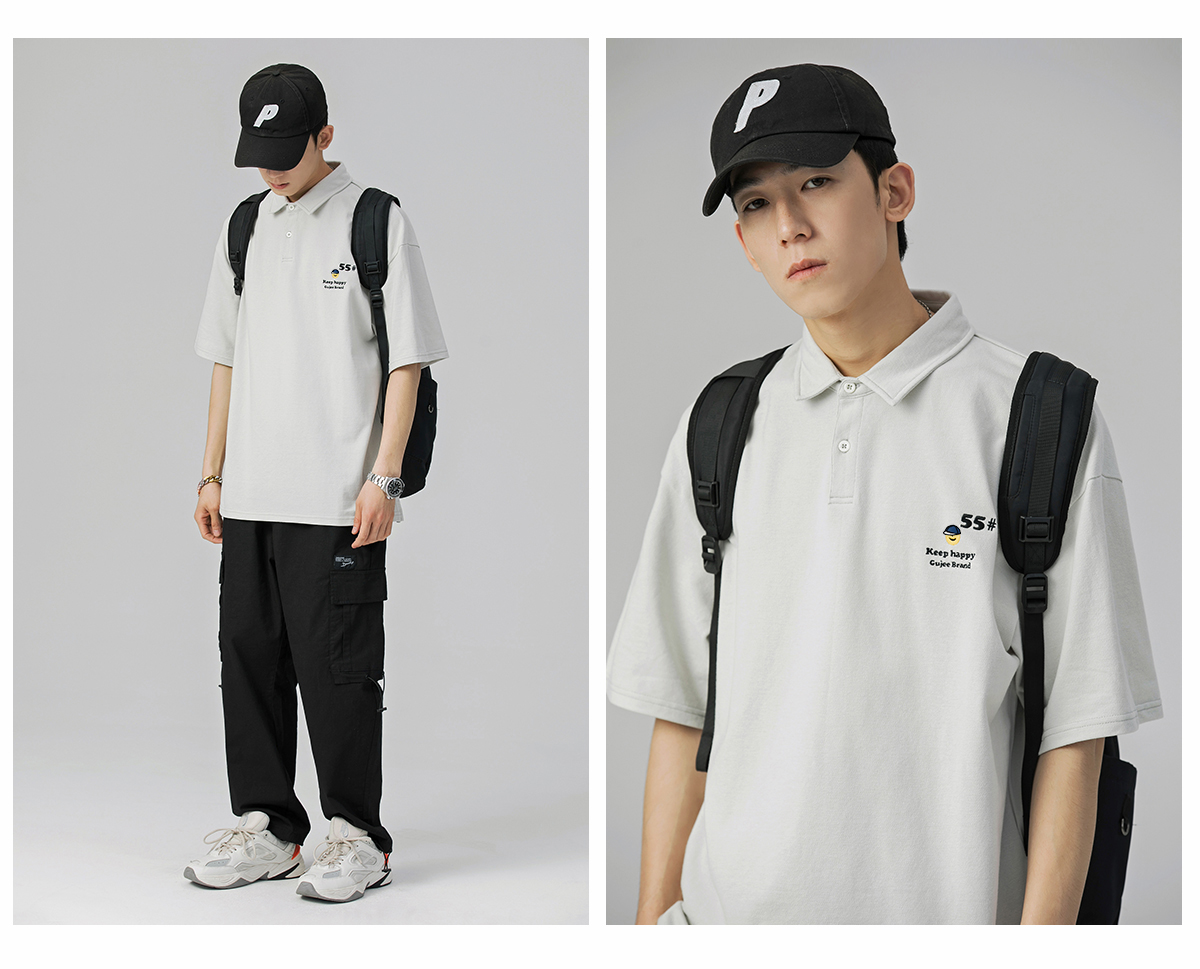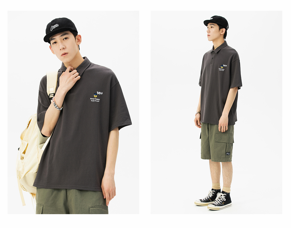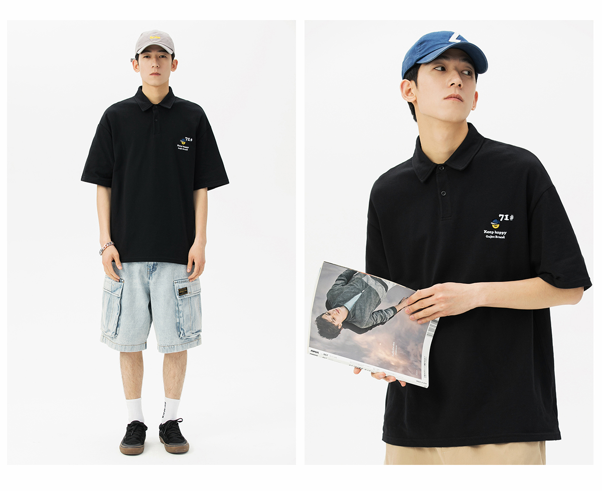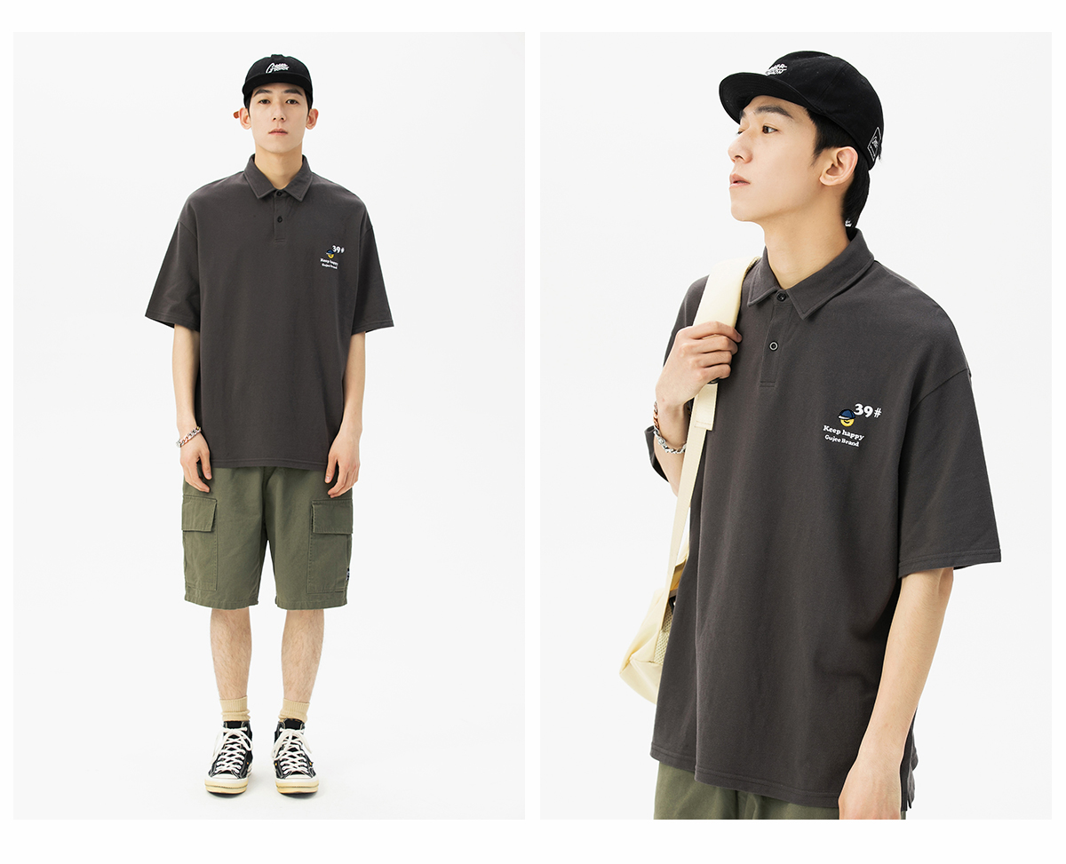 夏季翻領polo衫男短袖T恤男潮牌個性時尚潮流T恤衫寬鬆百搭半袖