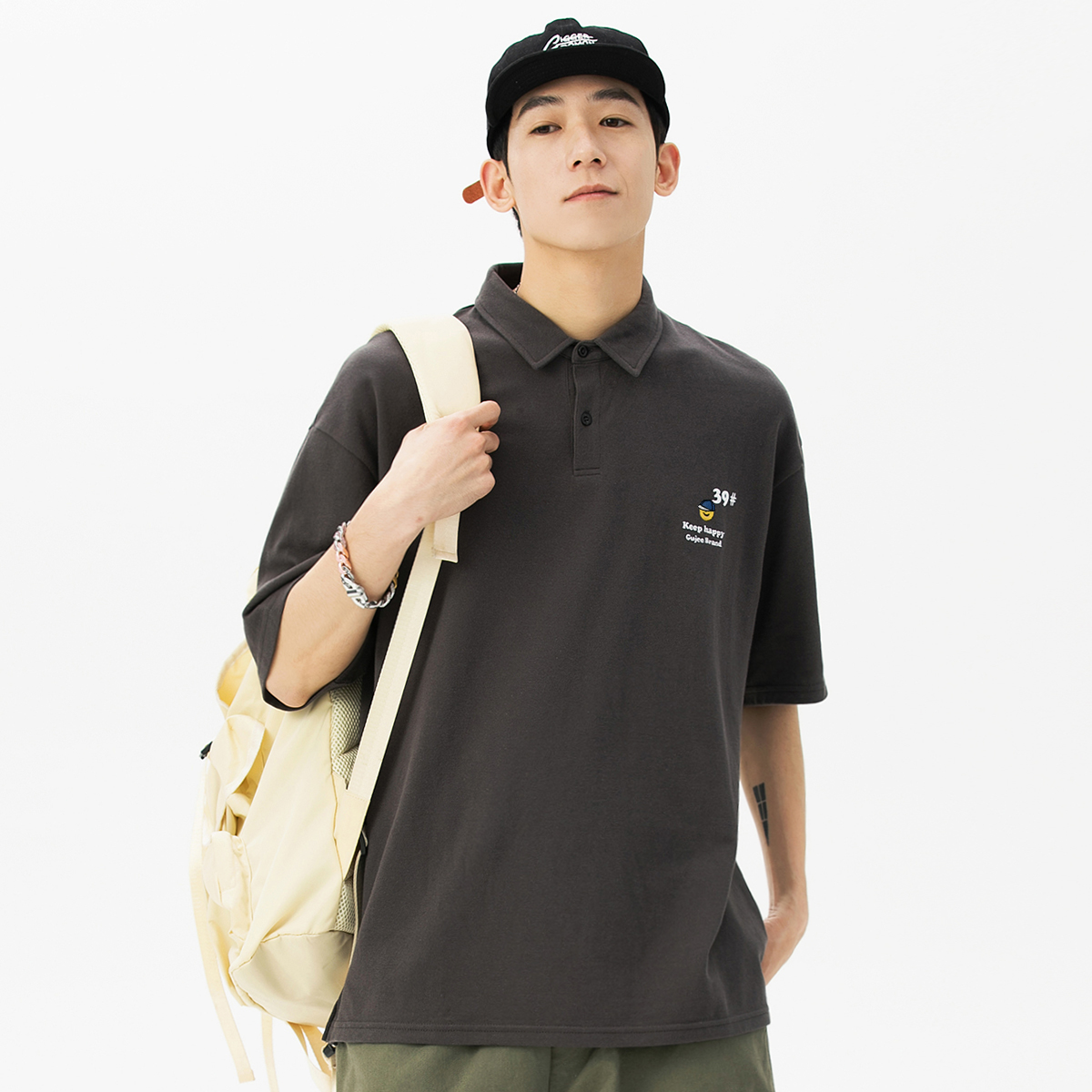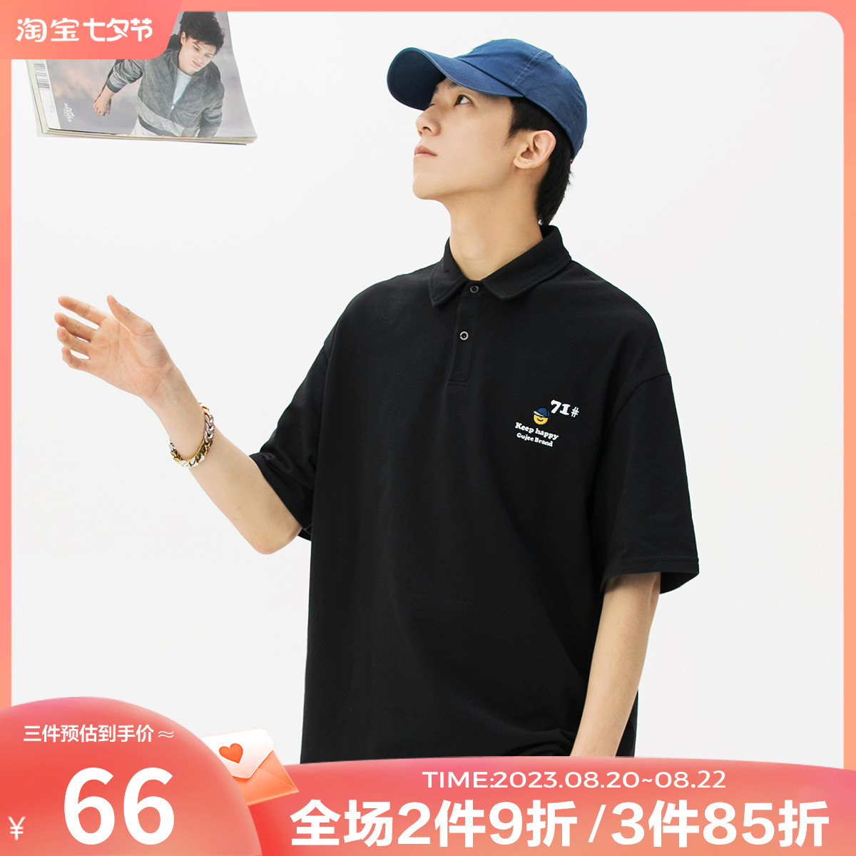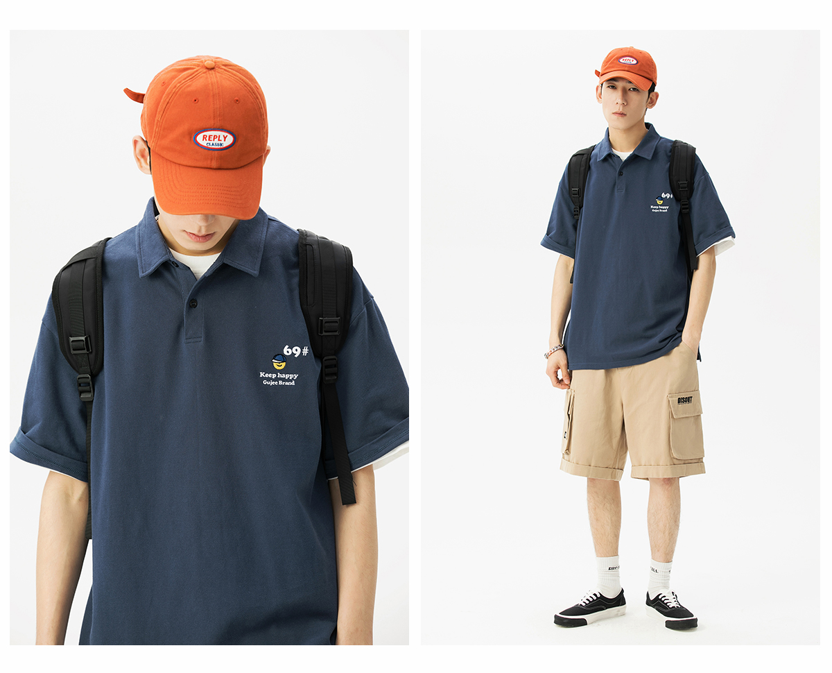 夏季翻領polo衫男短袖T恤男潮牌個性時尚潮流T恤衫寬鬆百搭半袖