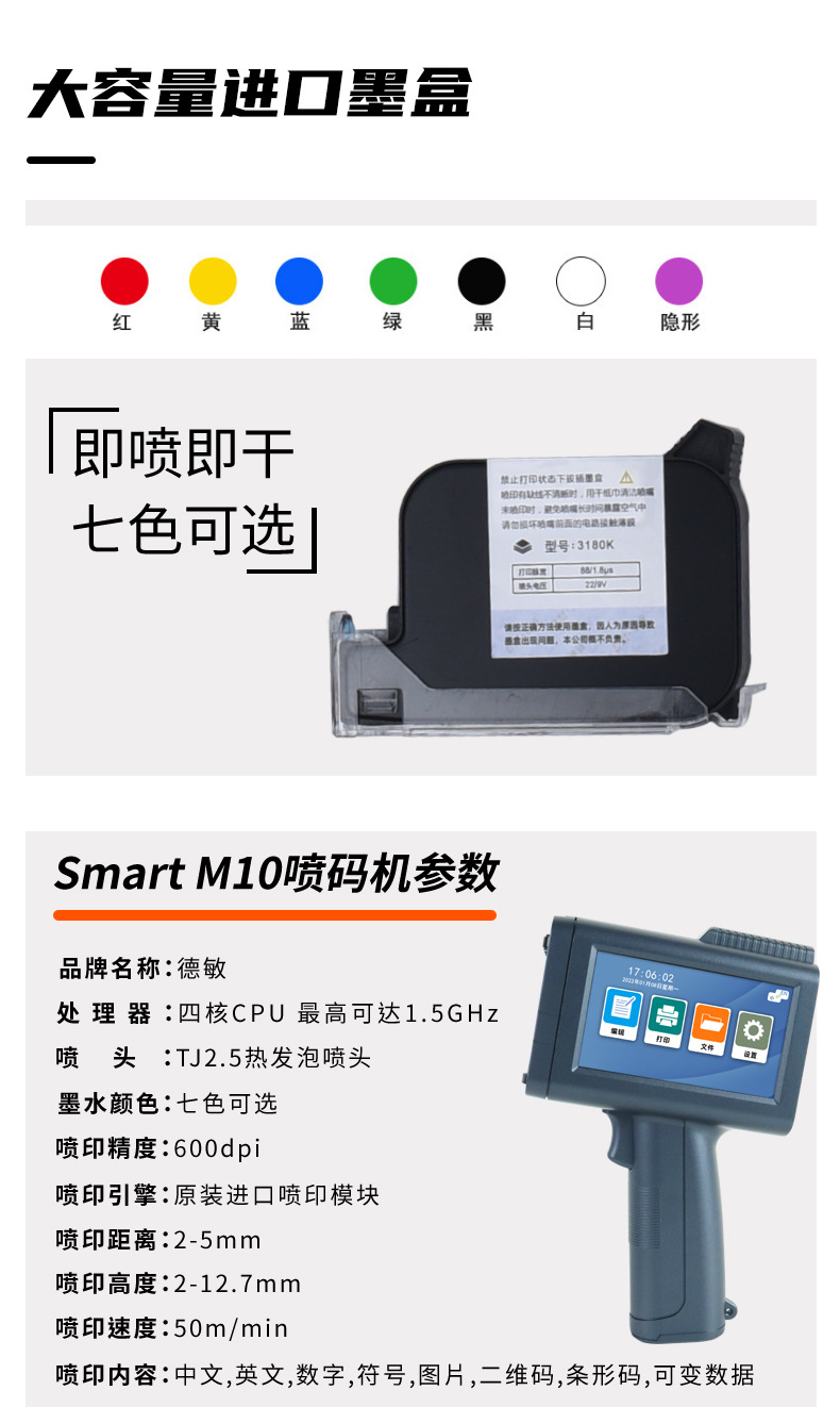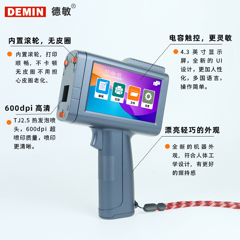 德敏m10手持小型喷码机生产日期易拉罐食品包装袋圆瓶纸盒打码机