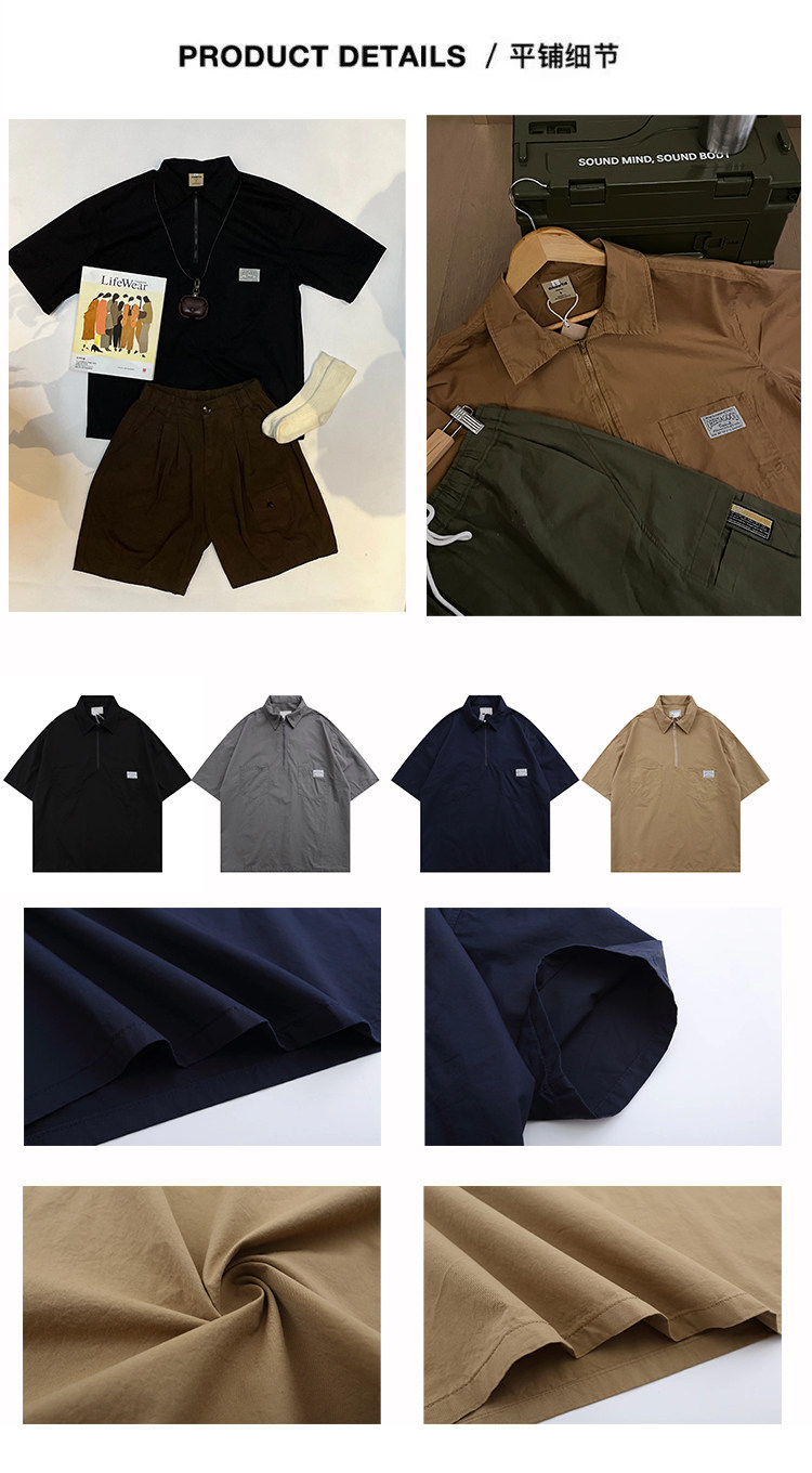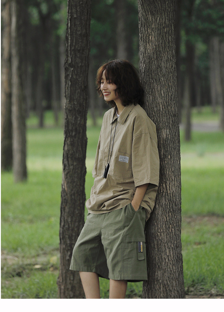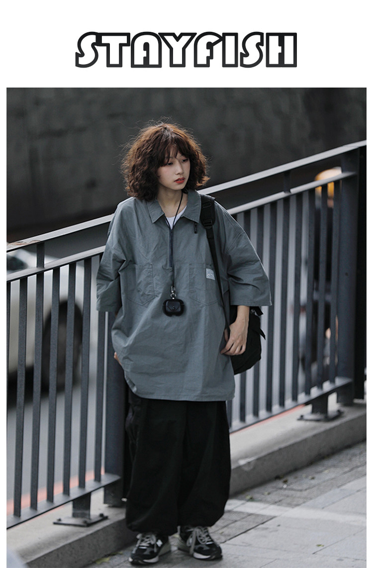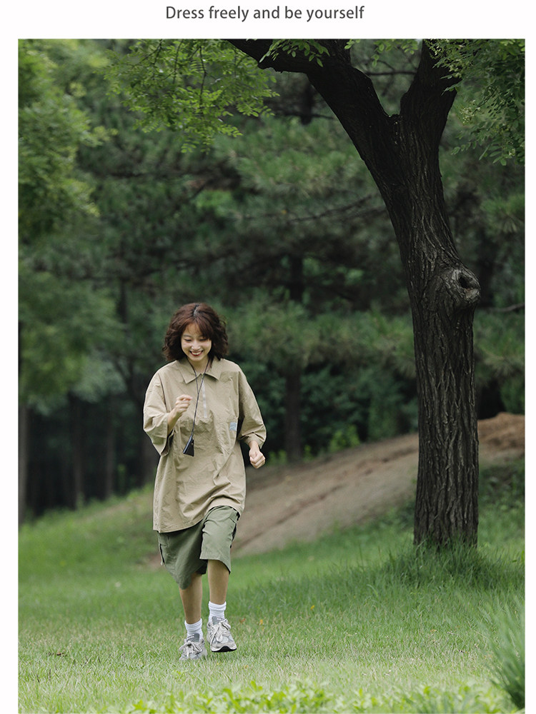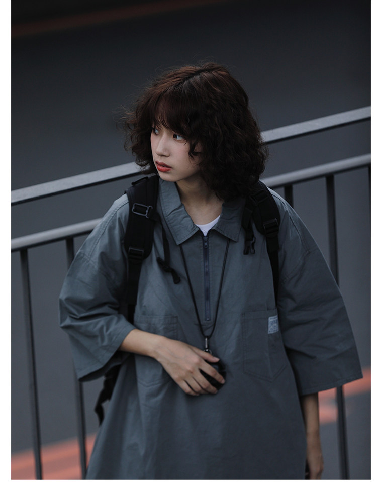 阿於呆 日系寬鬆POLO衫男女休閒百搭純色短袖基礎休閒五分袖上衣
