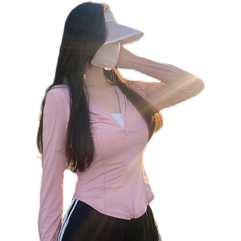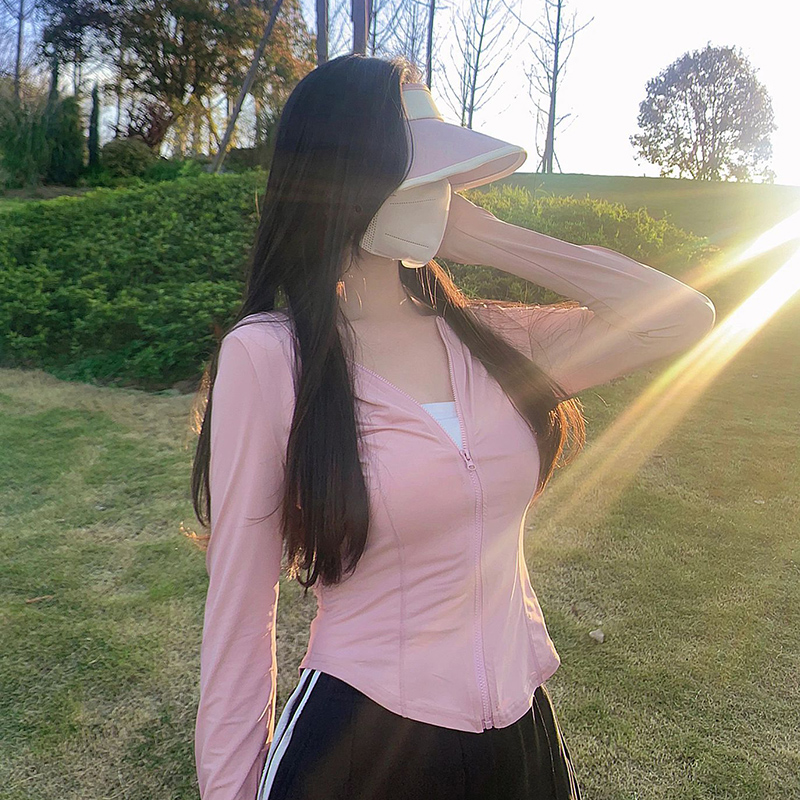 upf50+防曬衣女夏季薄款透氣抗UV修身短款冰絲粉色防曬服外套
