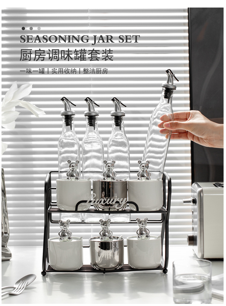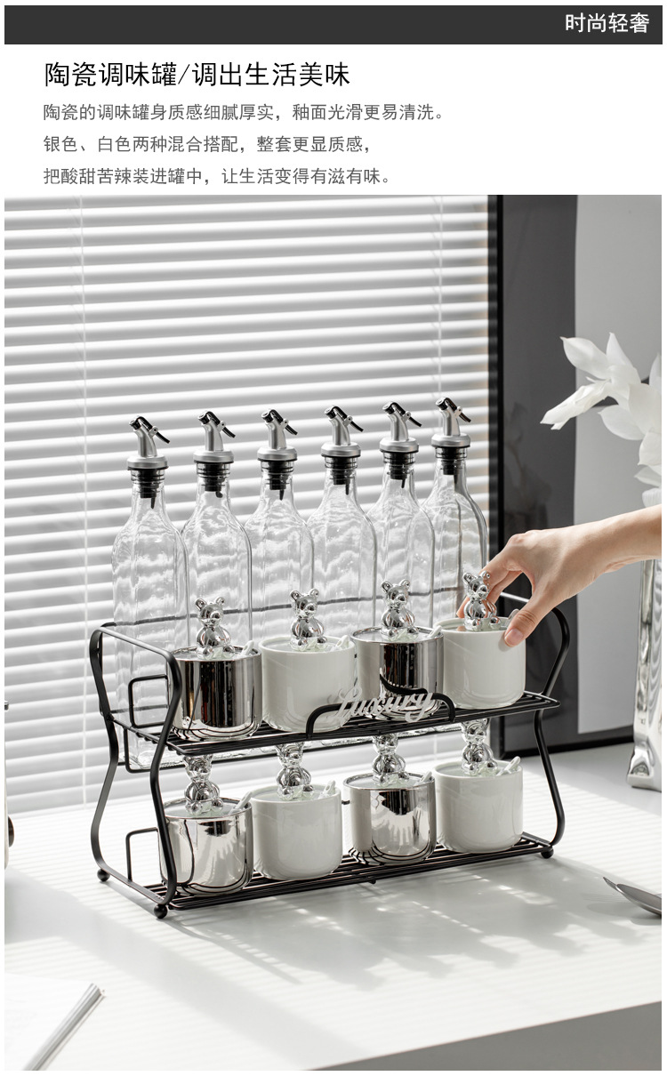 轻奢陶瓷调料罐厨房用品调料瓶调味罐盐罐防尘调料盒家用套装批发