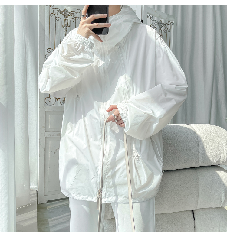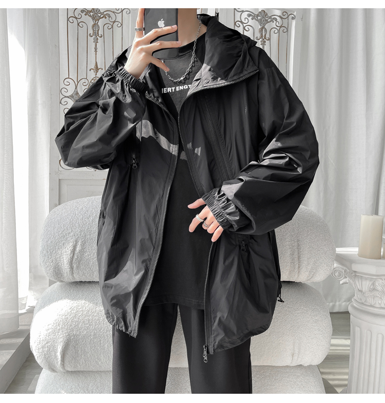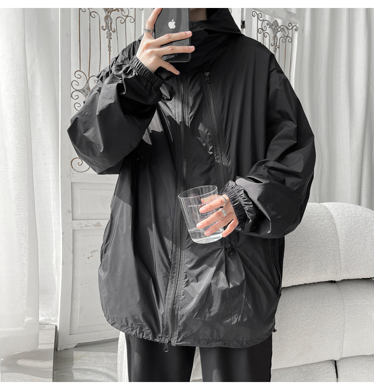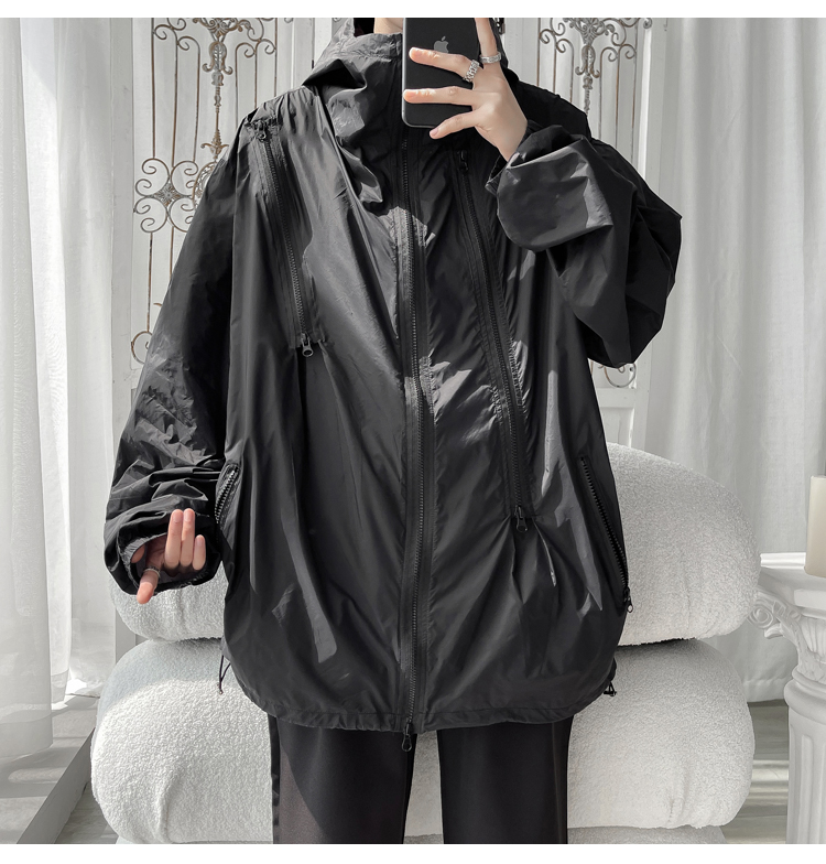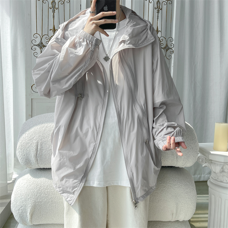 冰絲防曬衣男式夏季薄款機能衝鋒衣外套美式高街大尺碼防曬服夾克潮