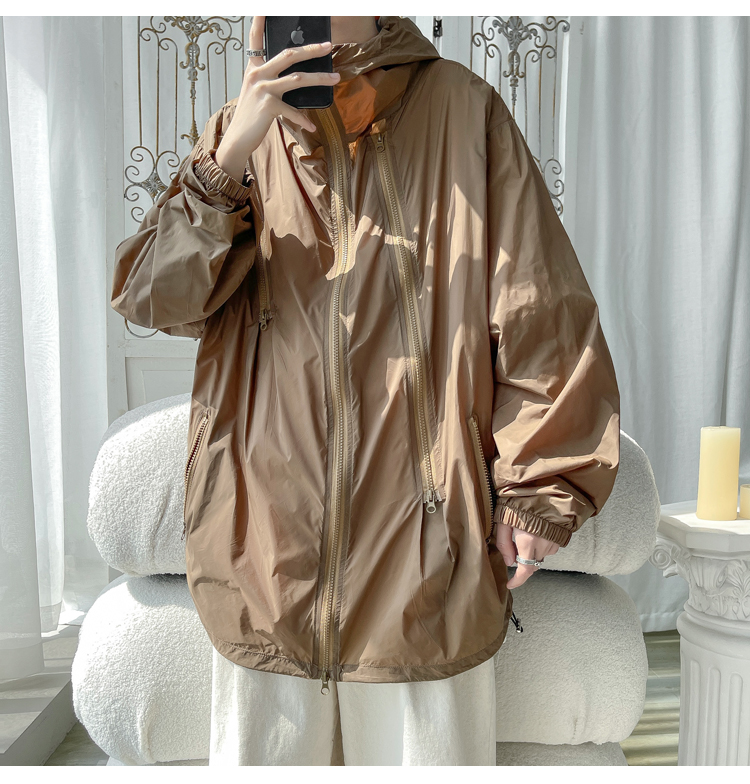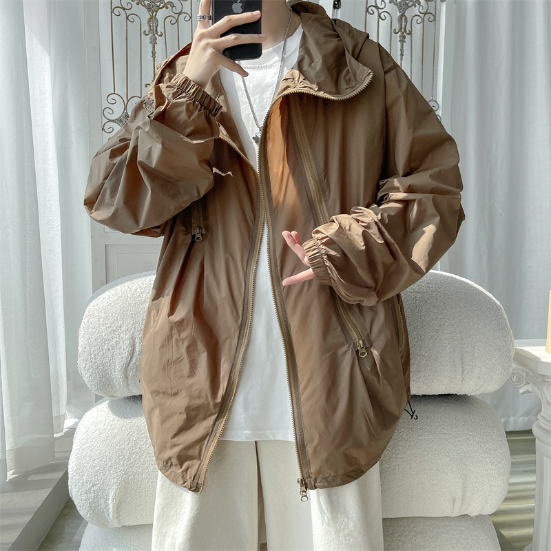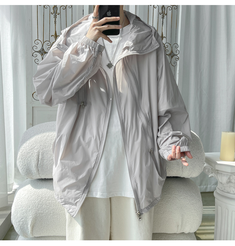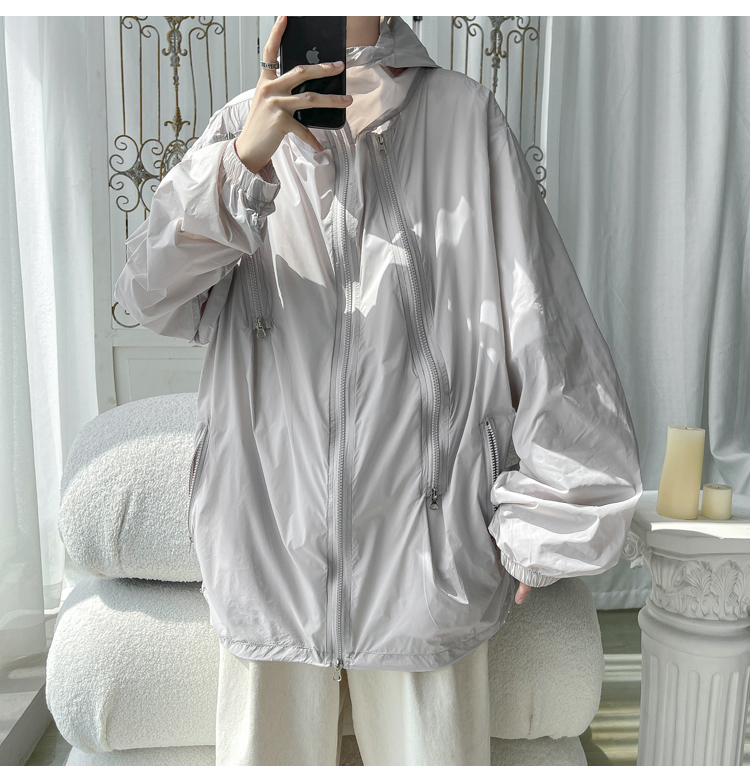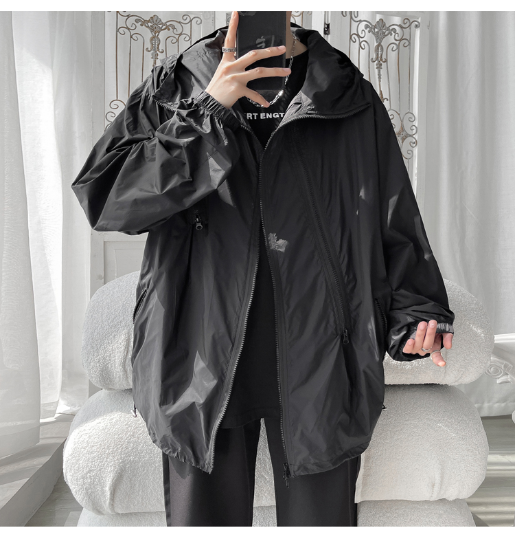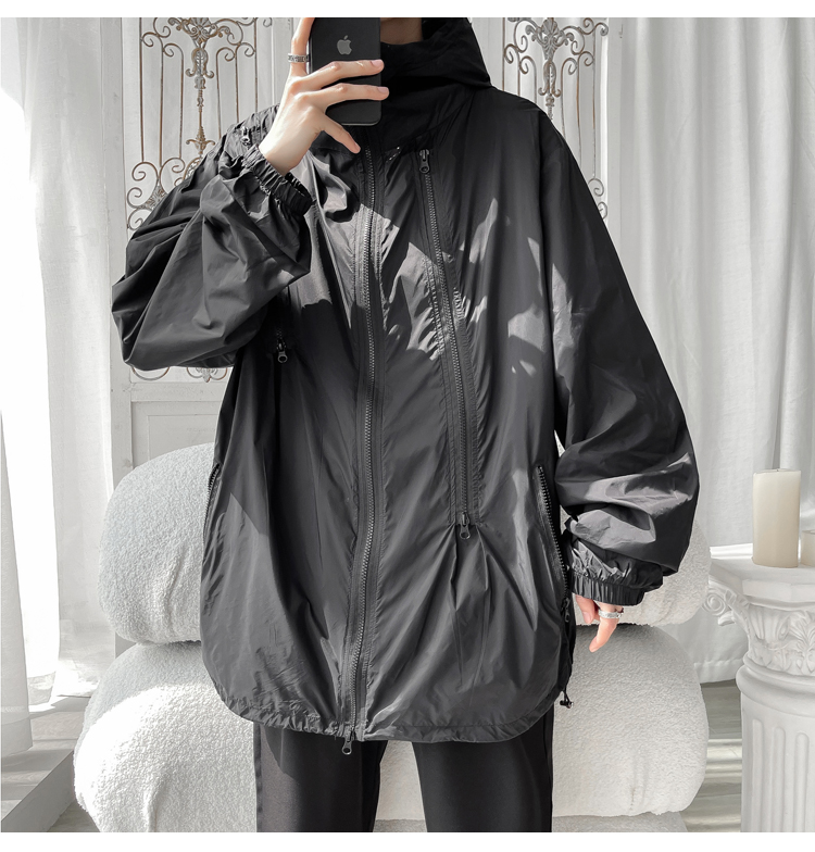 冰絲防曬衣男式夏季薄款機能衝鋒衣外套美式高街大尺碼防曬服夾克潮