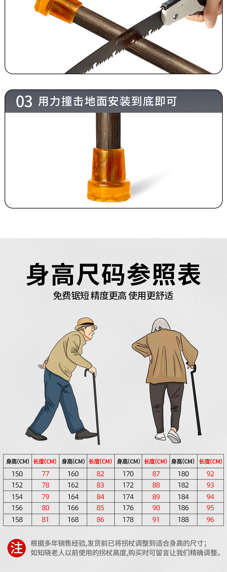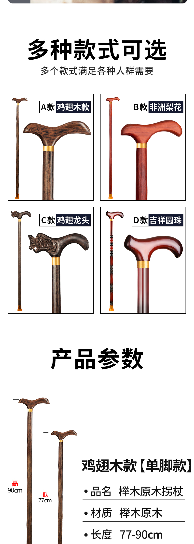 顏色分類 A款雞翅木77cm 防滑【單腳】適合身高145-150cm A款雞翅木80cm防滑【單腳】適合身高150-155cm A款雞翅木82cm防滑【單腳】適合身高155-160cm A款雞翅木85cm防滑【單腳】適合身高160-165cm A款雞翅木90cm防滑【單腳】適合身高165-175cm B款非洲花梨77cm防滑【單腳】適合身高145-150cm B款非洲花梨82cm防滑【單腳】適合身高155-160cm B款非洲花梨85cm防滑【單腳】適合身高160-165cm B款非洲花梨90cm防滑【單腳】適合身高165-175cm C款雞翅龍頭77cm防滑【單腳】適合身高145-150cm C款雞翅龍頭82cm防滑【單腳】適合身高155-160cm C款雞翅龍頭85cm防滑【單腳】適合身高160-165cm C款雞翅龍頭90cm防滑【單腳】適合身高165-175cm D款吉祥圓珠77cm防滑【單腳】適合身高145-150cm D款吉祥圓珠82cm防滑【單腳】適合身高155-160cm D款吉祥圓珠85cm防滑【單腳】適合身高160-165cm D款吉祥圓珠90cm防滑【單腳】適合身高165-175cm E款富貴竹節80cm防滑【單腳】適合身高145-155cm E款富貴竹節85cm防滑【單腳】適合身高156-165cm E款富貴竹節90cm防滑【單腳】適合身高166-175cm E款富貴竹節95cm防滑【單腳】適合身高176-185cm F款經典簡約80cm防滑【單腳】適合身高145-155cm F款經典簡約85cm防滑【單腳】適合身高156-165cm F款經典簡約90cm防滑【單腳】適合身高166-175cm F款經典簡約95cm防滑【單腳】適合身高176-185cm A款雞翅木77cm加固防滑【四腳】適合身高145-150cm A款雞翅木82cm加固防滑【四腳】適合身高155-160cm A款雞翅木85cm加固防滑【四腳】適合身高160-165cm A款雞翅木90cm加固防滑【四腳】適合身高165-175cm B款非洲花梨77cm加固防滑【四腳】適合身高145-150cm B款非洲花梨82cm加固防滑【四腳】適合身高155-160cm B款非洲花梨85cm加固防滑【四腳】適合身高160-165cm B款非洲花梨90cm加固防滑【四腳】適合身高165-175cm C款雞翅龍頭77cm加固防滑【四腳】適合身高145-150cm C款雞翅龍頭82cm加固防滑【四腳】適合身高155-160cm C款雞翅龍頭85cm加固防滑【四腳】適合身高160-165cm C款雞翅龍頭90cm加固防滑【四腳】適合身高165-175cm D款吉祥圓珠77cm加固防滑【四腳】適合身高145-150cm D款吉祥圓珠82cm加固防滑【四腳】適合身高155-160cm D款吉祥圓珠85cm加固防滑【四腳】適合身高160-165cm D款吉祥圓珠90cm加固防滑【四腳】適合身高165-175cm E款富貴竹節80cm加固防滑【四腳】適合身高145-155cm E款富貴竹節85cm加固防滑【四腳】適合身高156-165cm E款富貴竹節90cm加固防滑【四腳】適合身高166-175cm E款富貴竹節95cm加固防滑【四腳】適合身高176-185cm F款經典簡約80cm加固防滑【四腳】適合身高145-155cm F款經典簡約85cm加固防滑【四腳】適合身高156-165cm F款經典簡約90cm加固防滑【四腳】適合身高166-175cm F款經典簡約95cm加固防滑【四腳】適合身高176-185cm