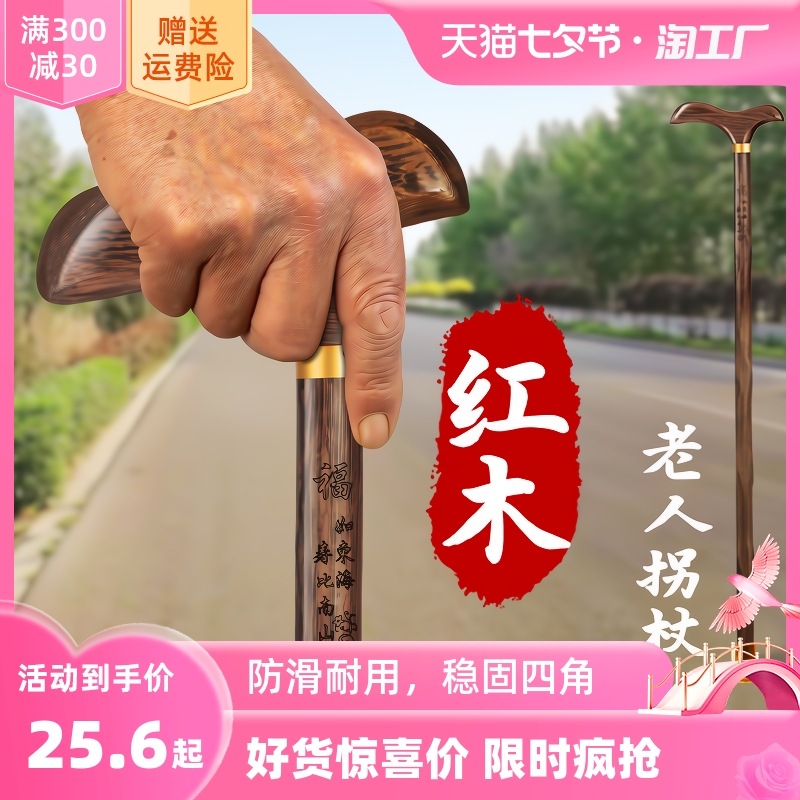 紅木柺杖老人防滑輕便柺棍老年人杖拐木頭拐扙四腳木手杖實木捌杖