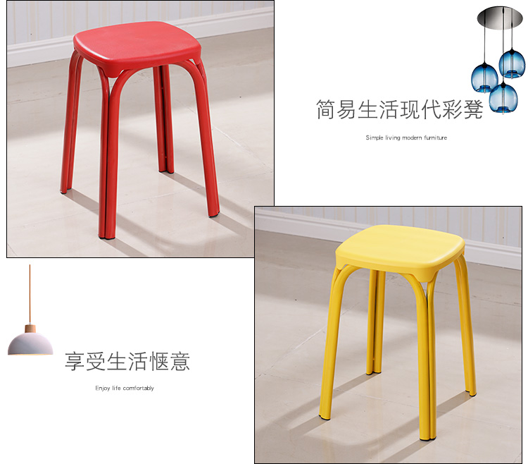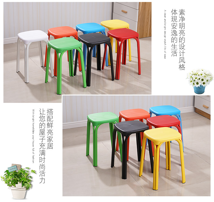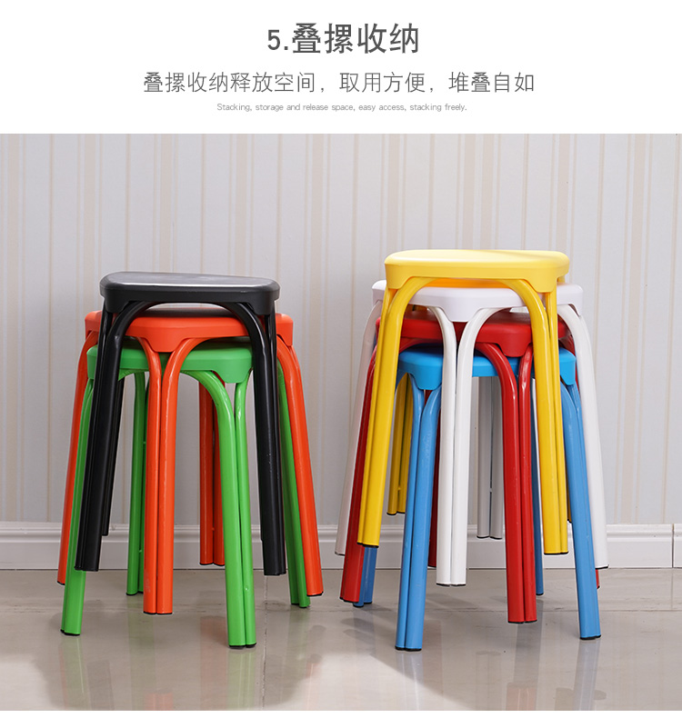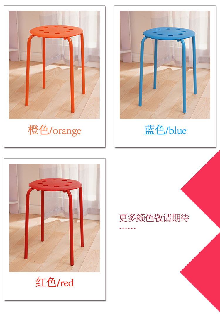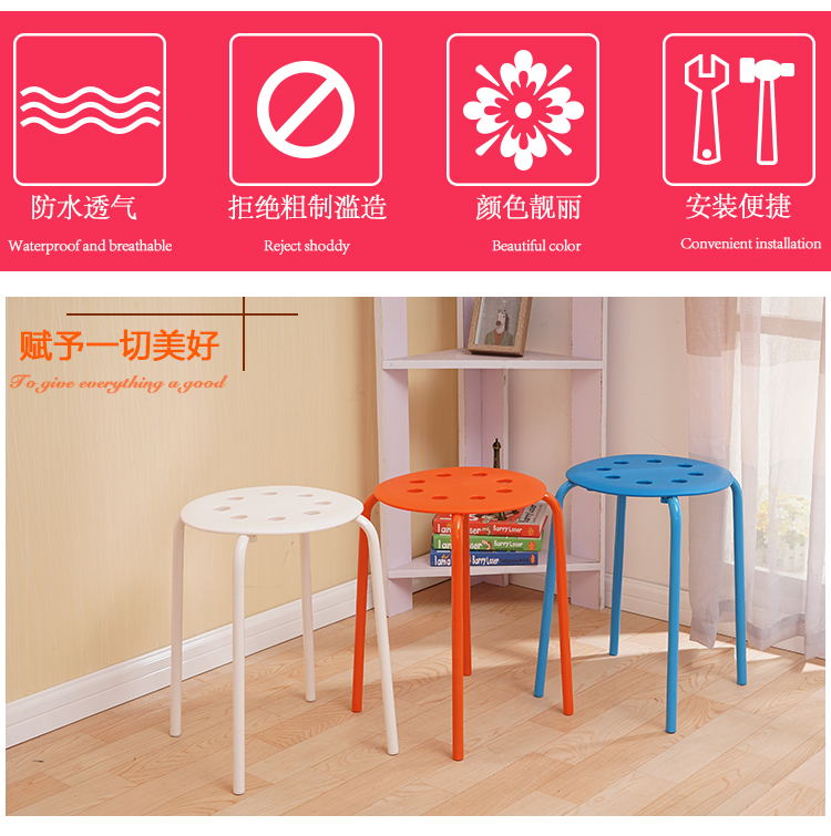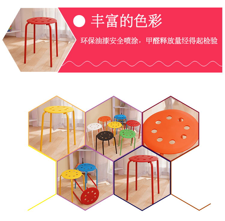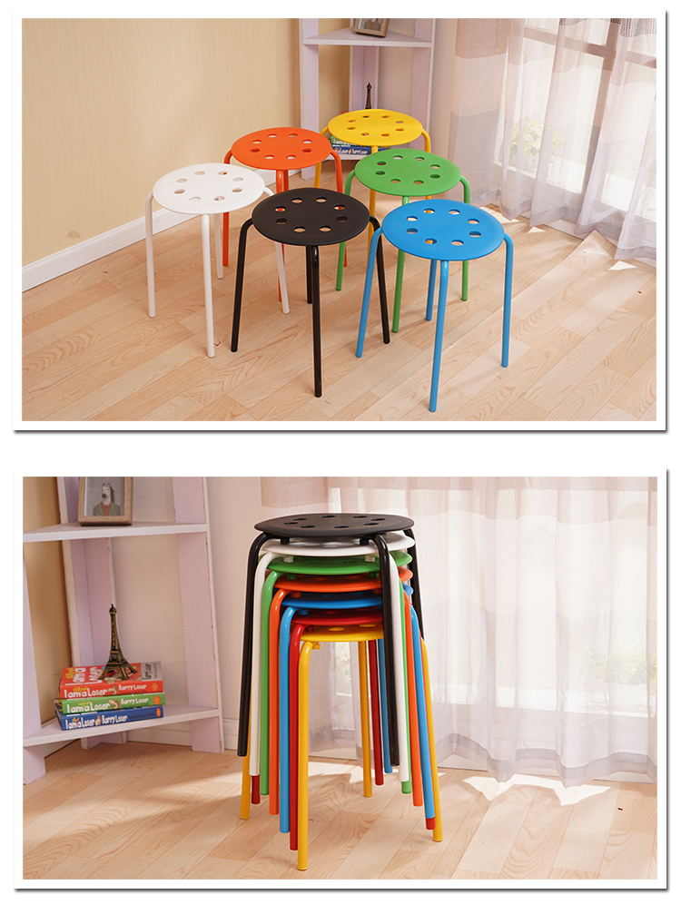 八孔凳高凳时尚圆凳 加厚成人塑料凳子餐桌凳 家用折叠凳彩色方凳