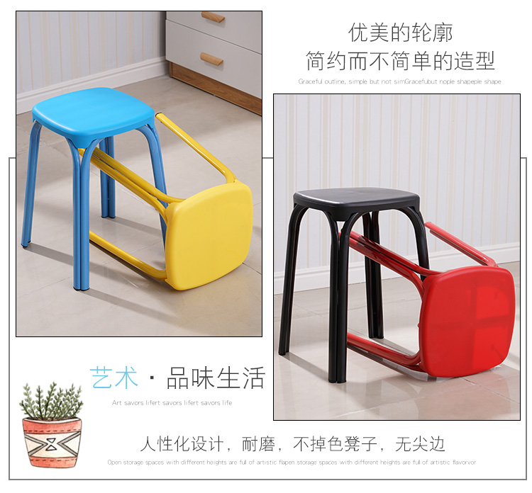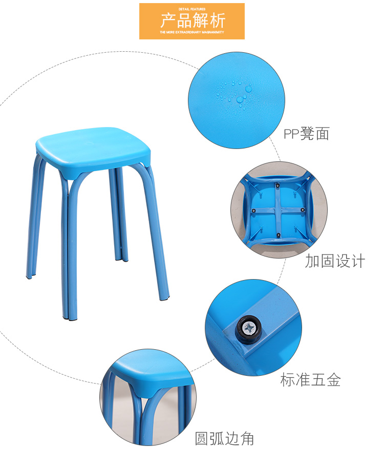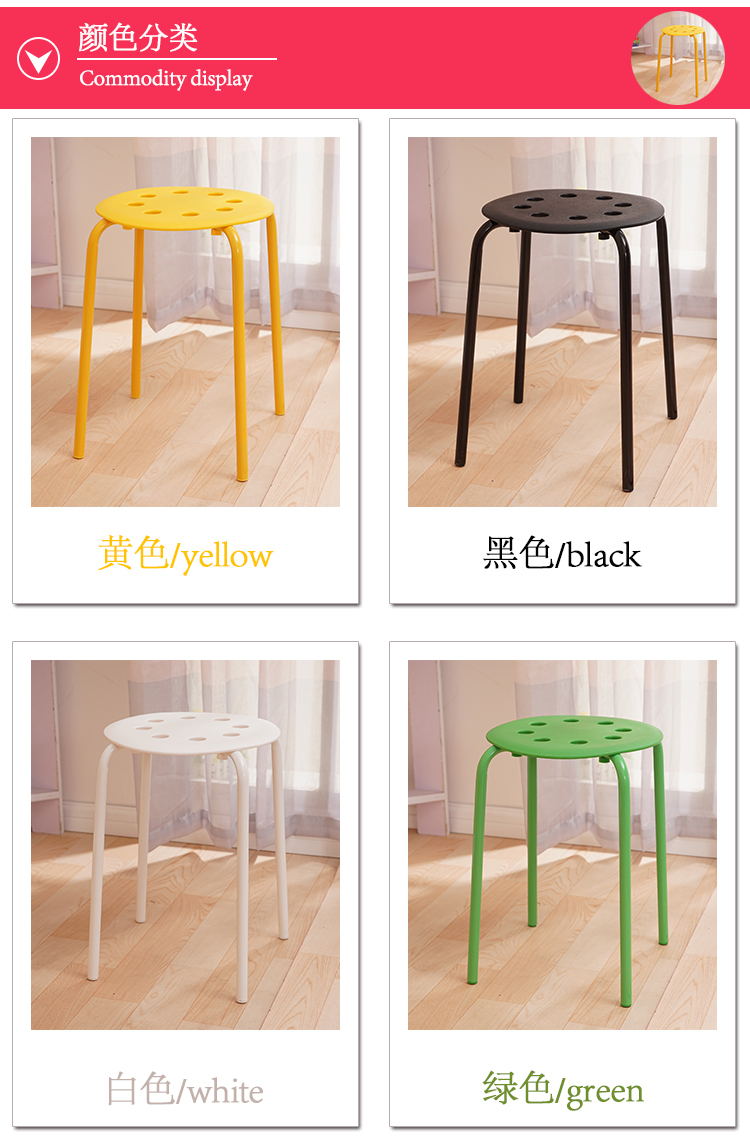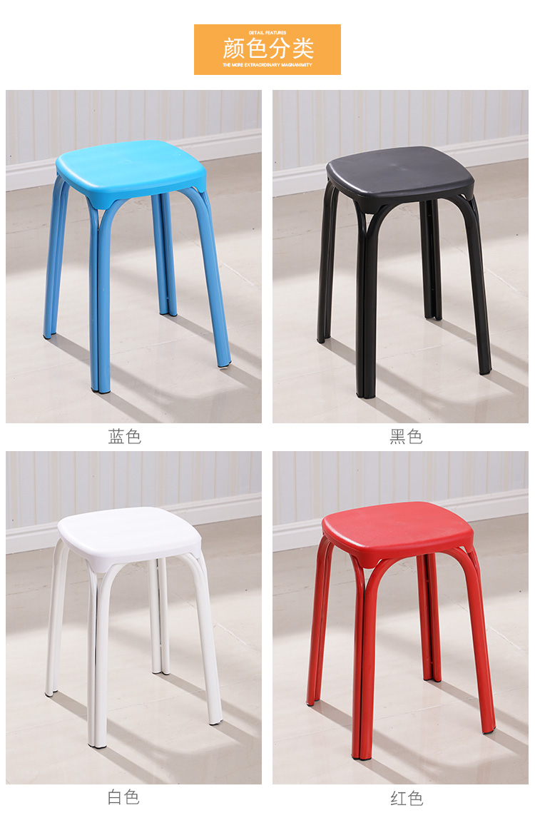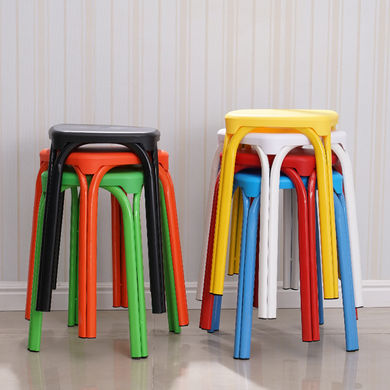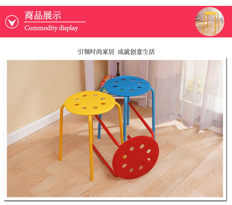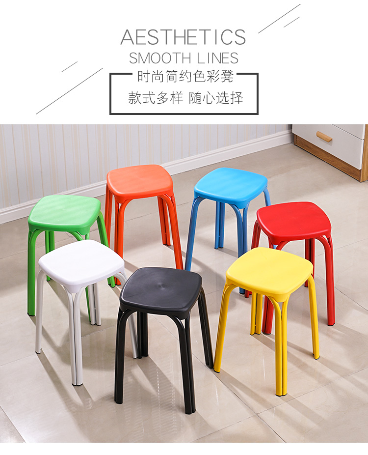 八孔凳高凳时尚圆凳 加厚成人塑料凳子餐桌凳 家用折叠凳彩色方凳