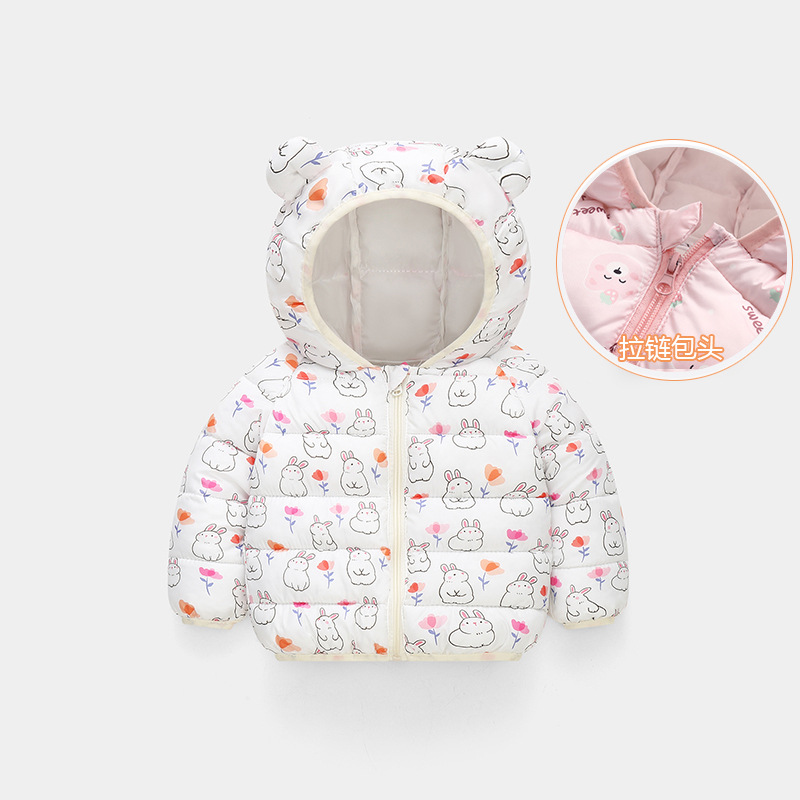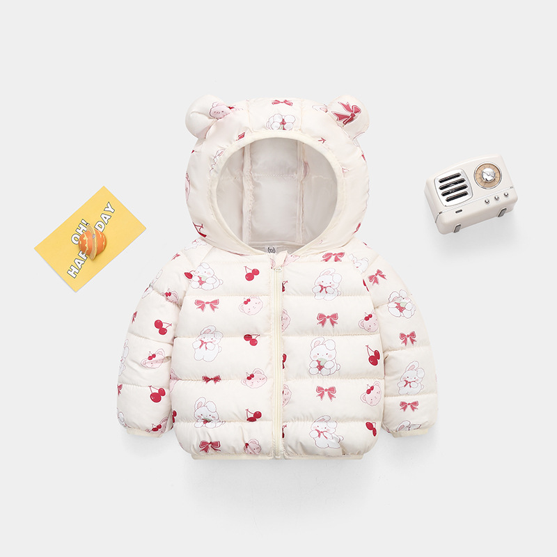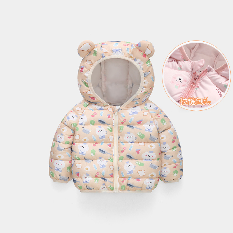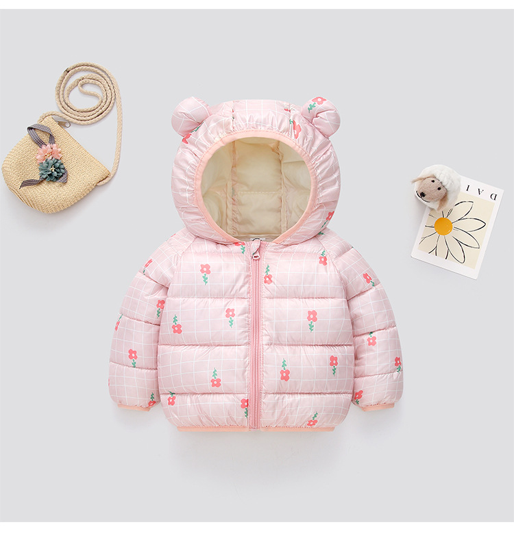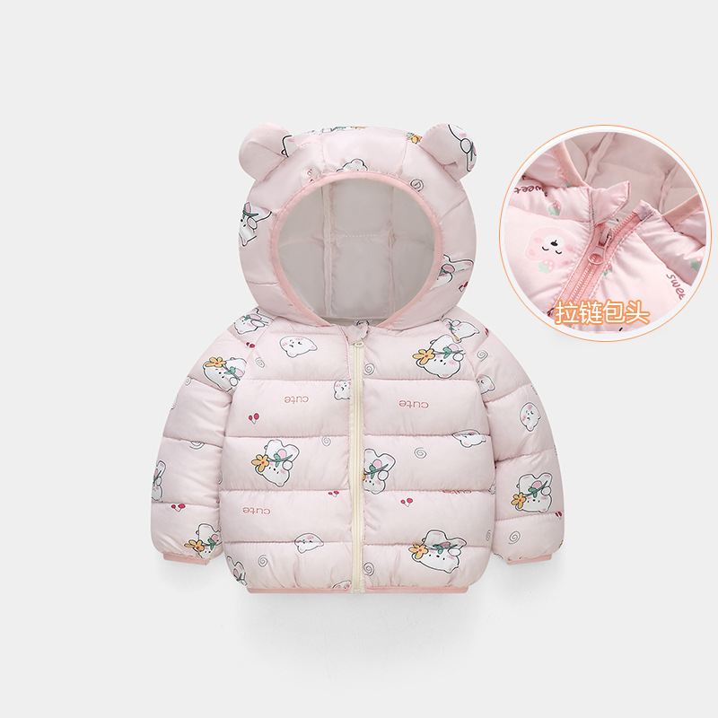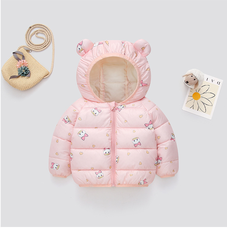 秋冬新品儿童轻薄款羽绒棉服男童女童保暖外套宝宝耳朵款厂家直销