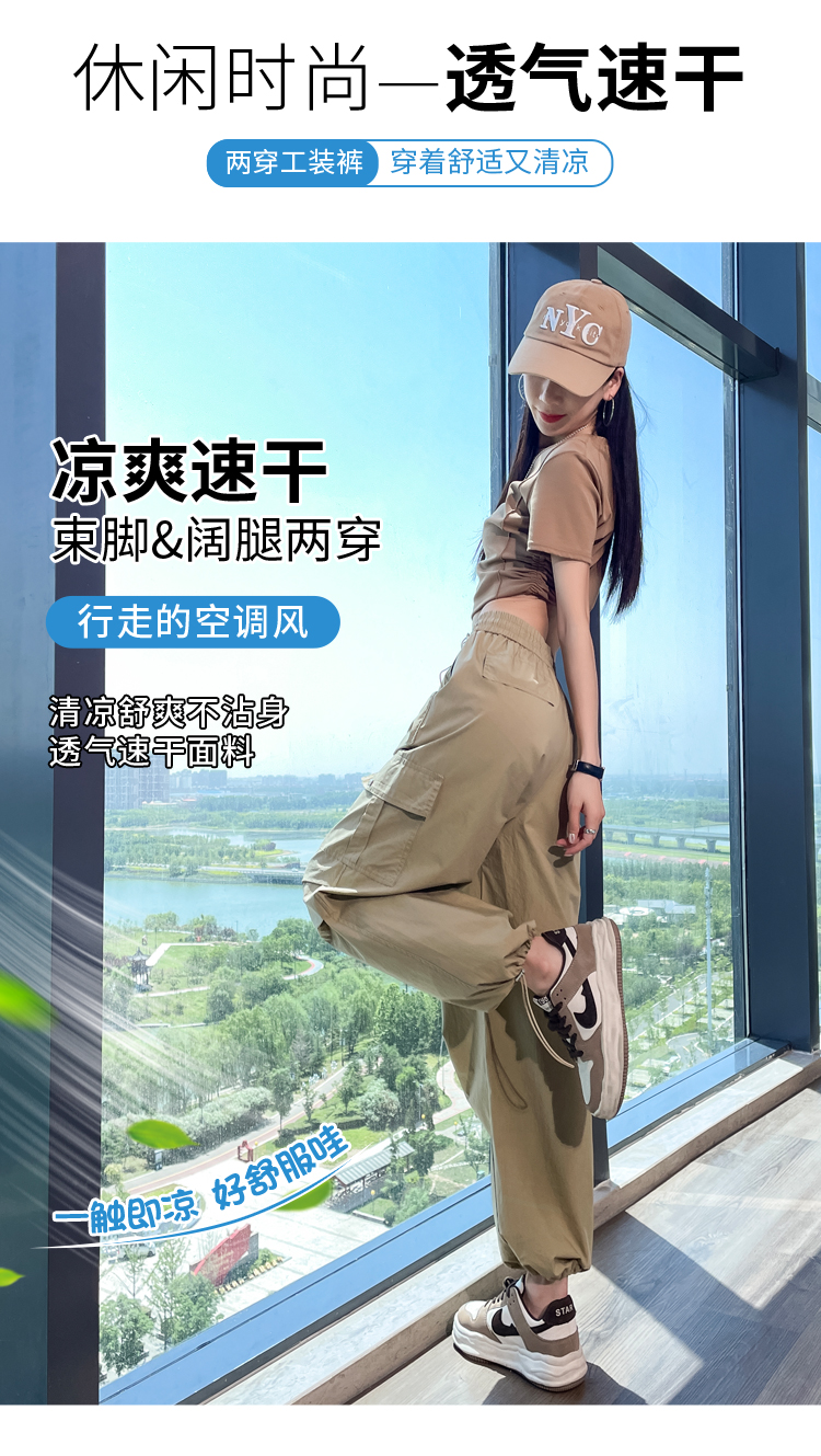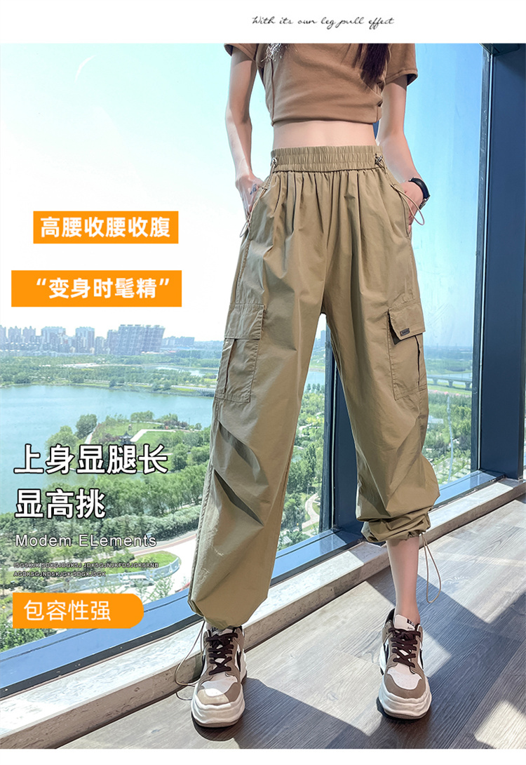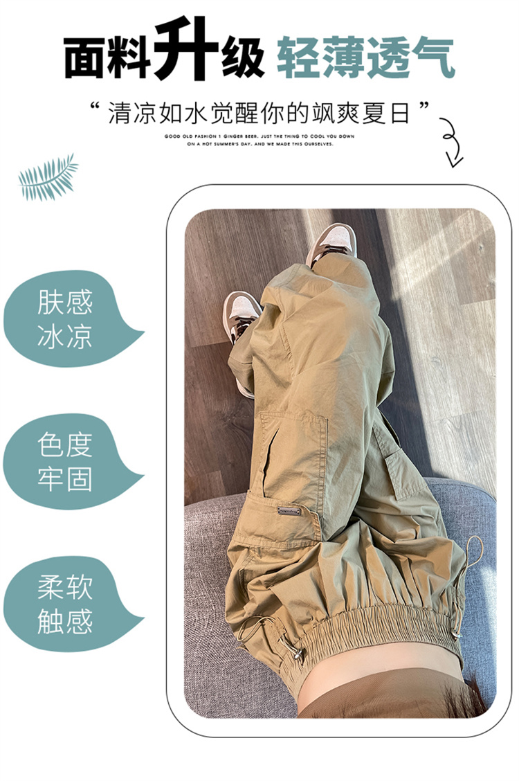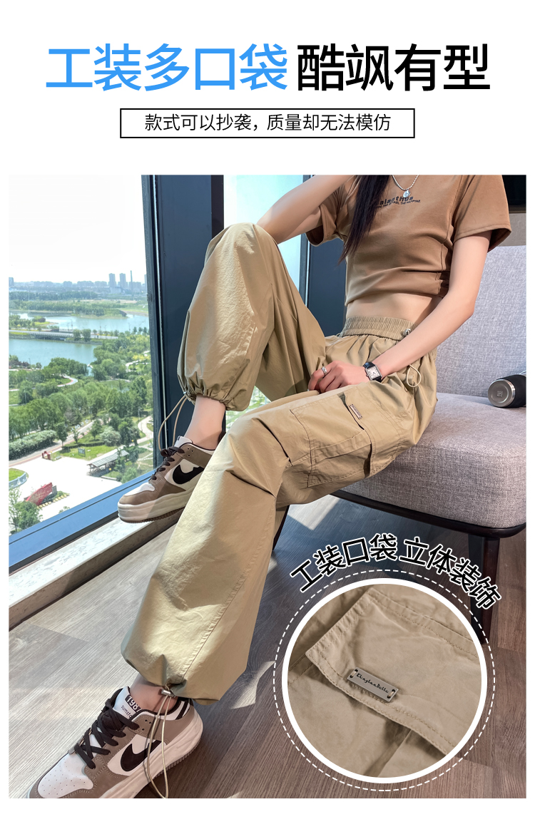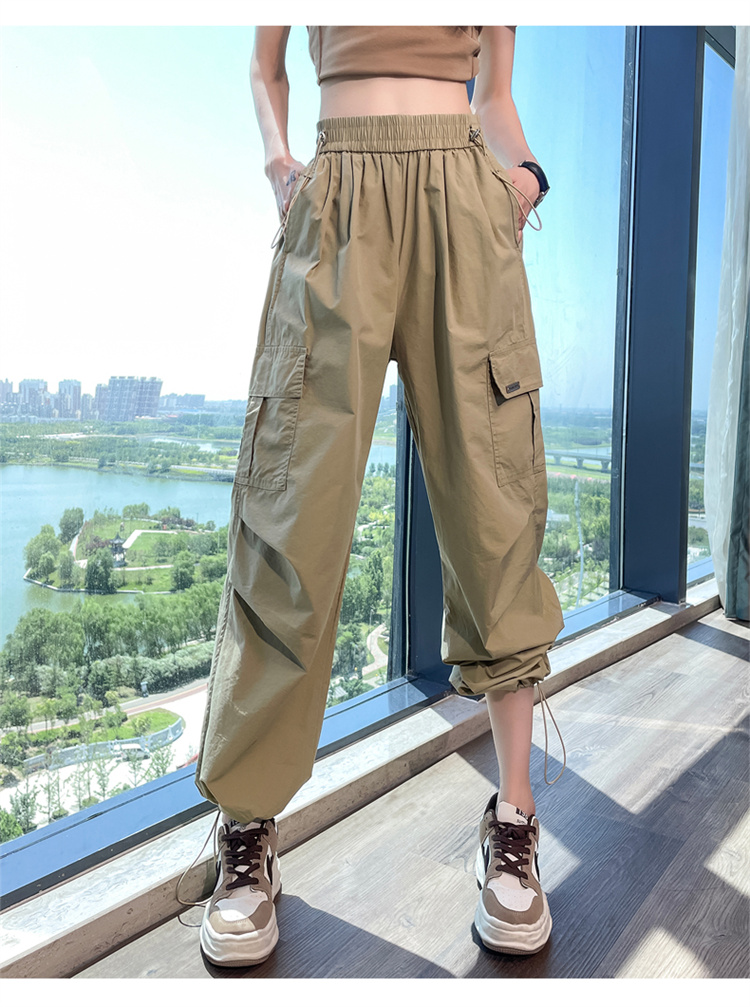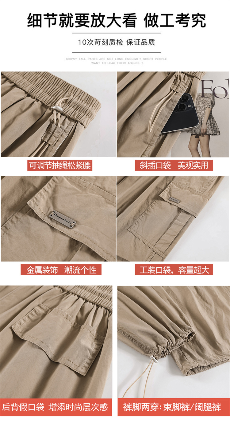 卡其色速乾工裝褲女夏季美式透氣防曬束腳哈倫褲冰絲九分運動褲潮
