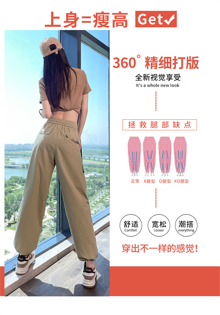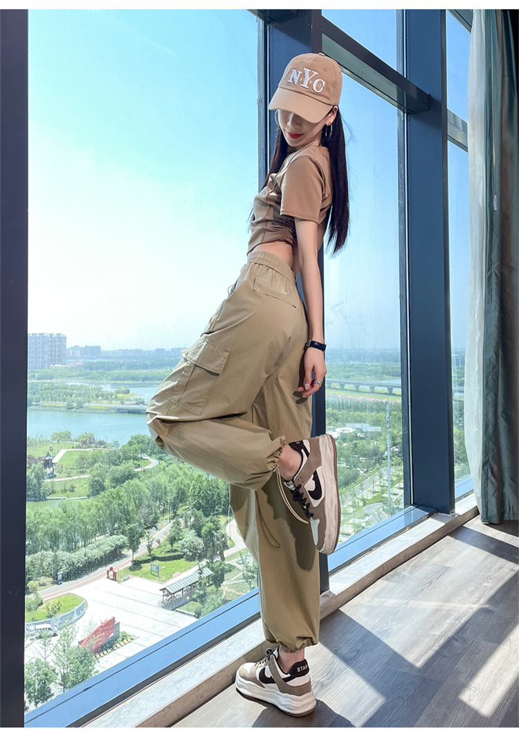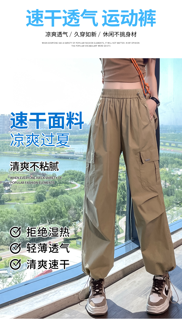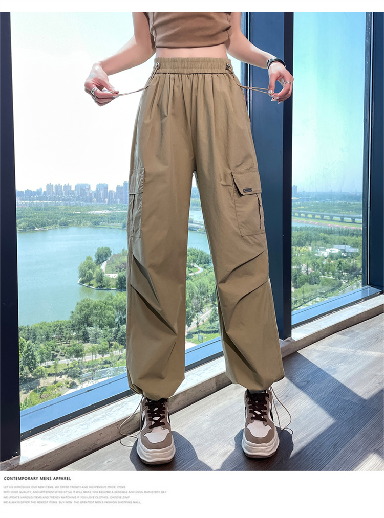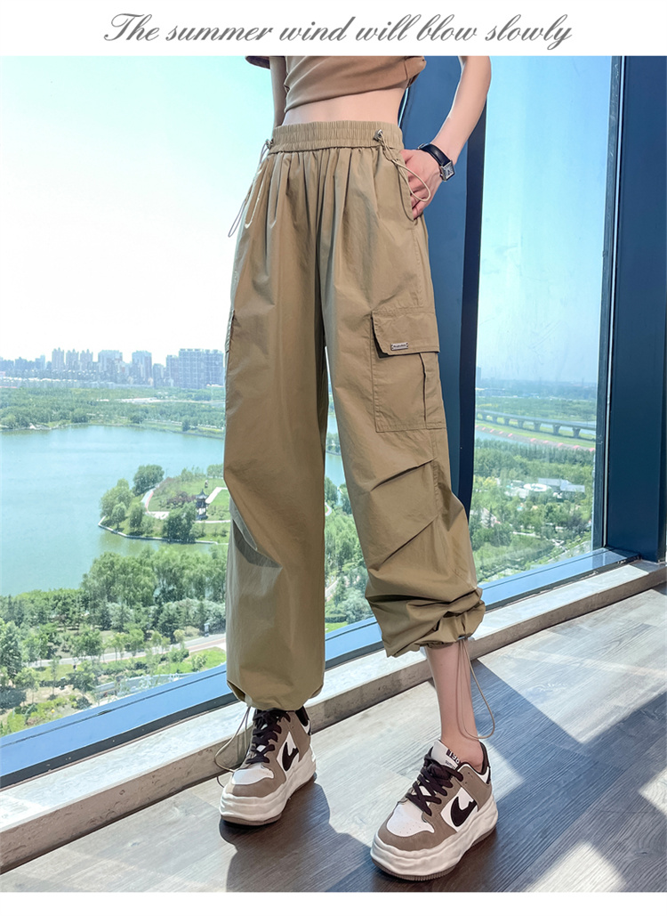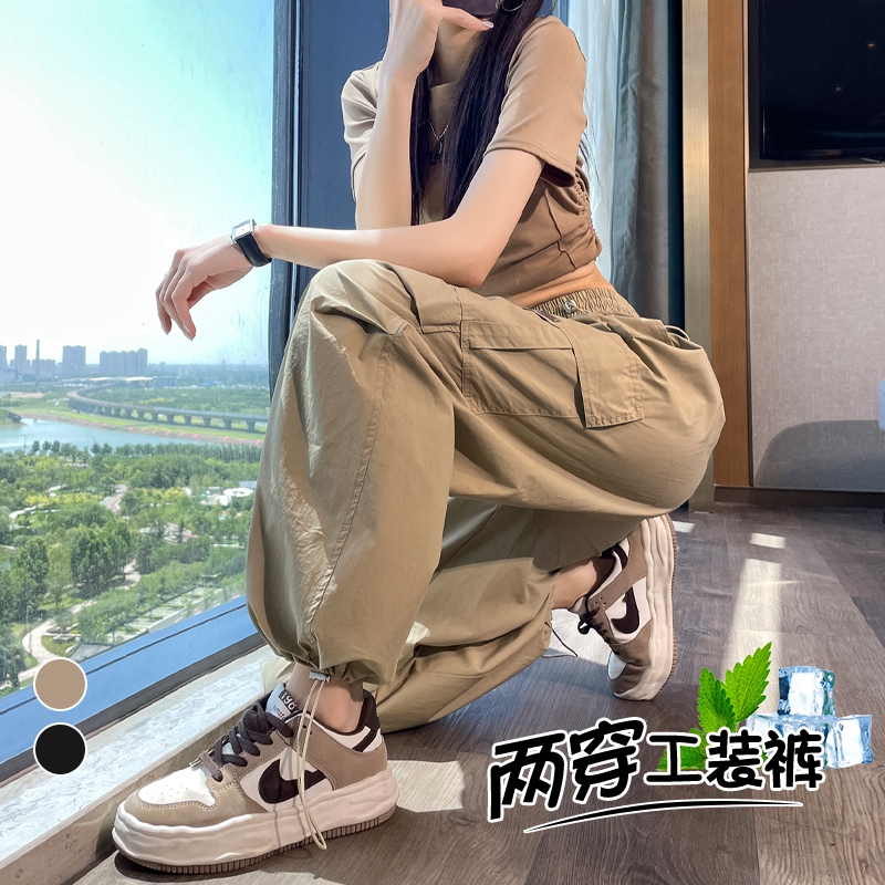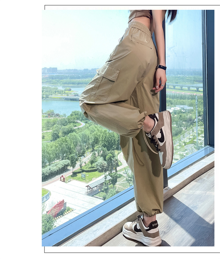 卡其色速乾工裝褲女夏季美式透氣防曬束腳哈倫褲冰絲九分運動褲潮
