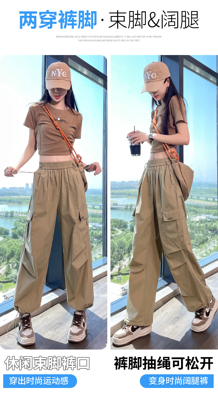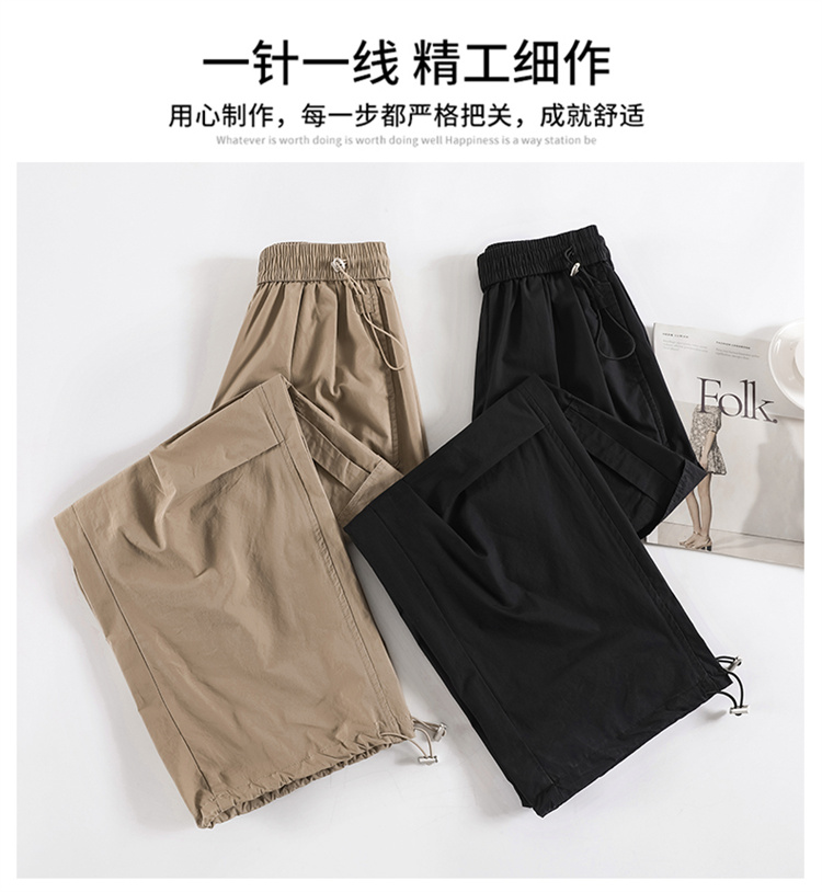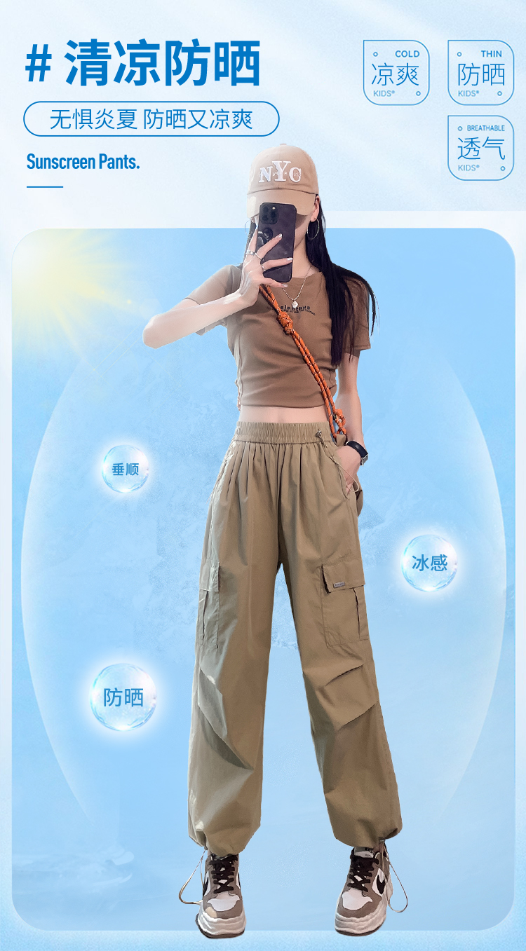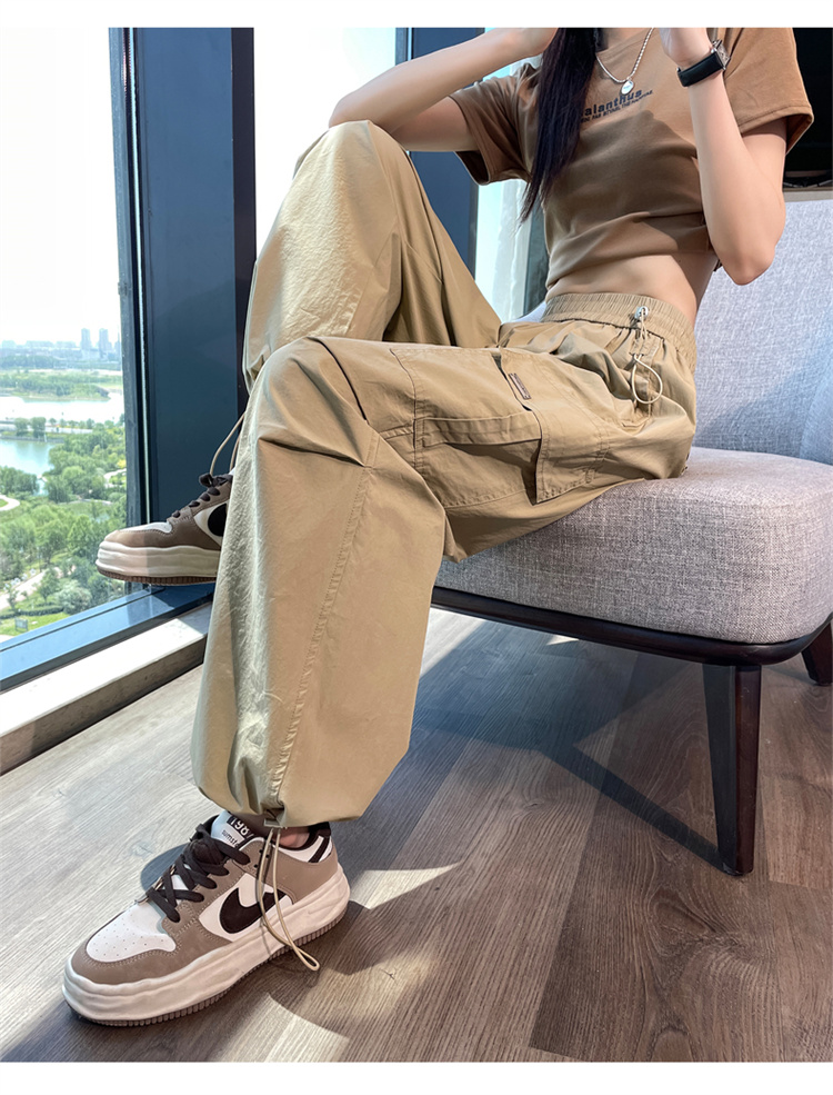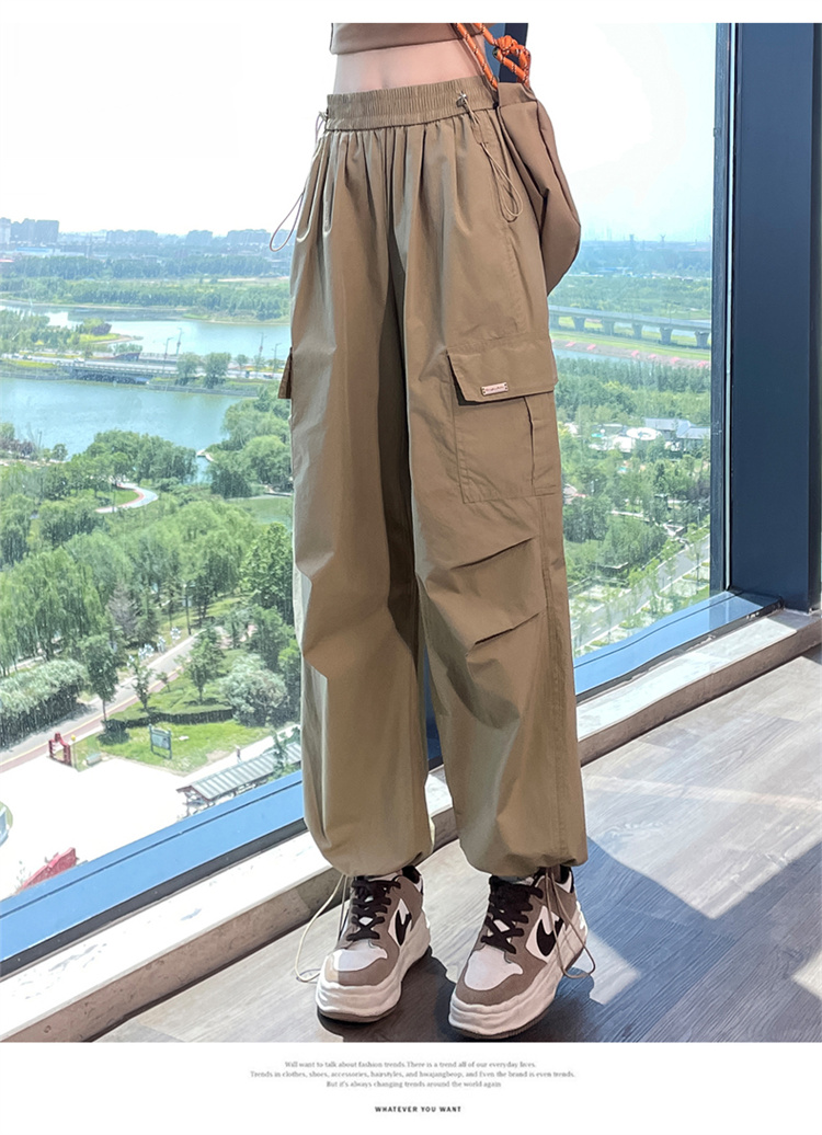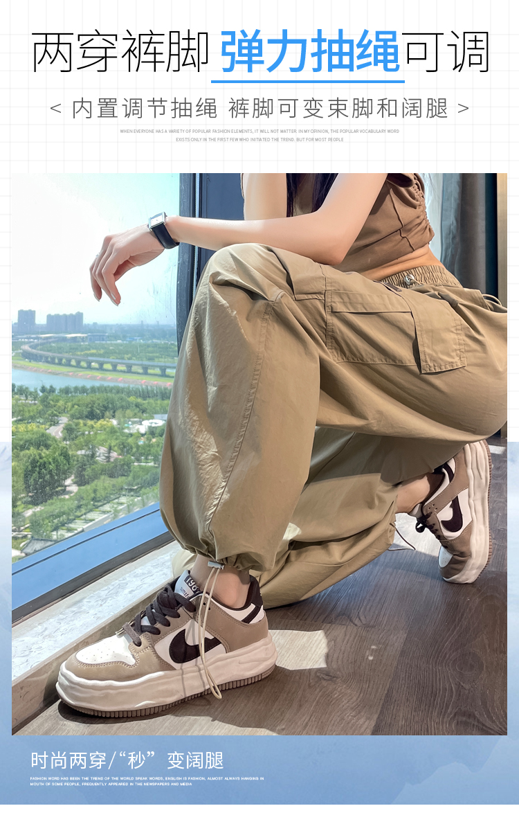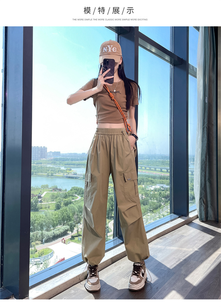 卡其色速乾工裝褲女夏季美式透氣防曬束腳哈倫褲冰絲九分運動褲潮