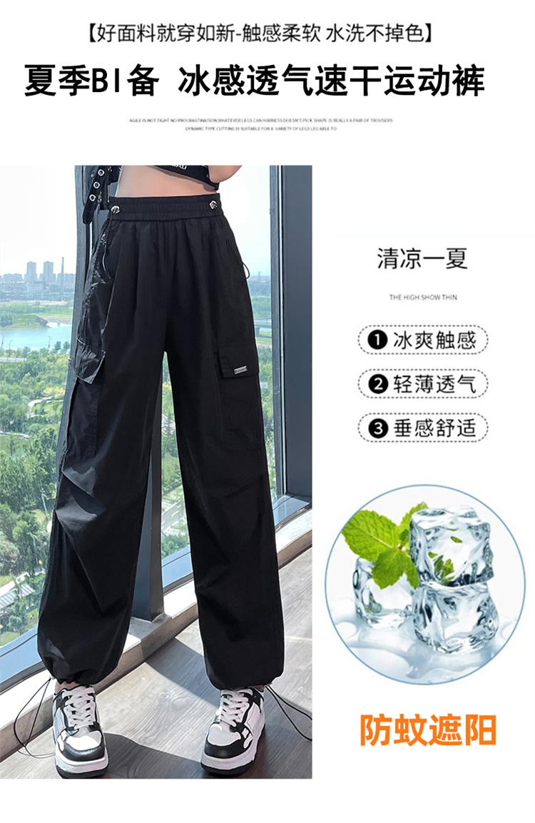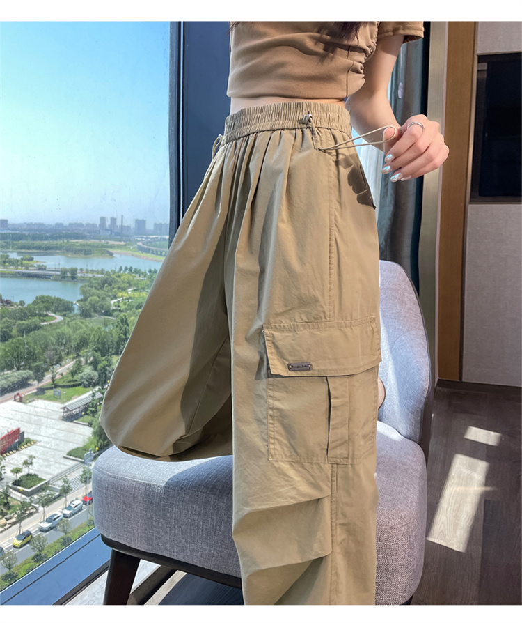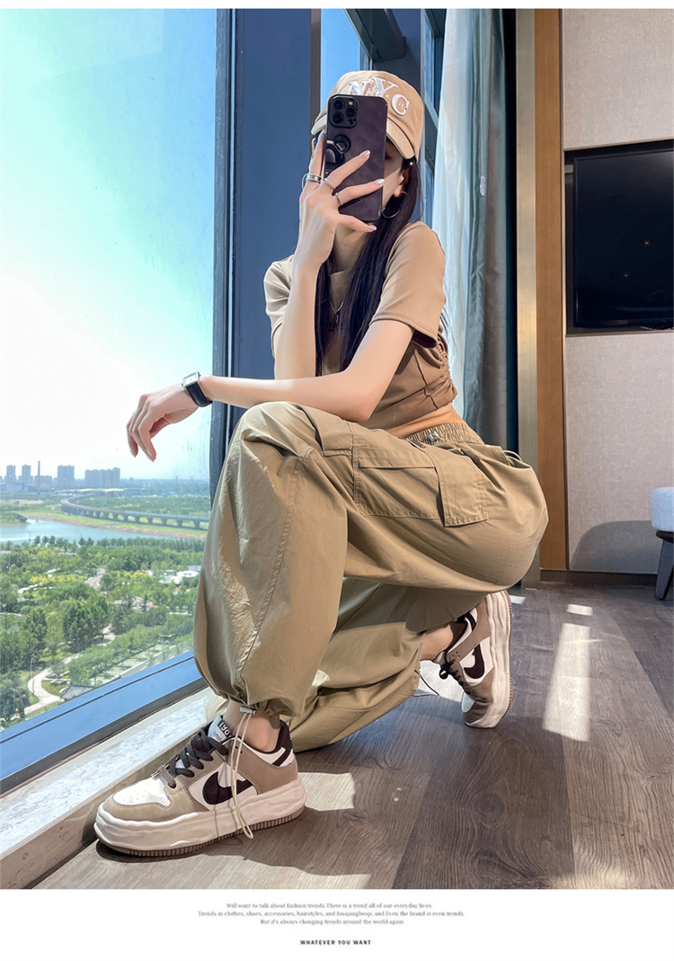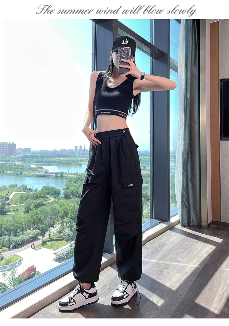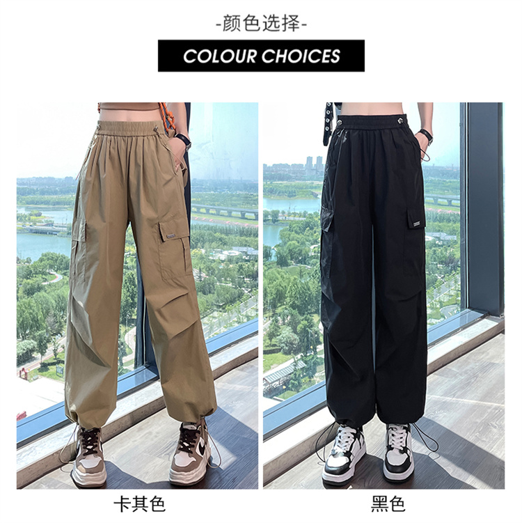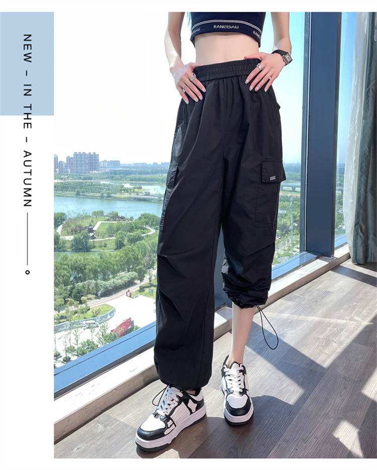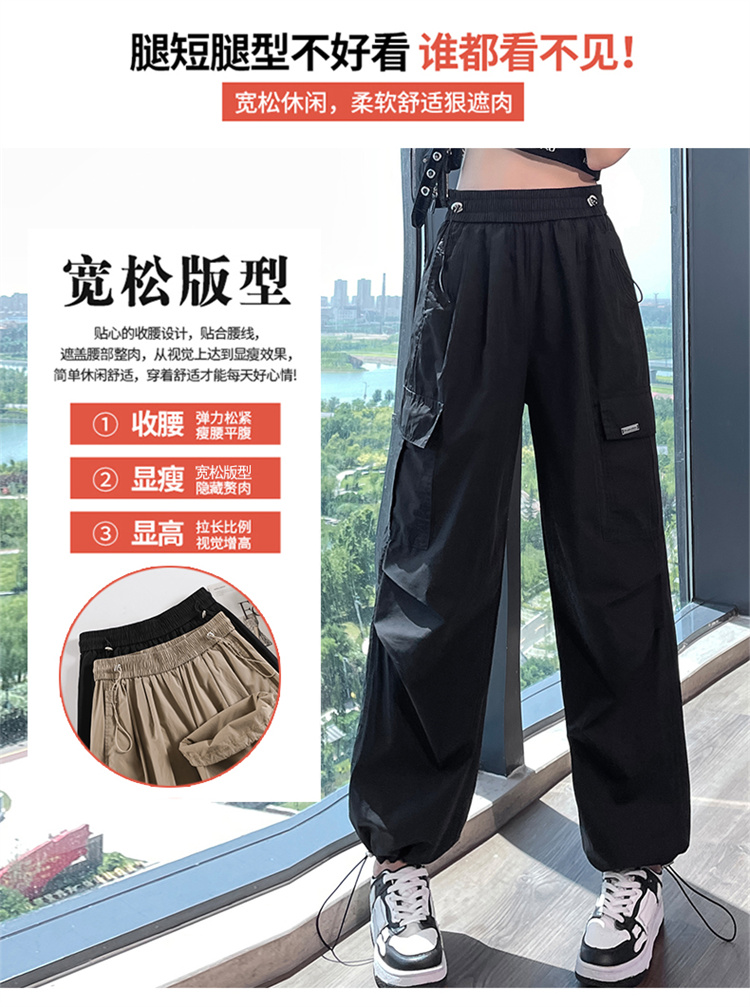 卡其色速乾工裝褲女夏季美式透氣防曬束腳哈倫褲冰絲九分運動褲潮
