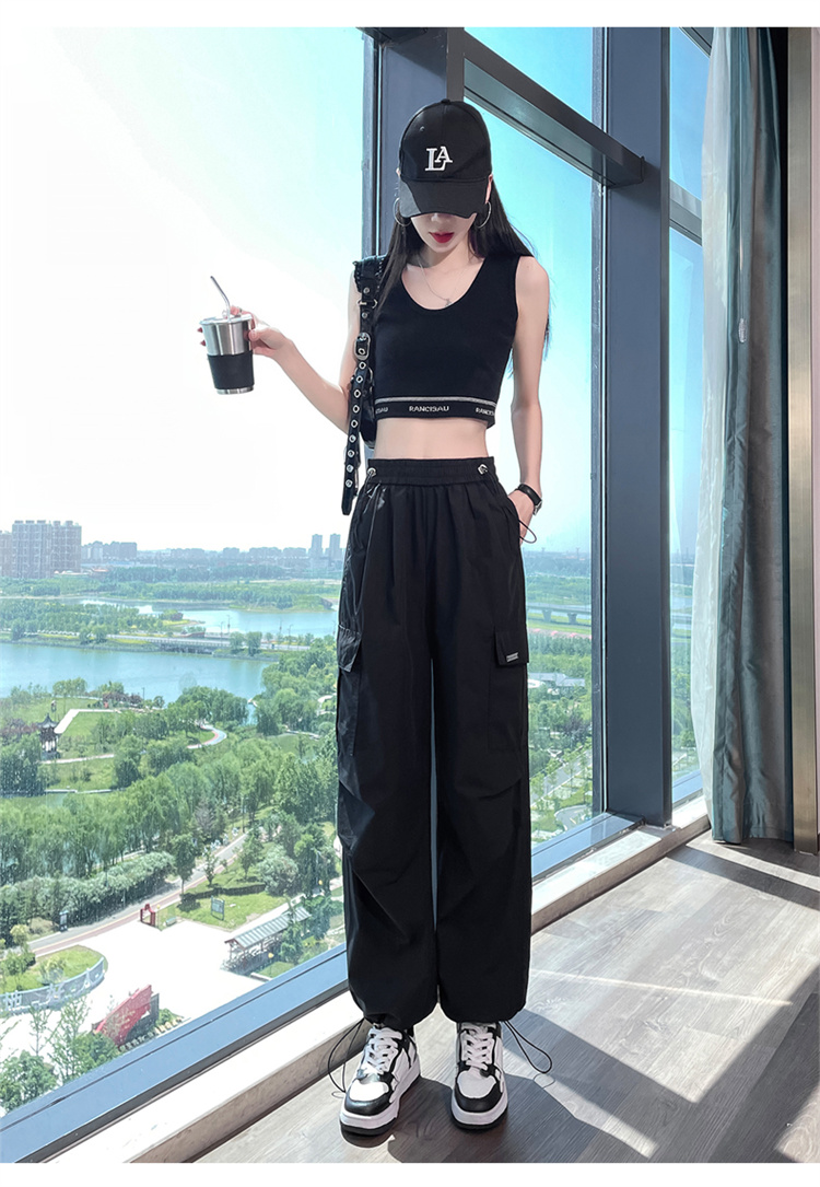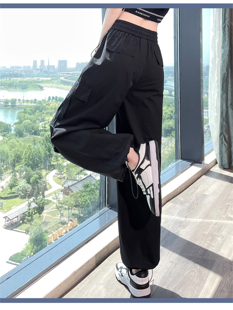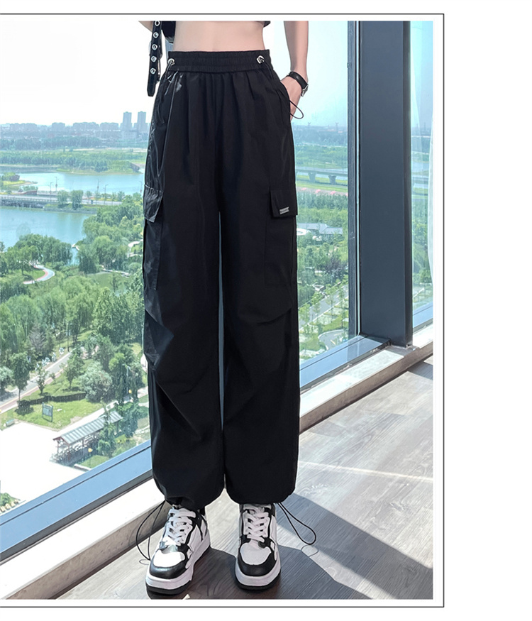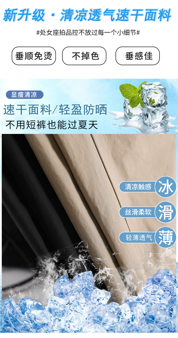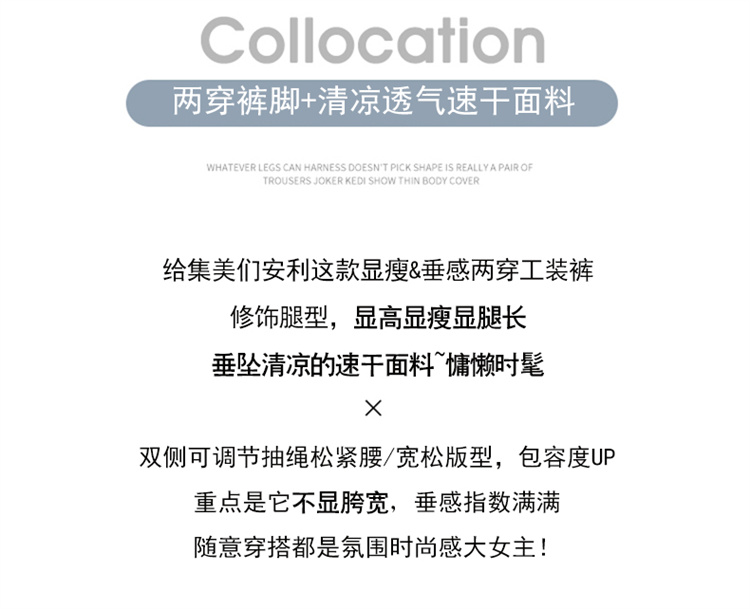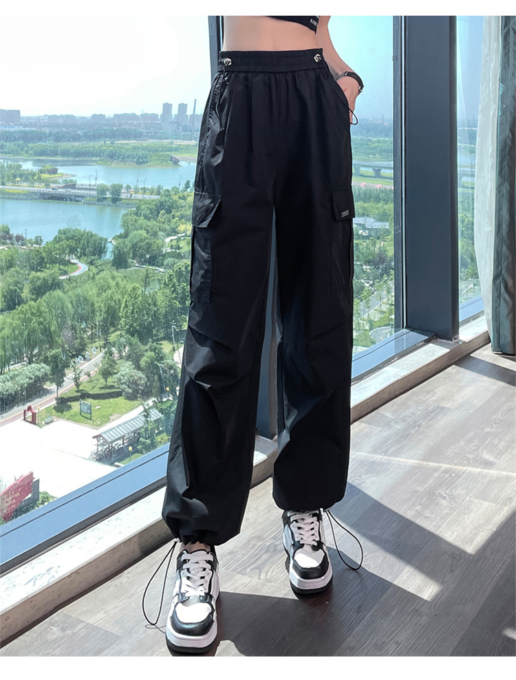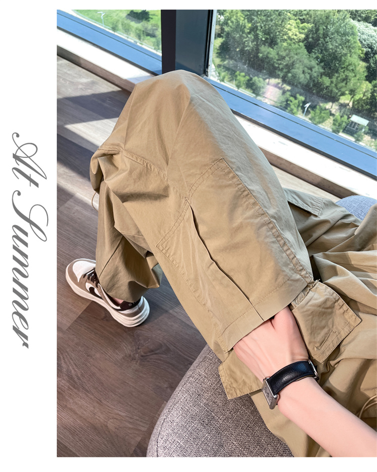 卡其色速乾工裝褲女夏季美式透氣防曬束腳哈倫褲冰絲九分運動褲潮