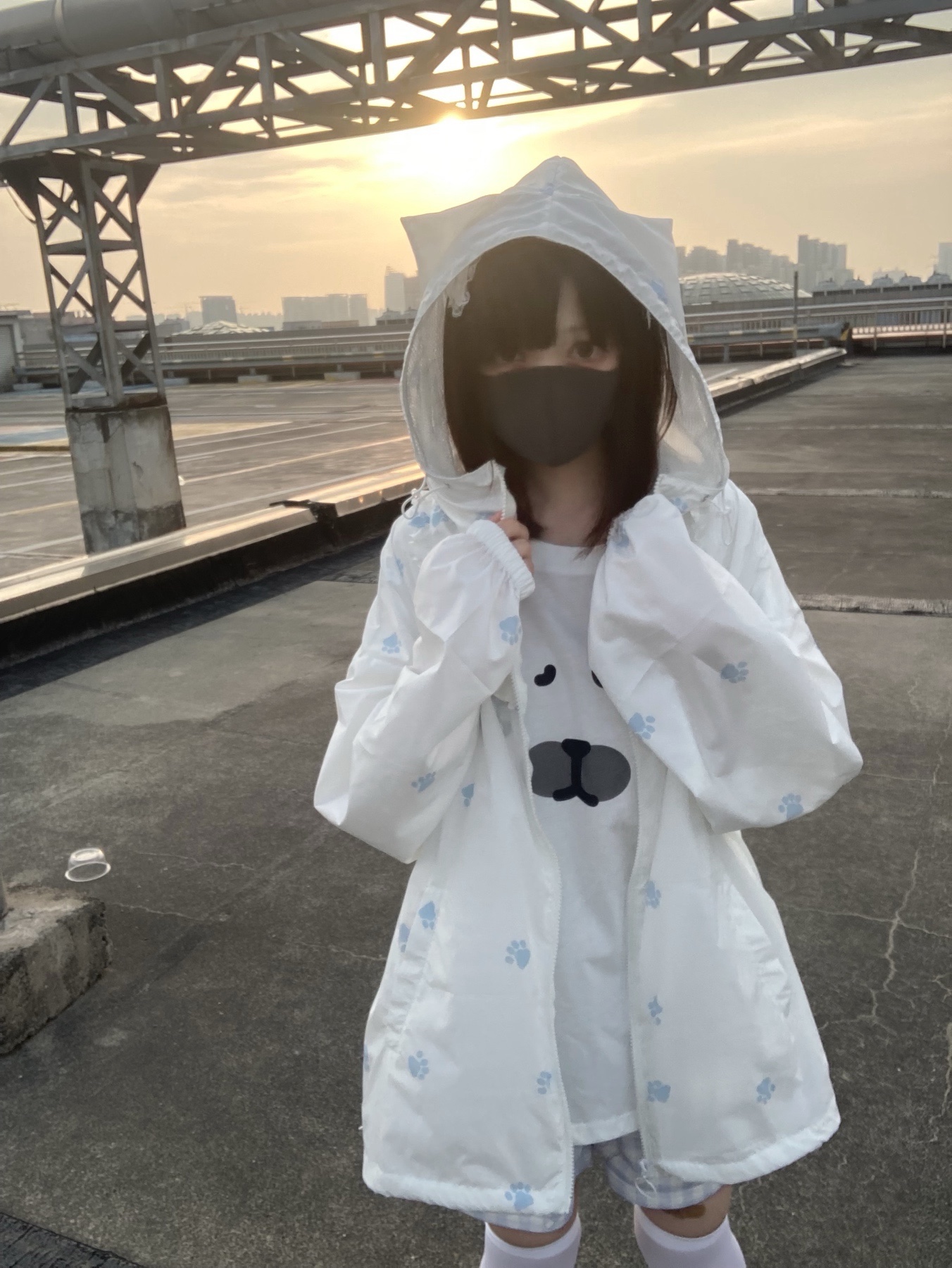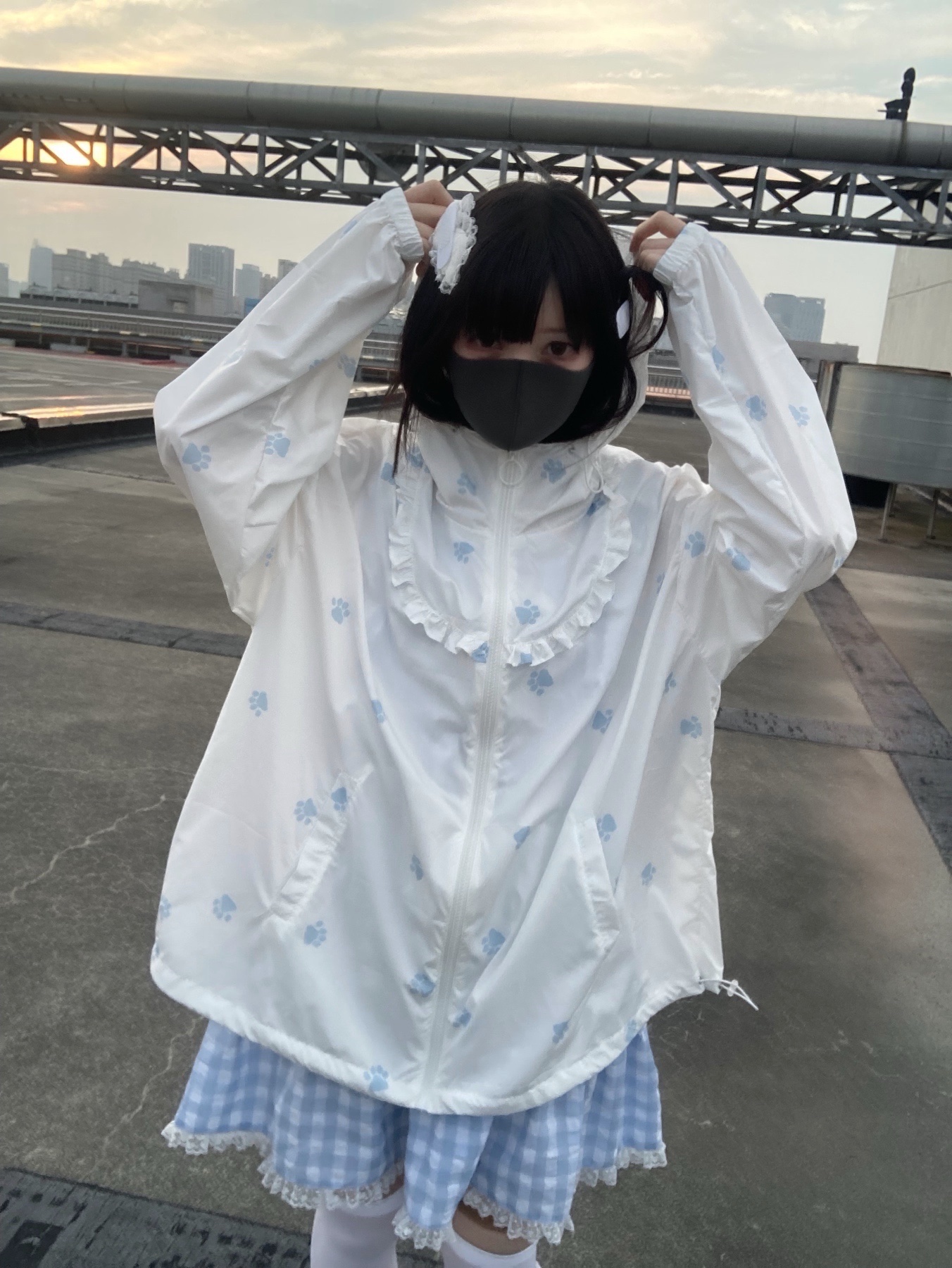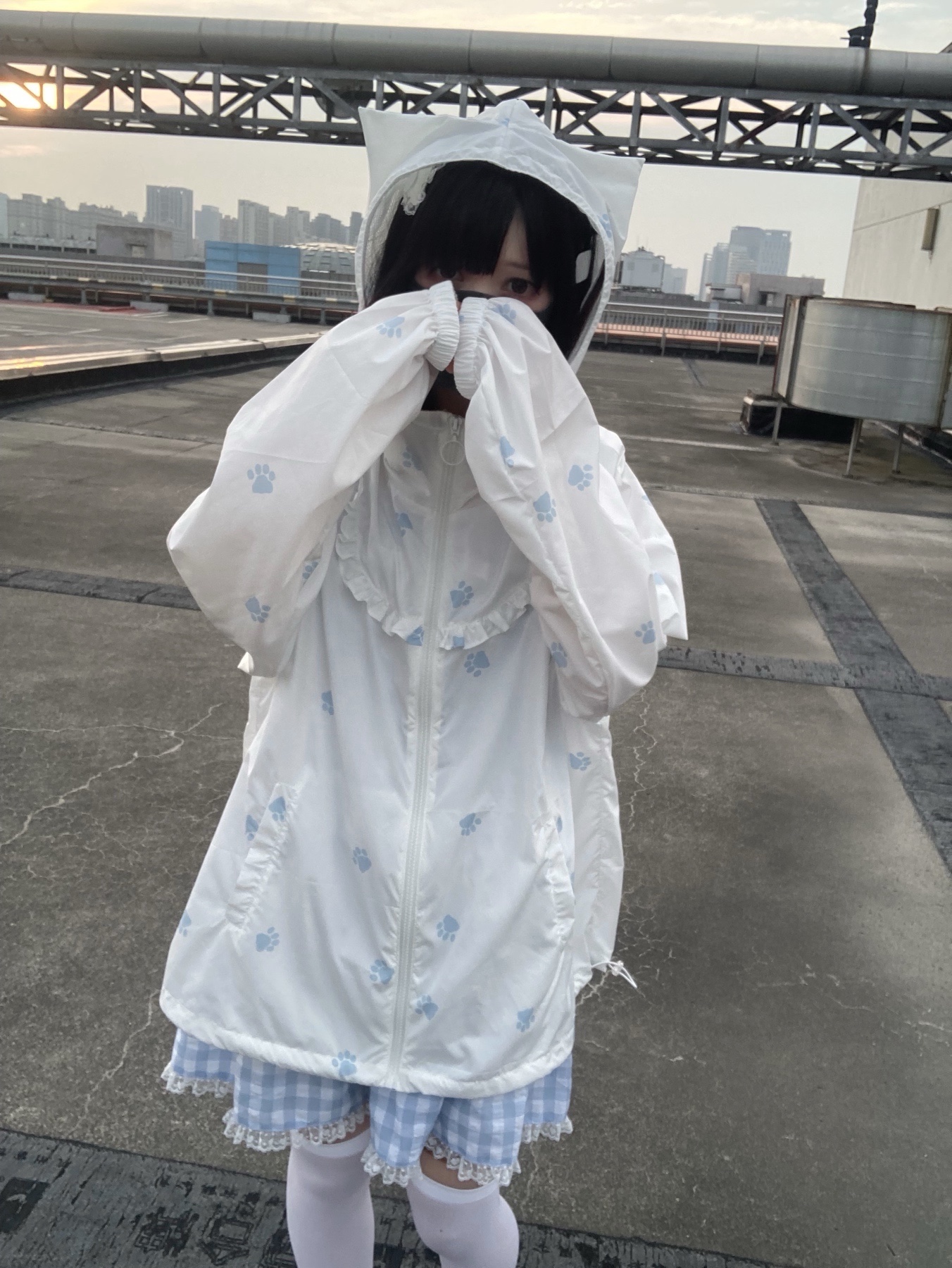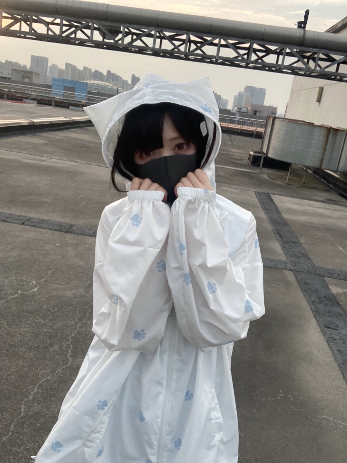 nekura你哭啦 原創 水色貓爪腳印 貓耳帽 upf50+透明系軟宅防曬衣
