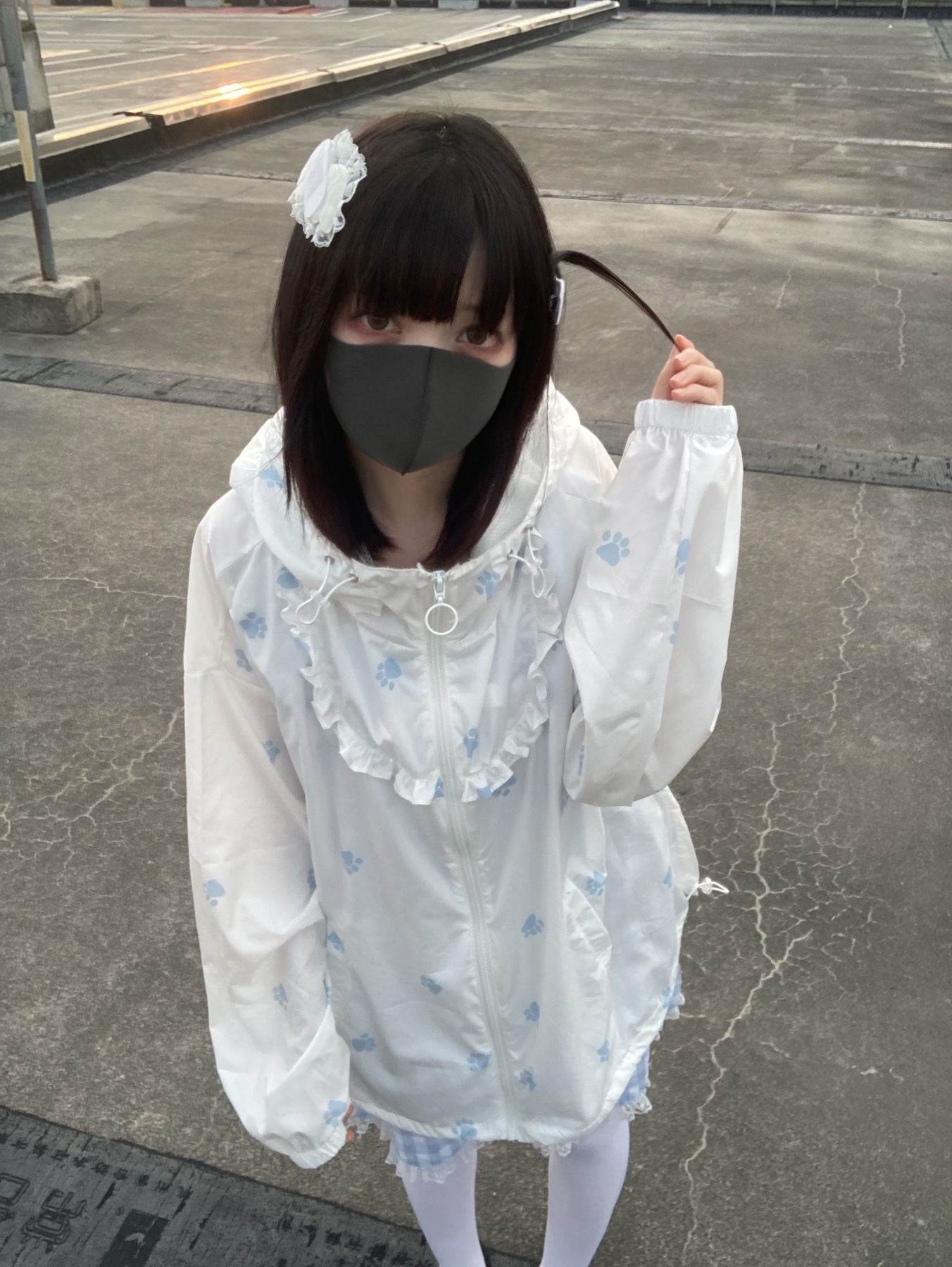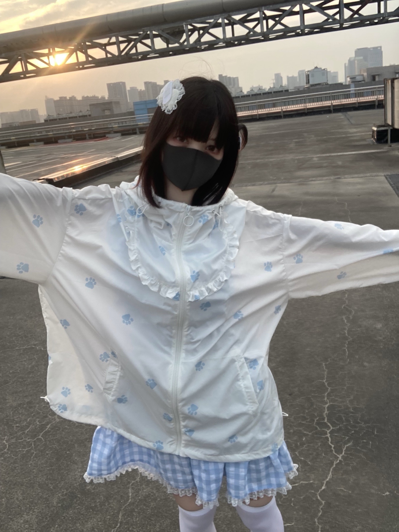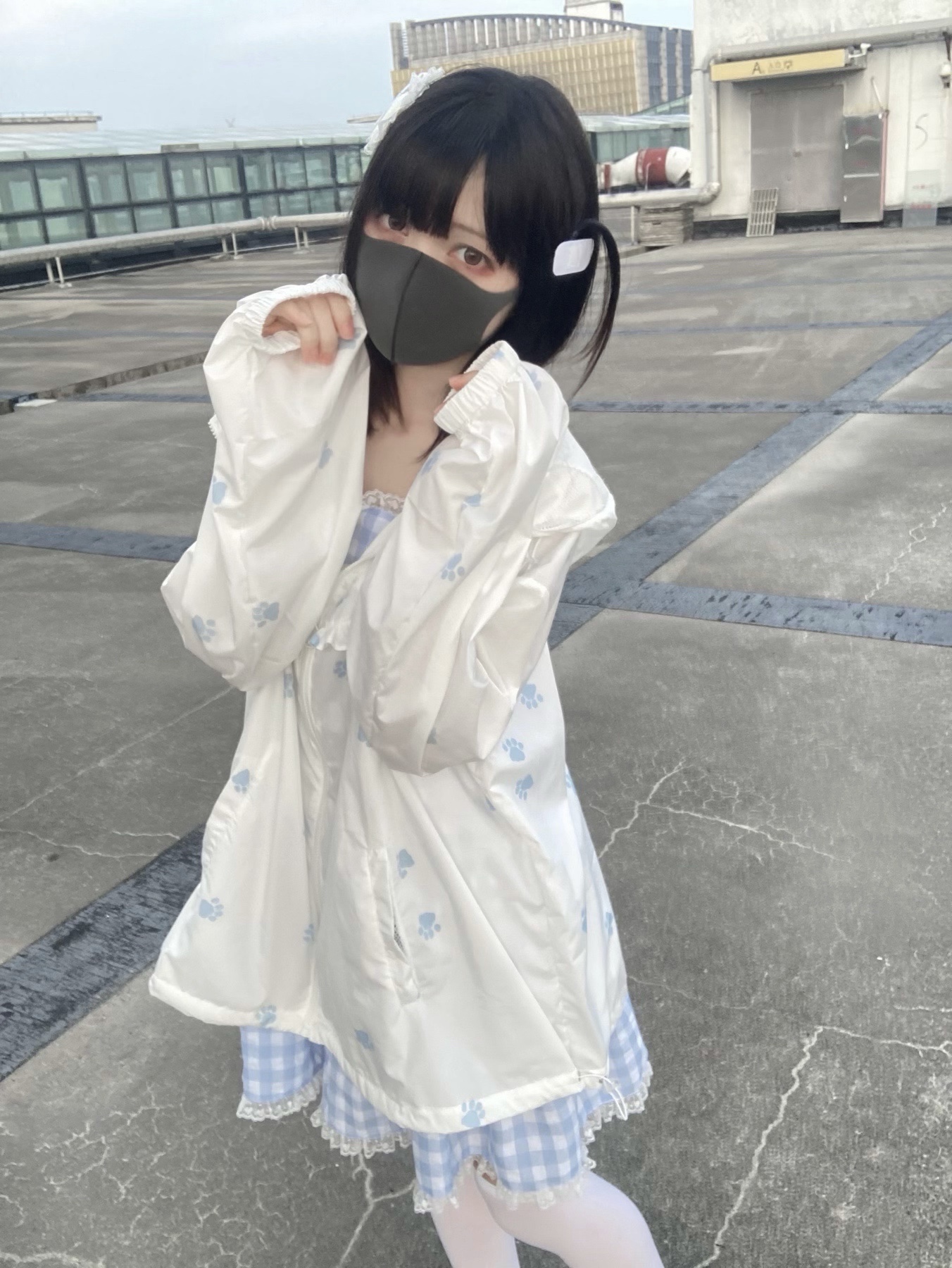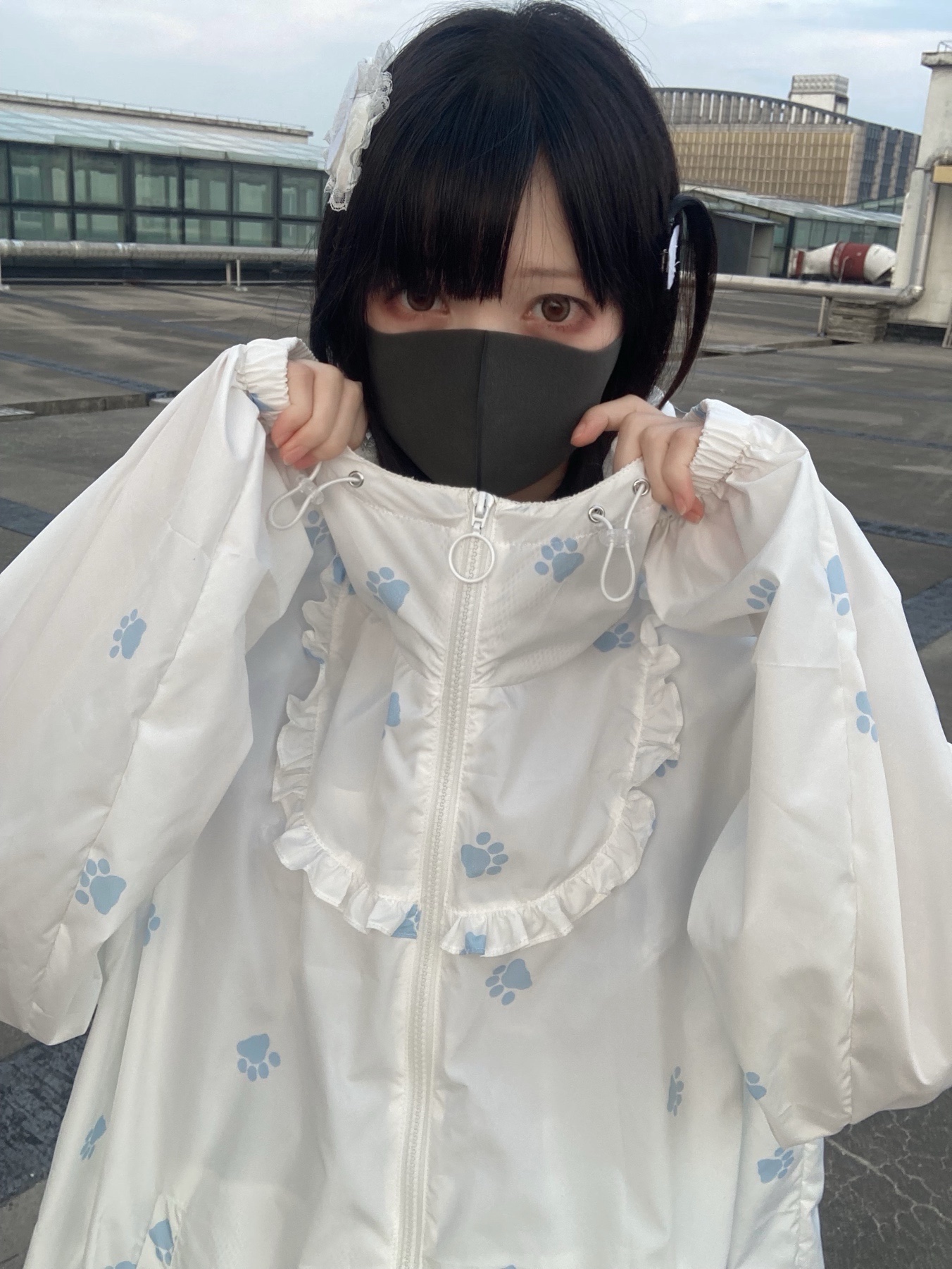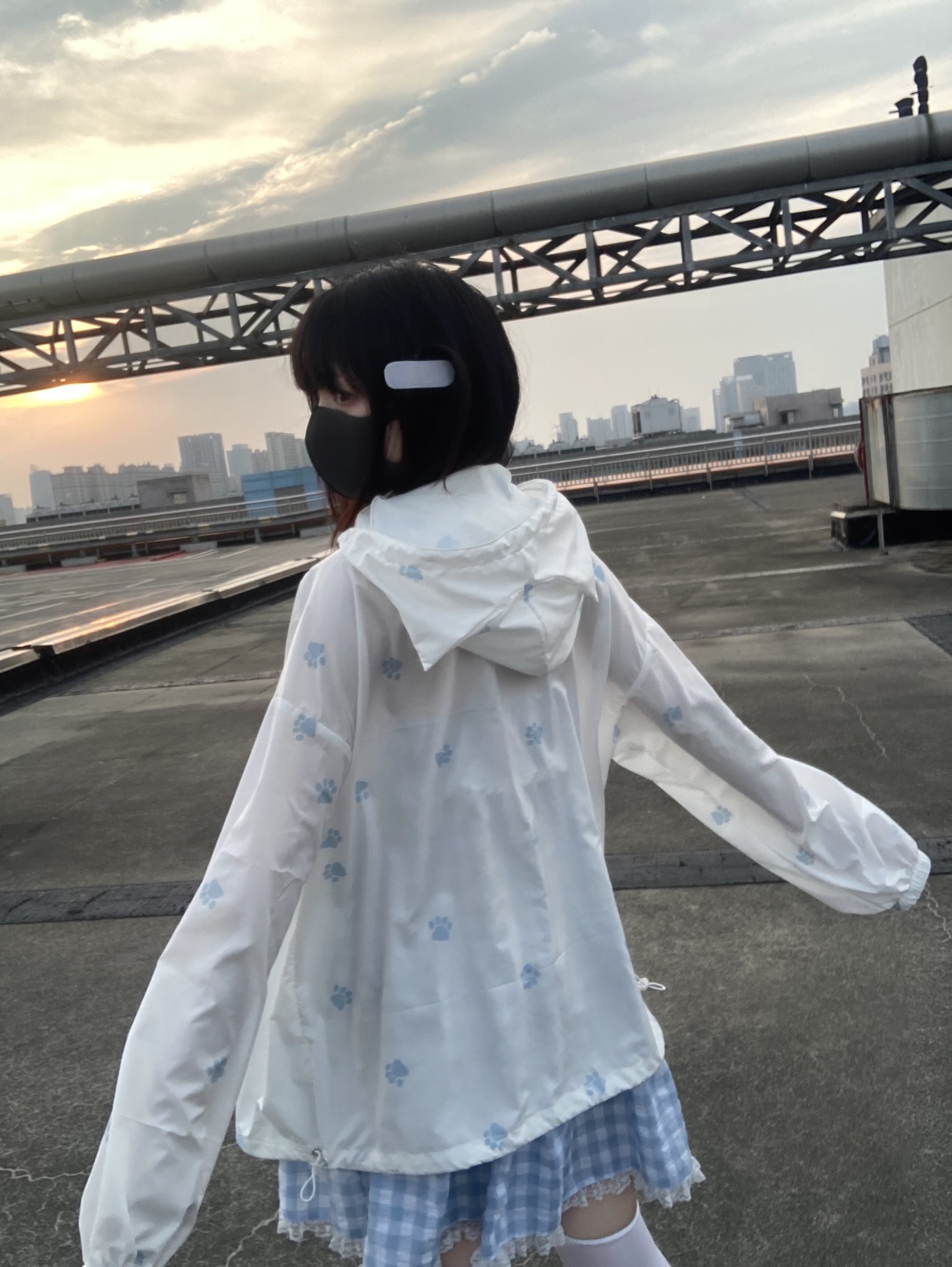 nekura你哭啦 原創 水色貓爪腳印 貓耳帽 upf50+透明系軟宅防曬衣