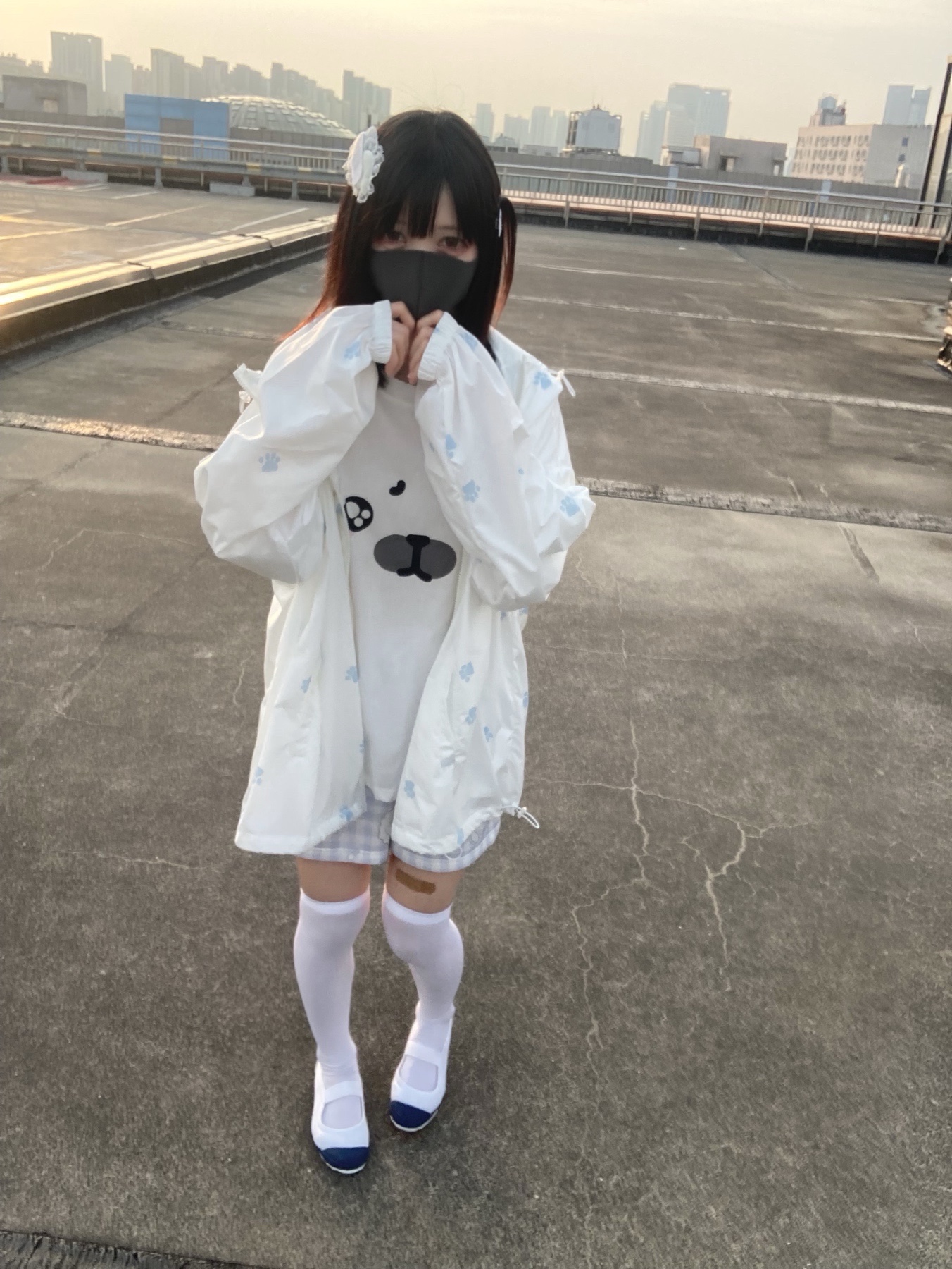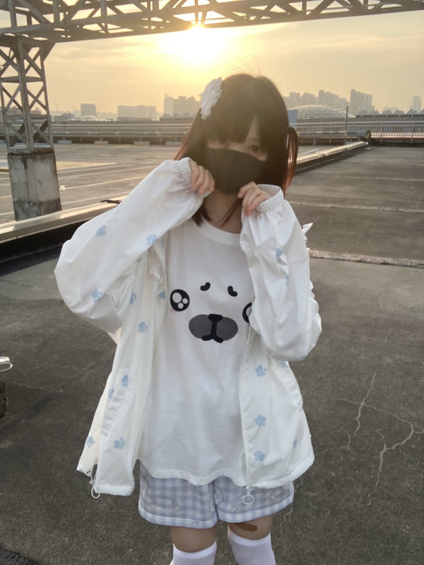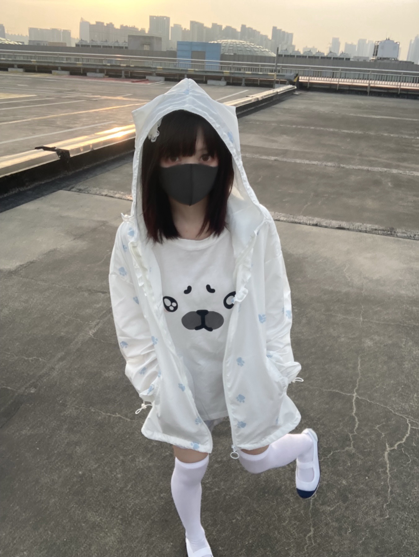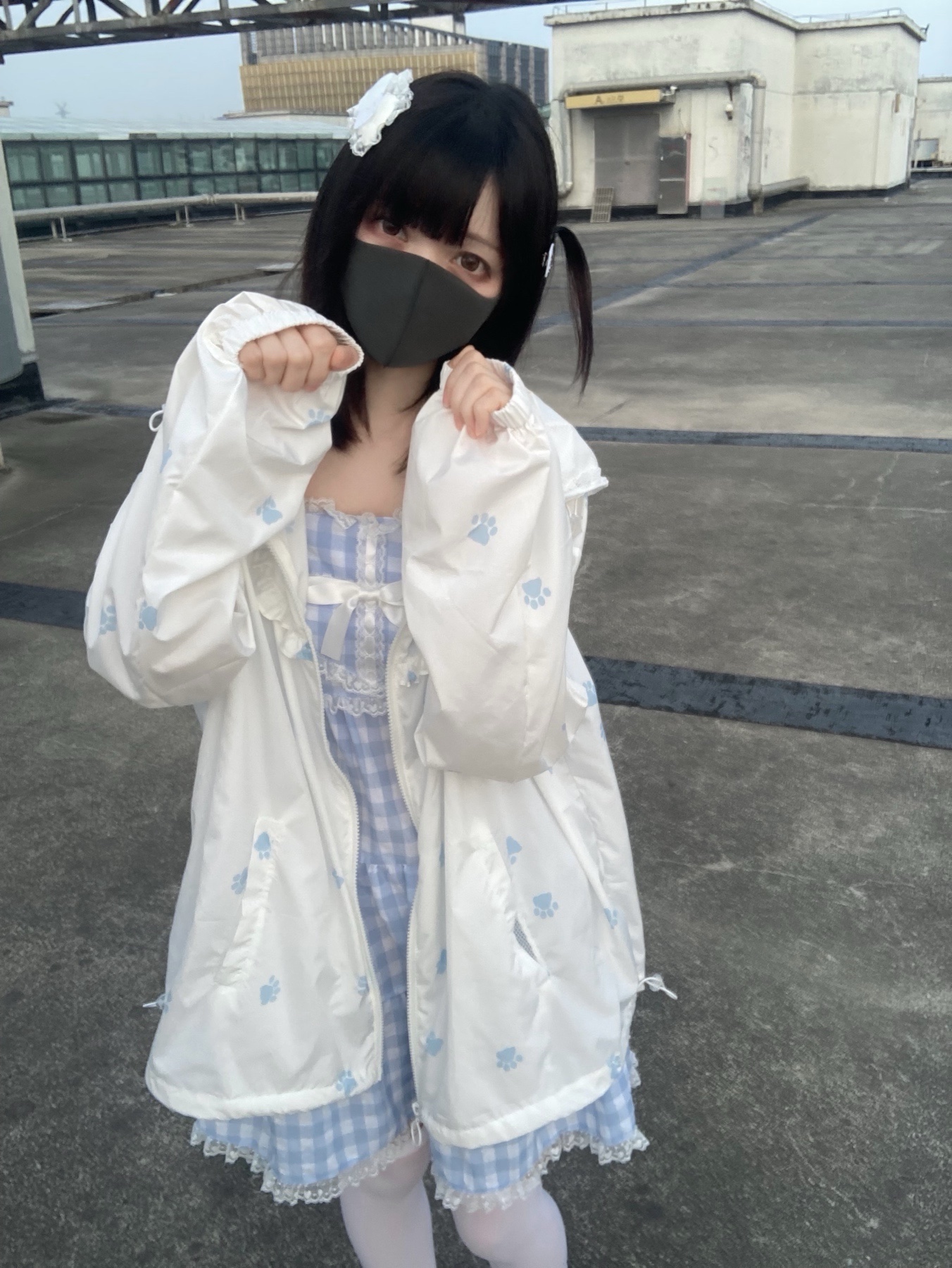 nekura你哭啦 原創 水色貓爪腳印 貓耳帽 upf50+透明系軟宅防曬衣