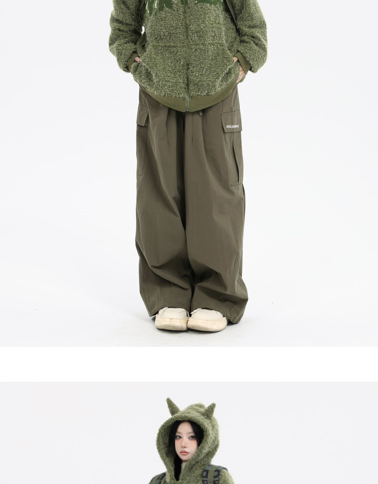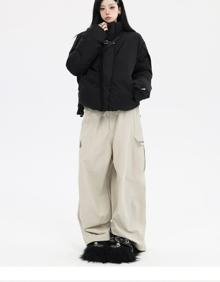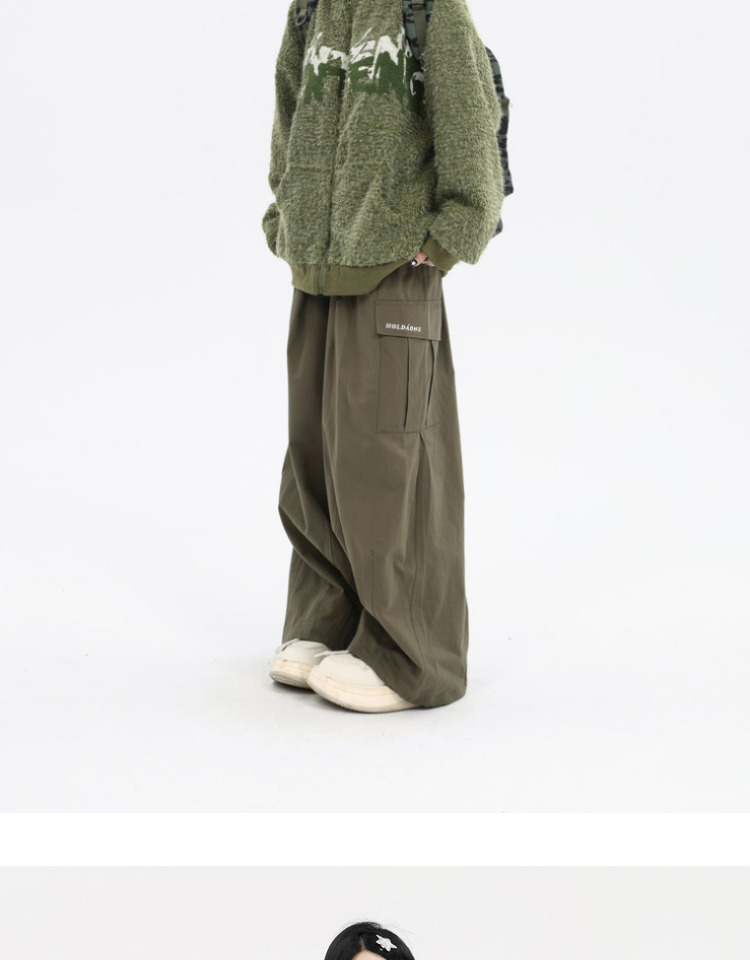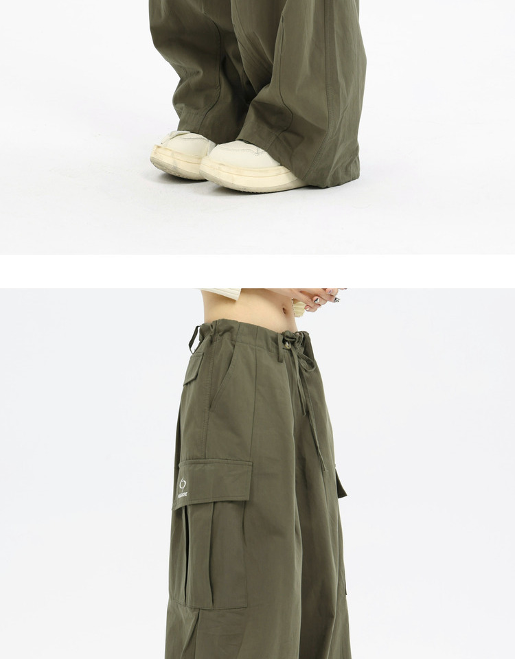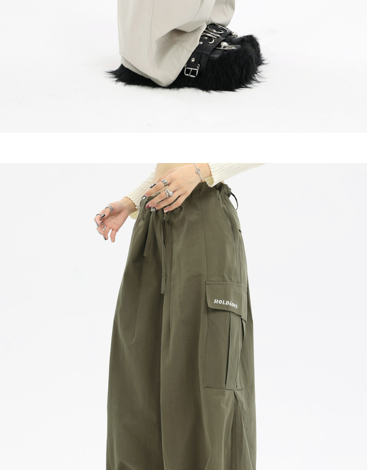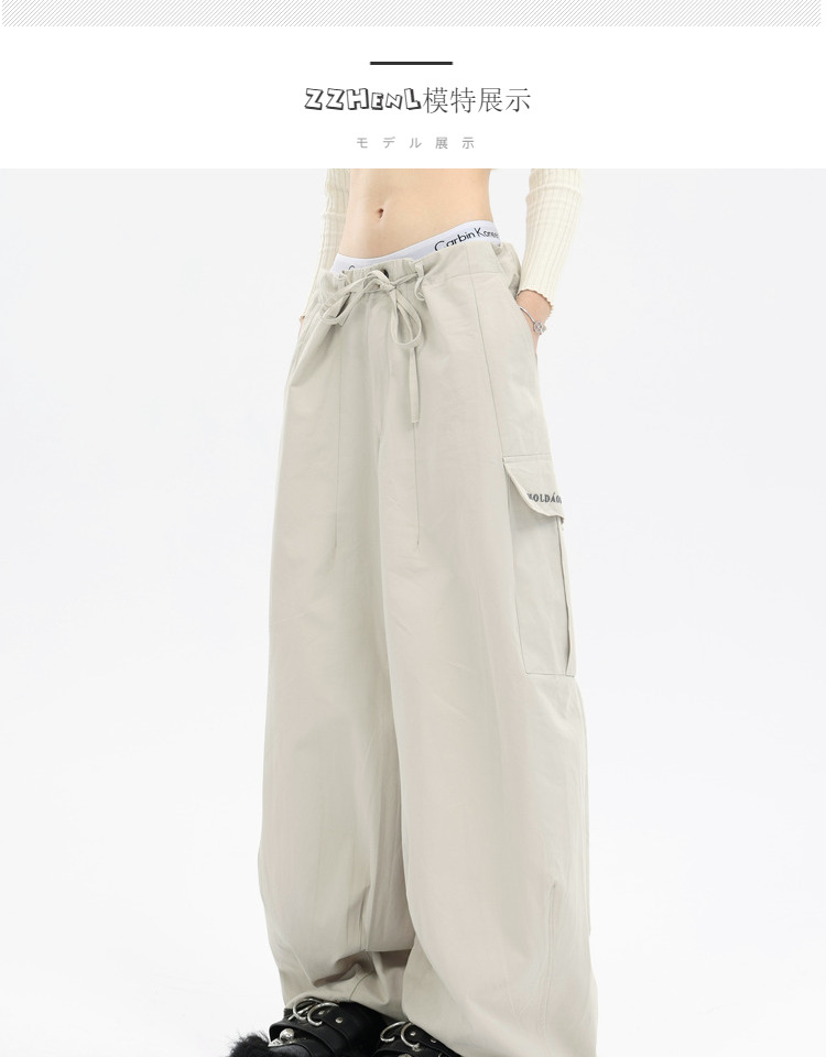 珍珍很懶 美式復古字母刺繡大口袋寬鬆工裝休閒抽繩闊腿褲早秋季