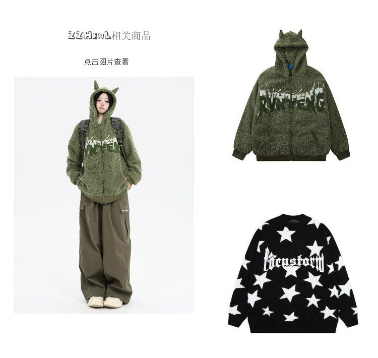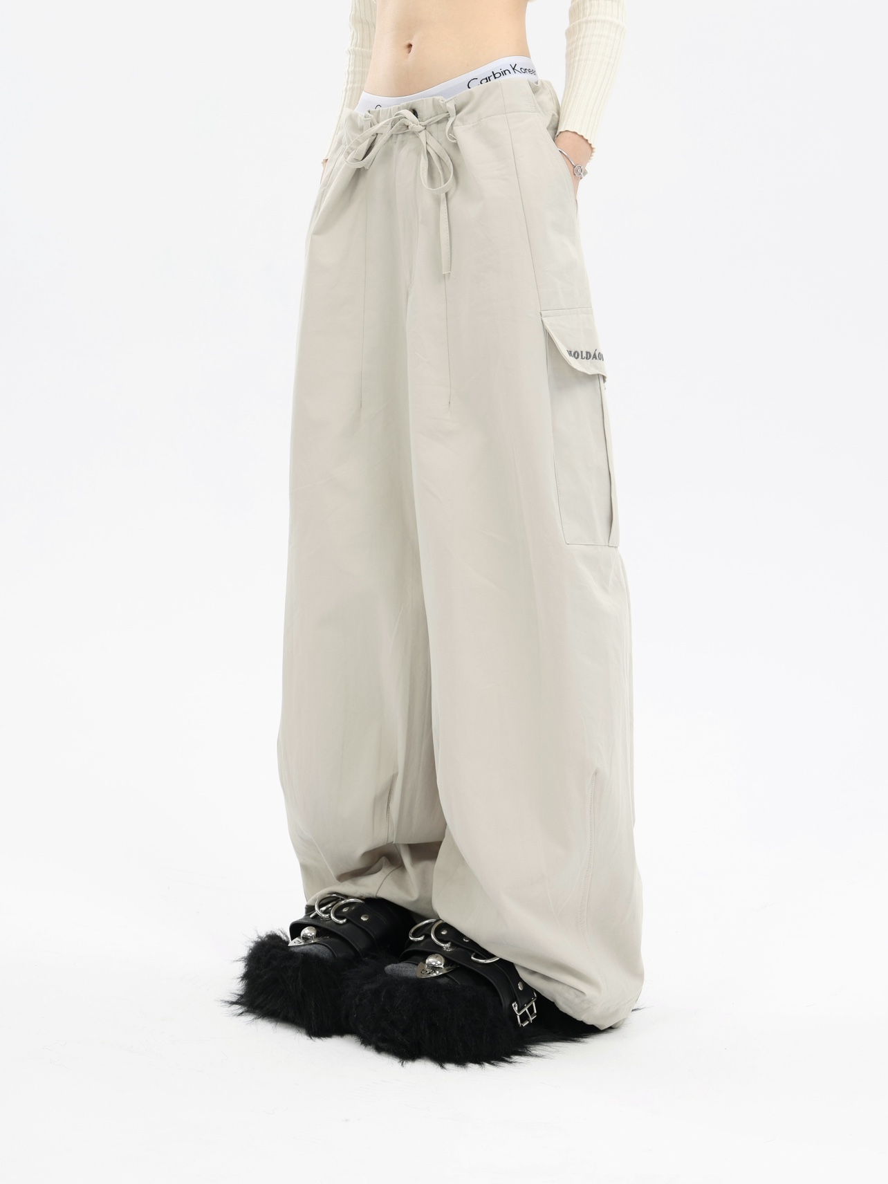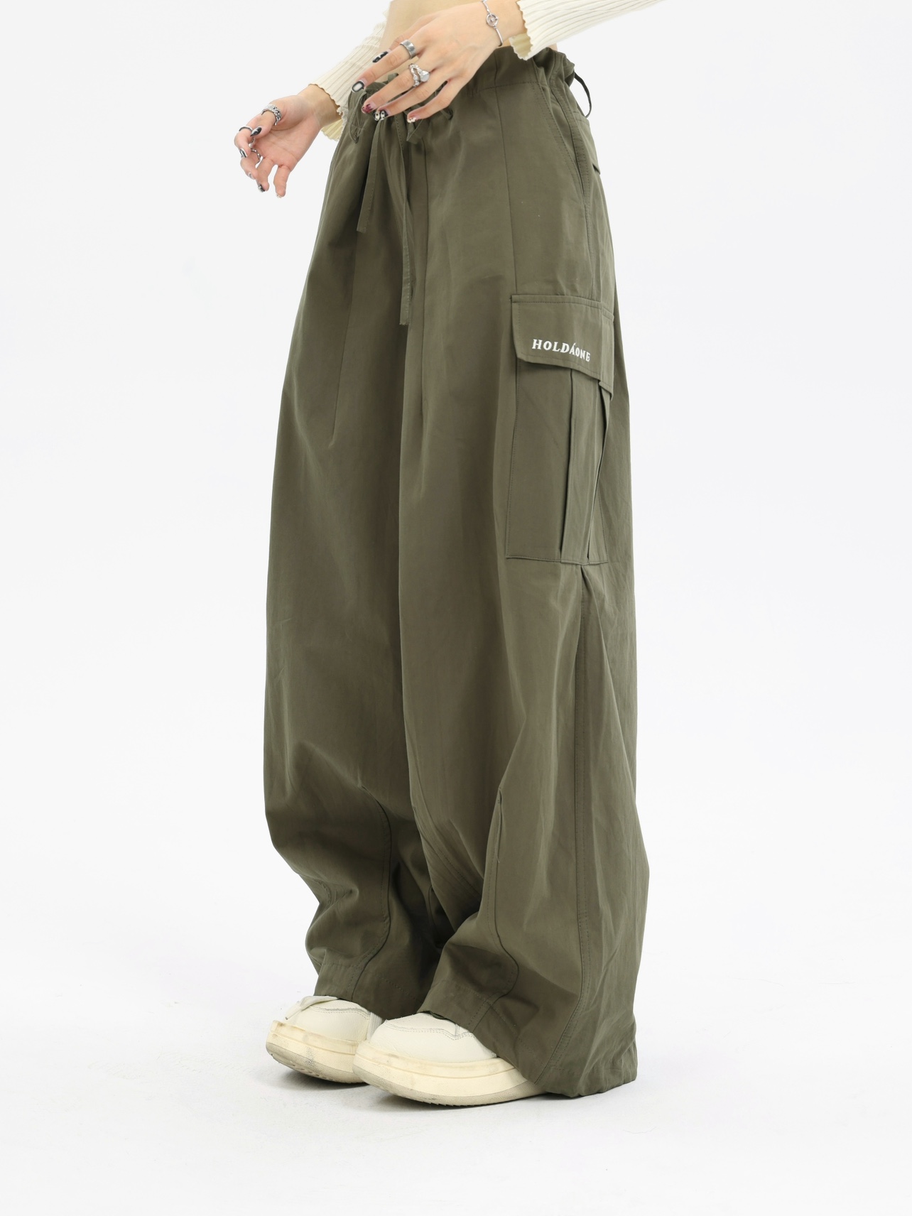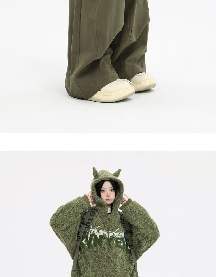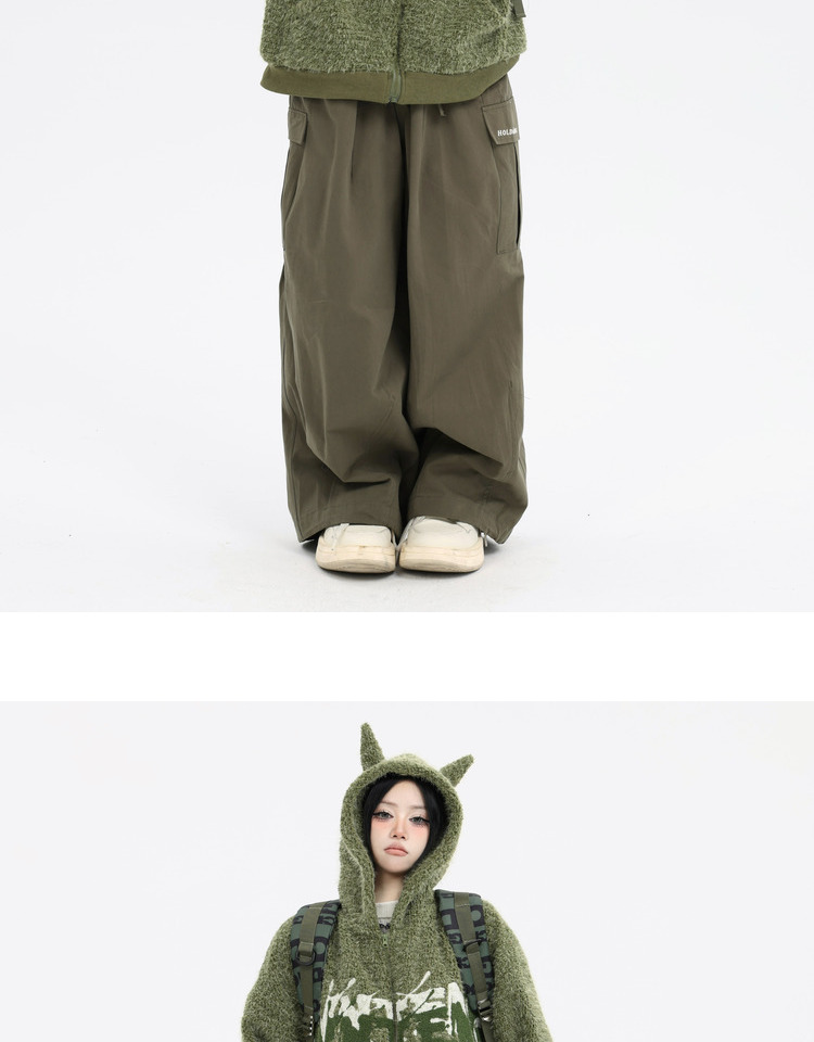 珍珍很懶 美式復古字母刺繡大口袋寬鬆工裝休閒抽繩闊腿褲早秋季