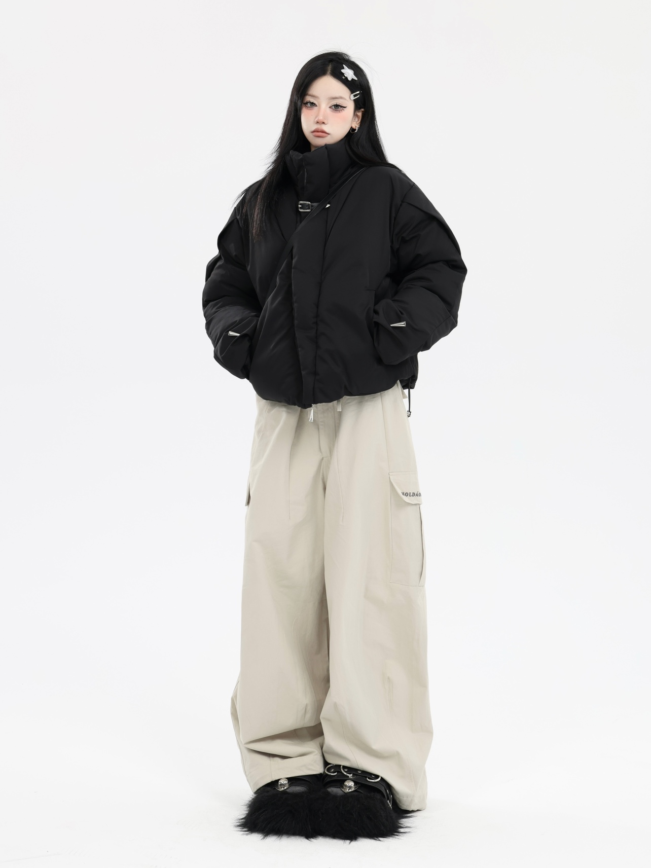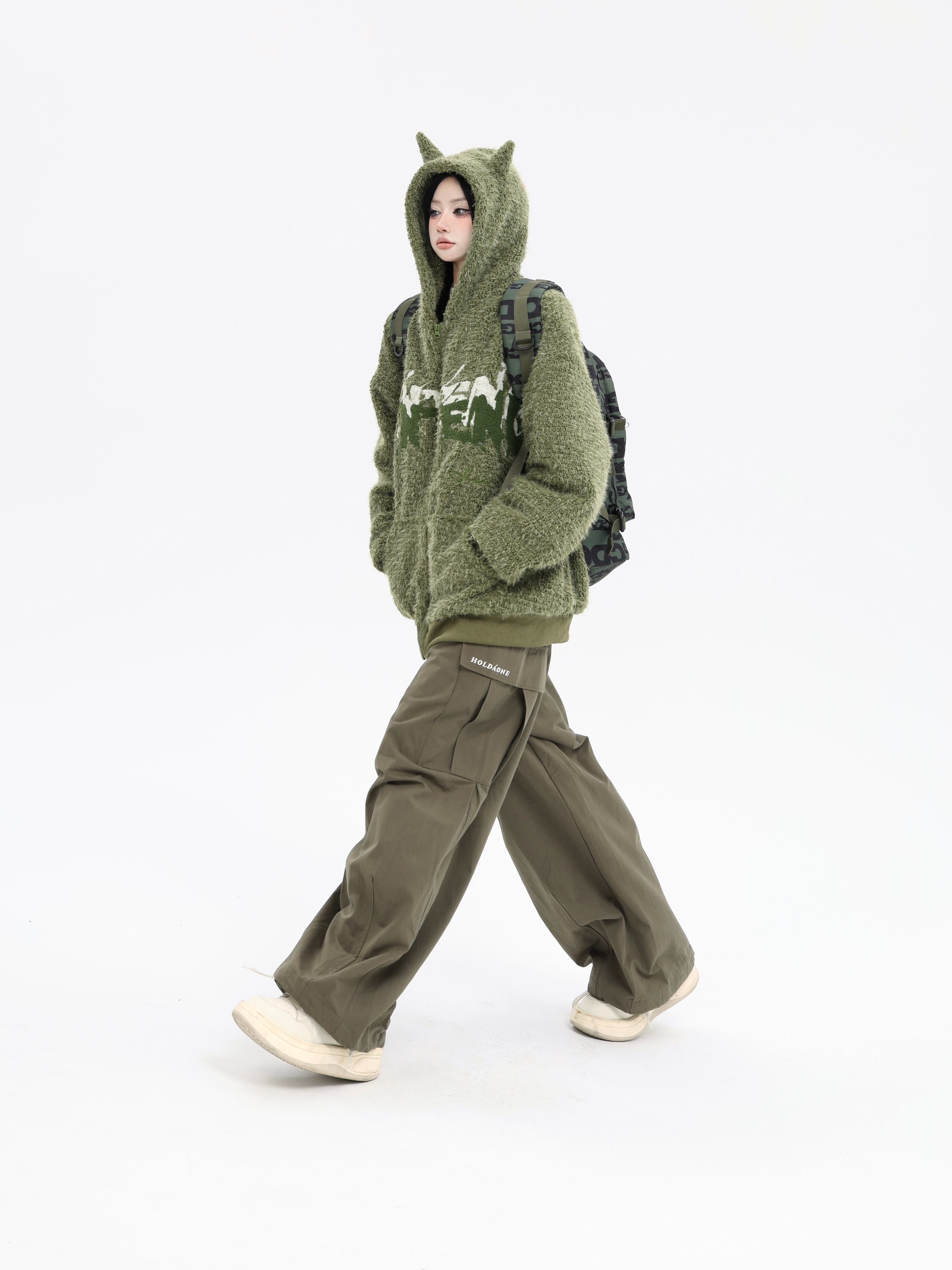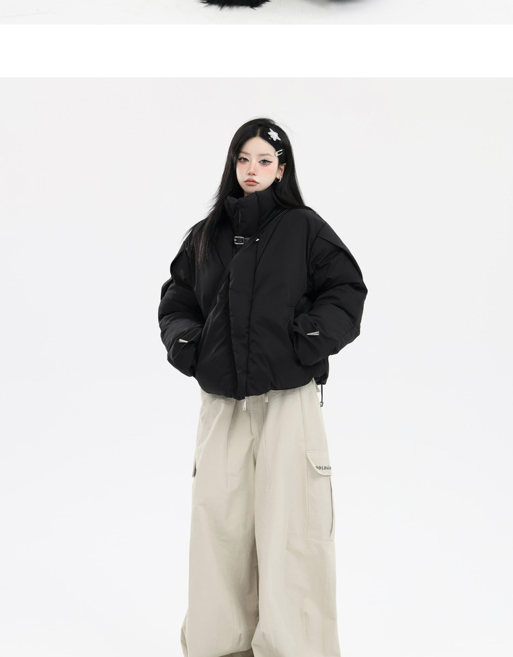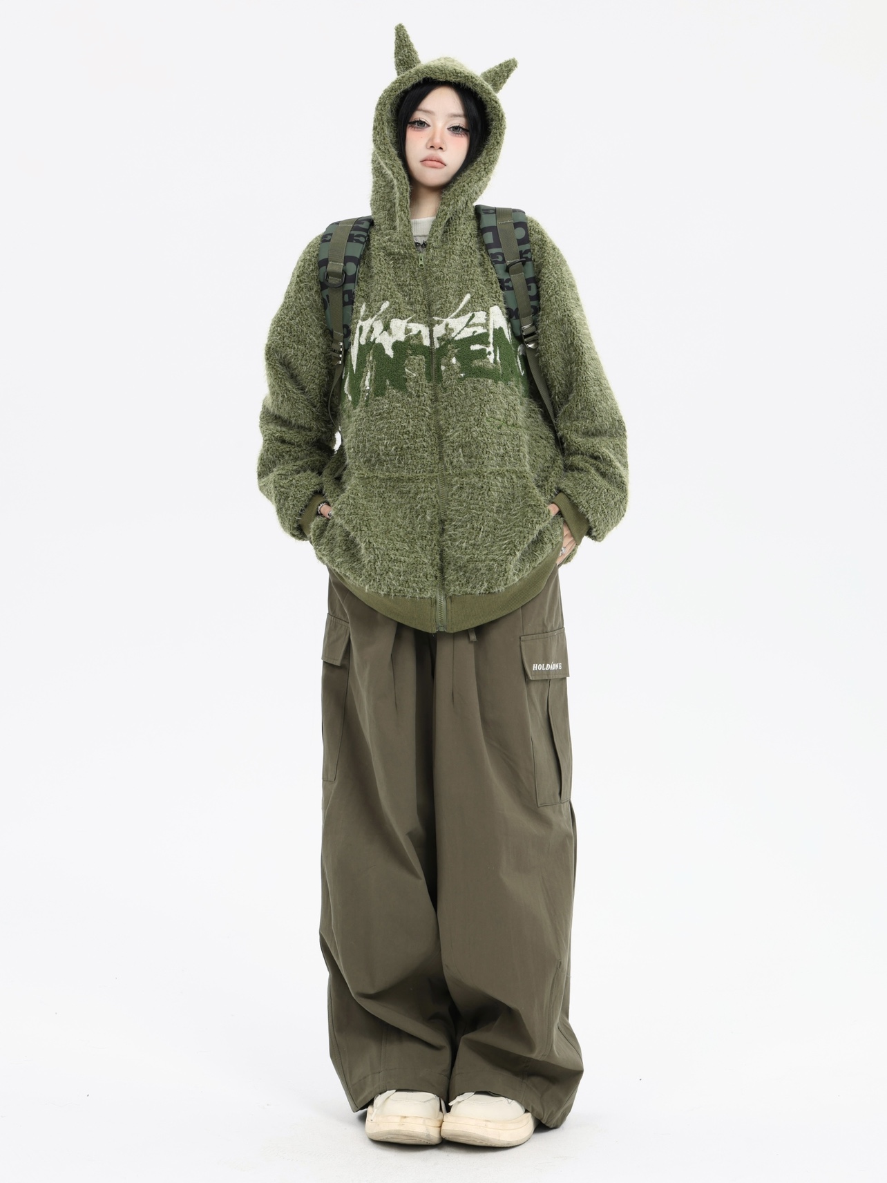 珍珍很懶 美式復古字母刺繡大口袋寬鬆工裝休閒抽繩闊腿褲早秋季