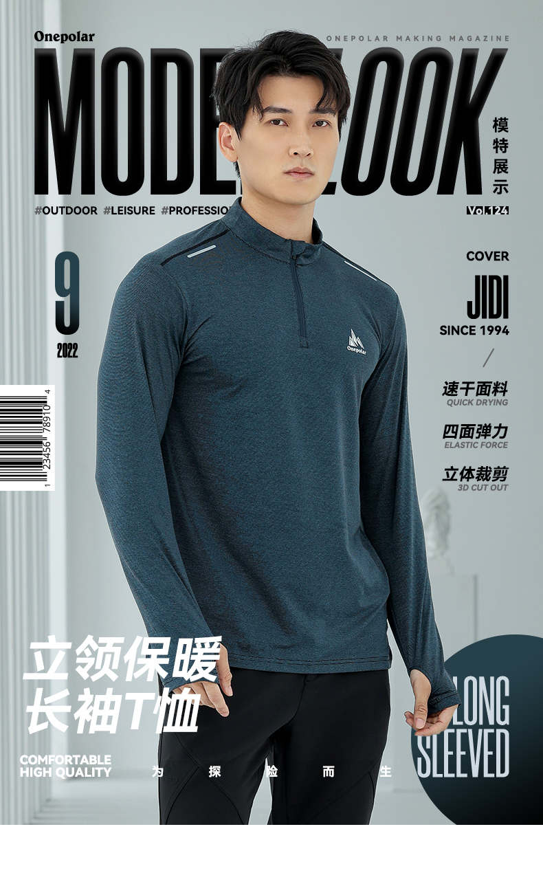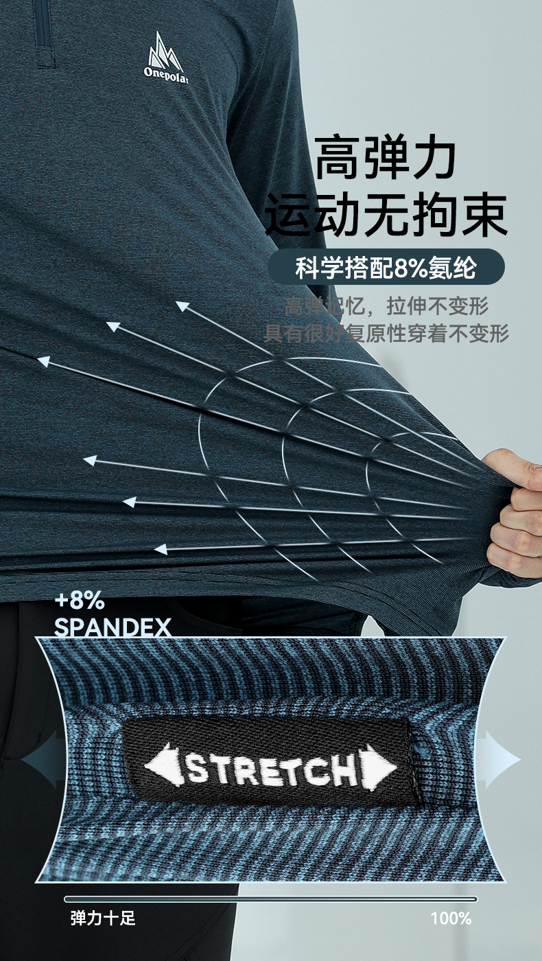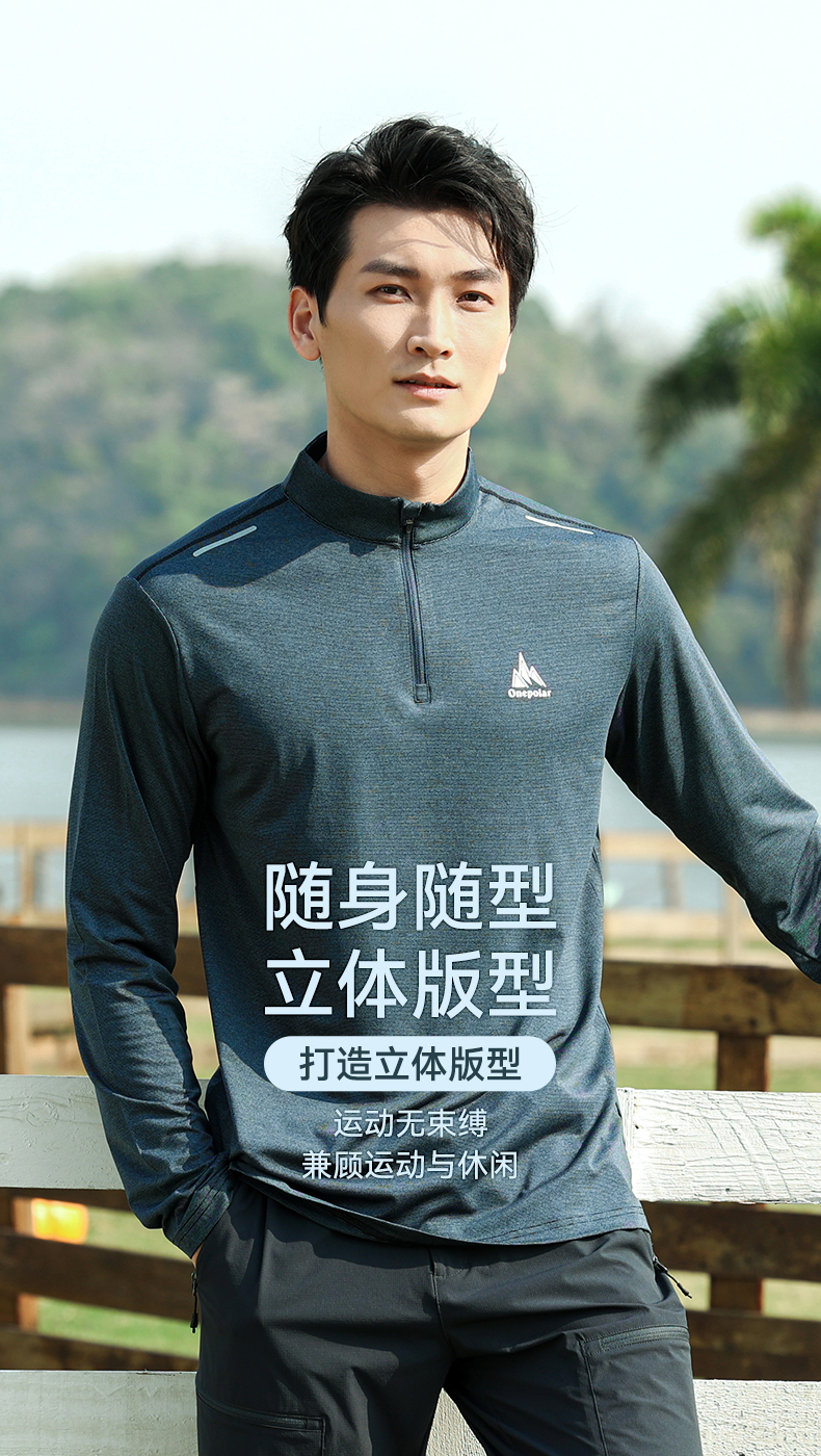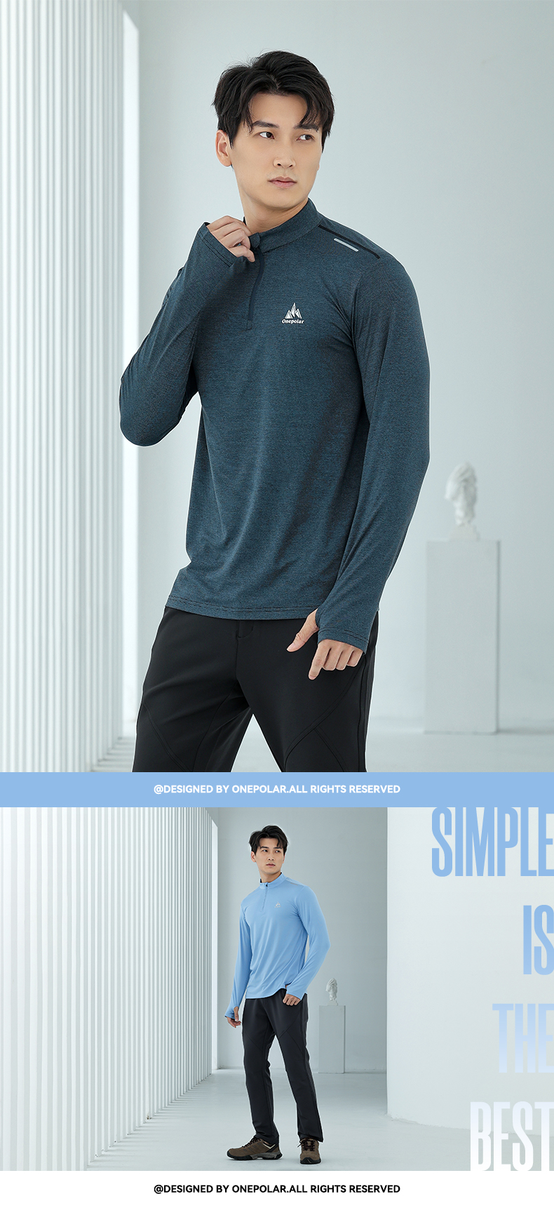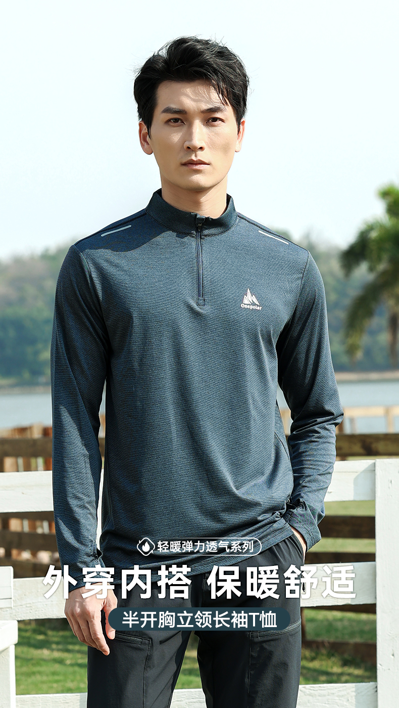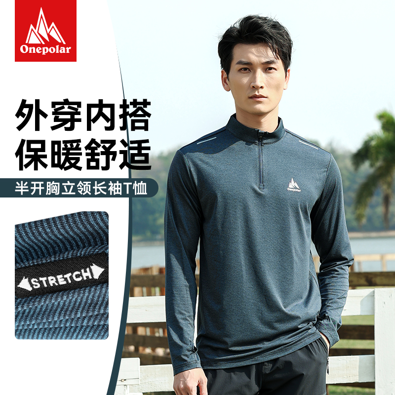 onepolar極地長袖T恤男戶外登山運動速乾衣春夏立領打底衫快乾衣