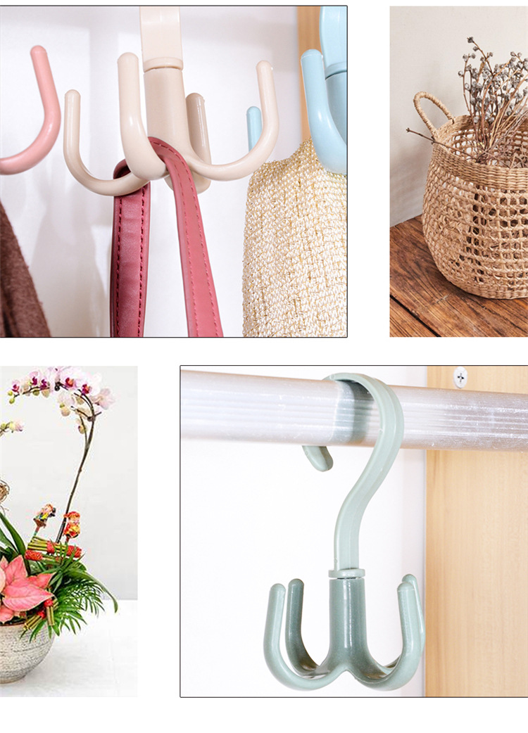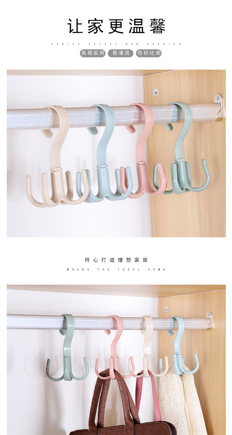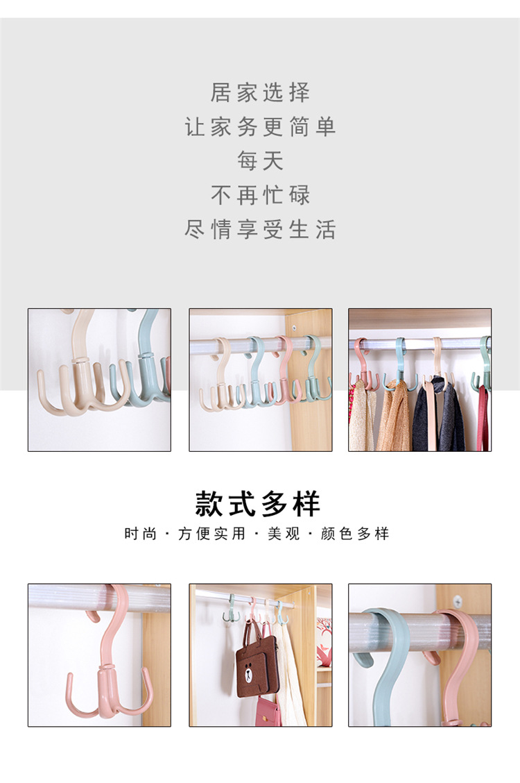旋转挂钩四爪多功能衣柜包包挂钩塑料4爪丝巾领带挂钩收纳挂架 钩