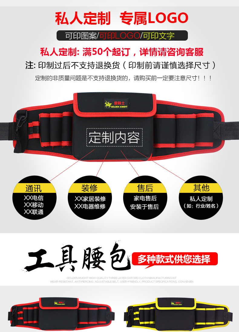 金骑士工具腰包帆布加厚大工具袋多功能小号挂包收纳电工工具包金