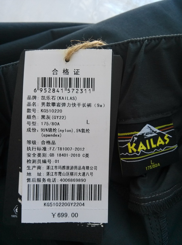 KAILAS男女款攀巖彈力快乾長褲子9A KG510220/KG520220
