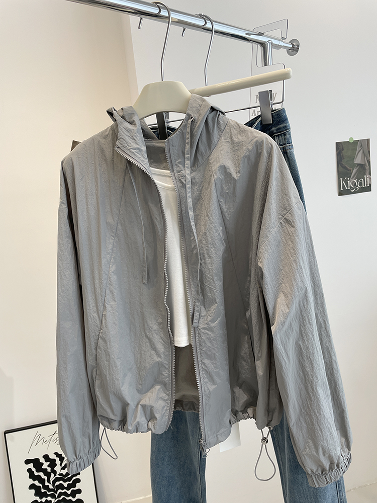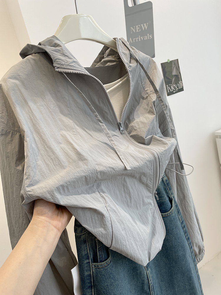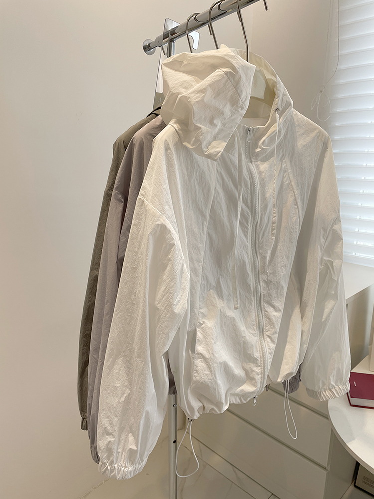 簡約連帽休閒防曬衣!春夏運動風輕薄風衣拉鍊外套小個子防曬服女